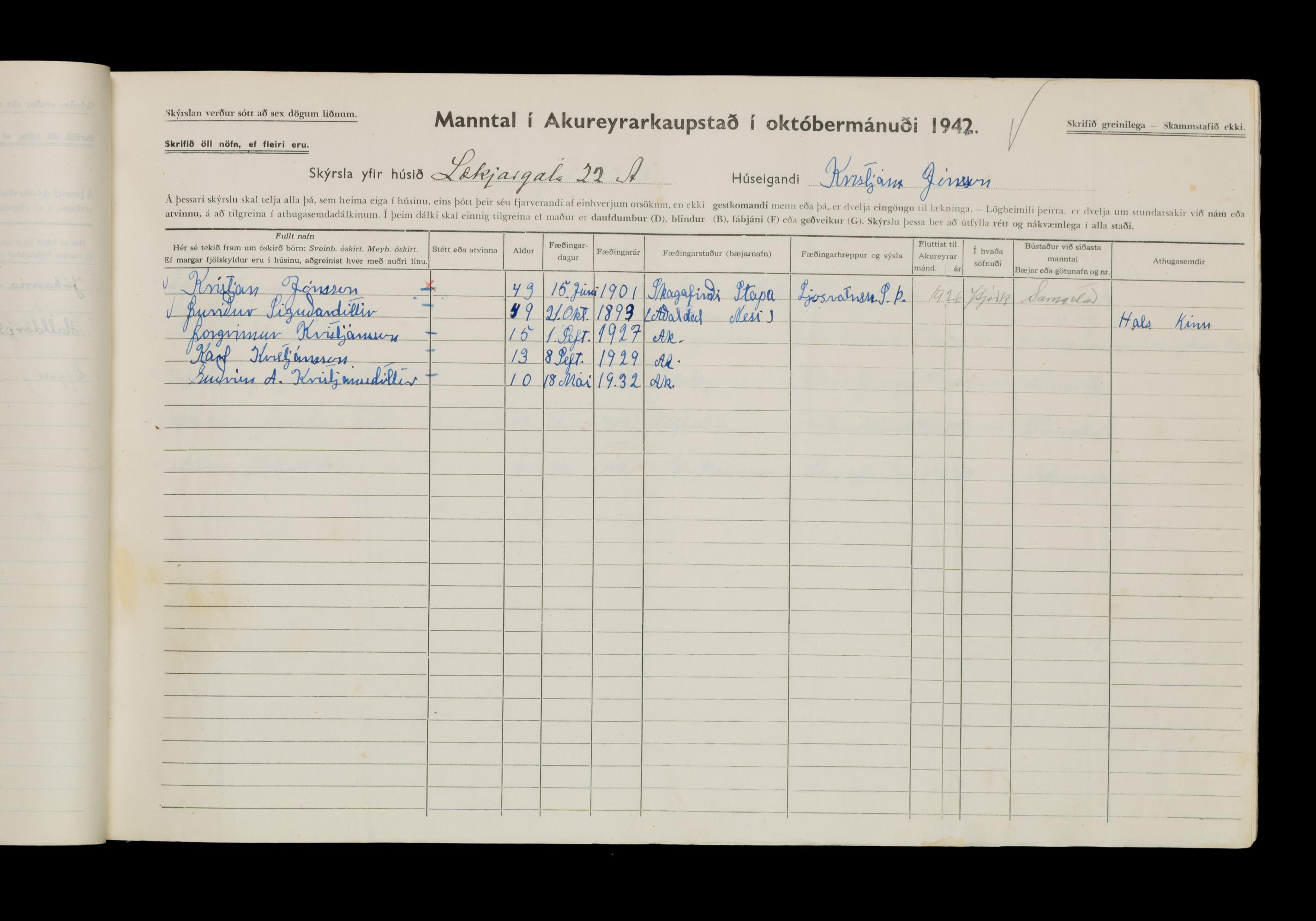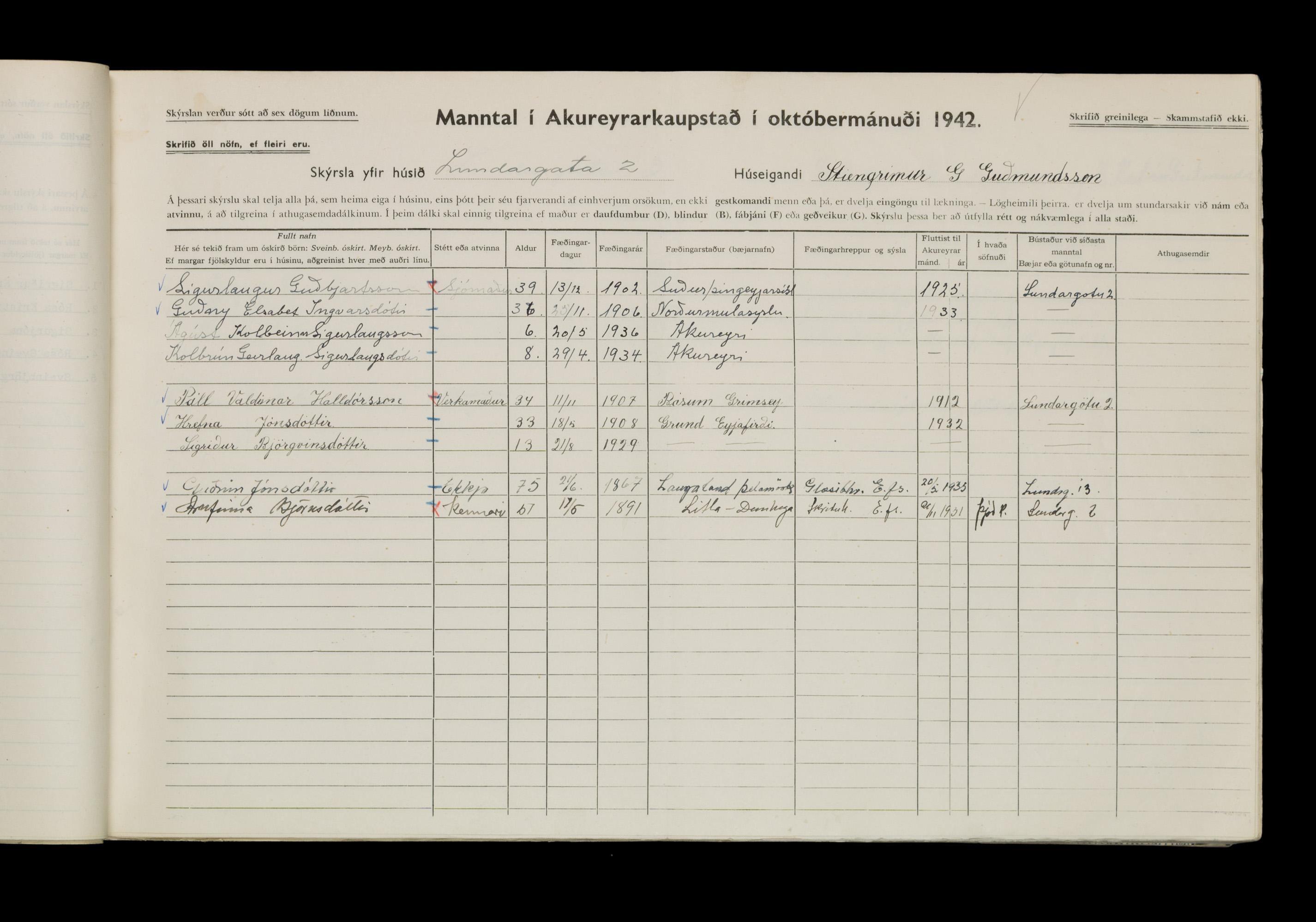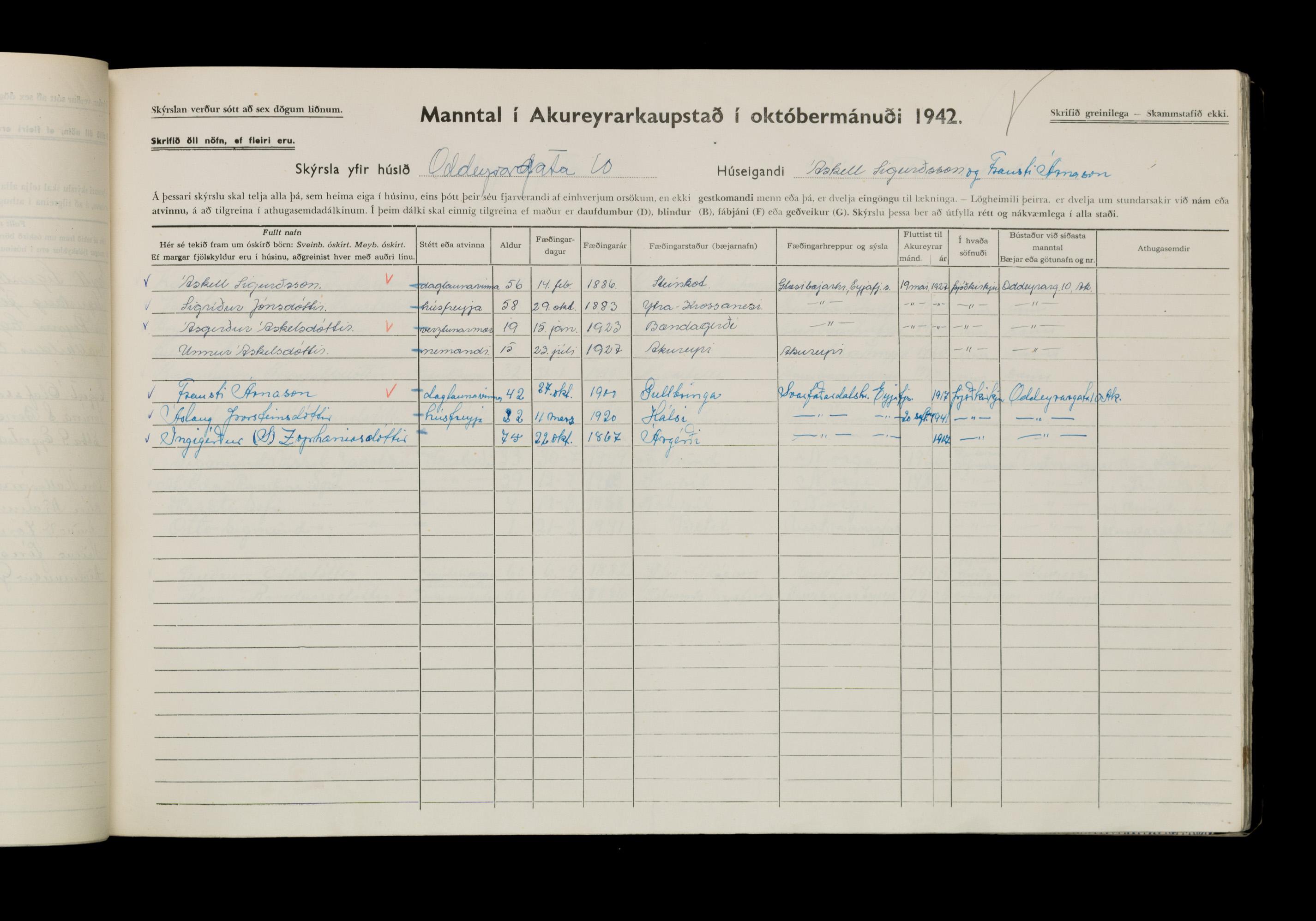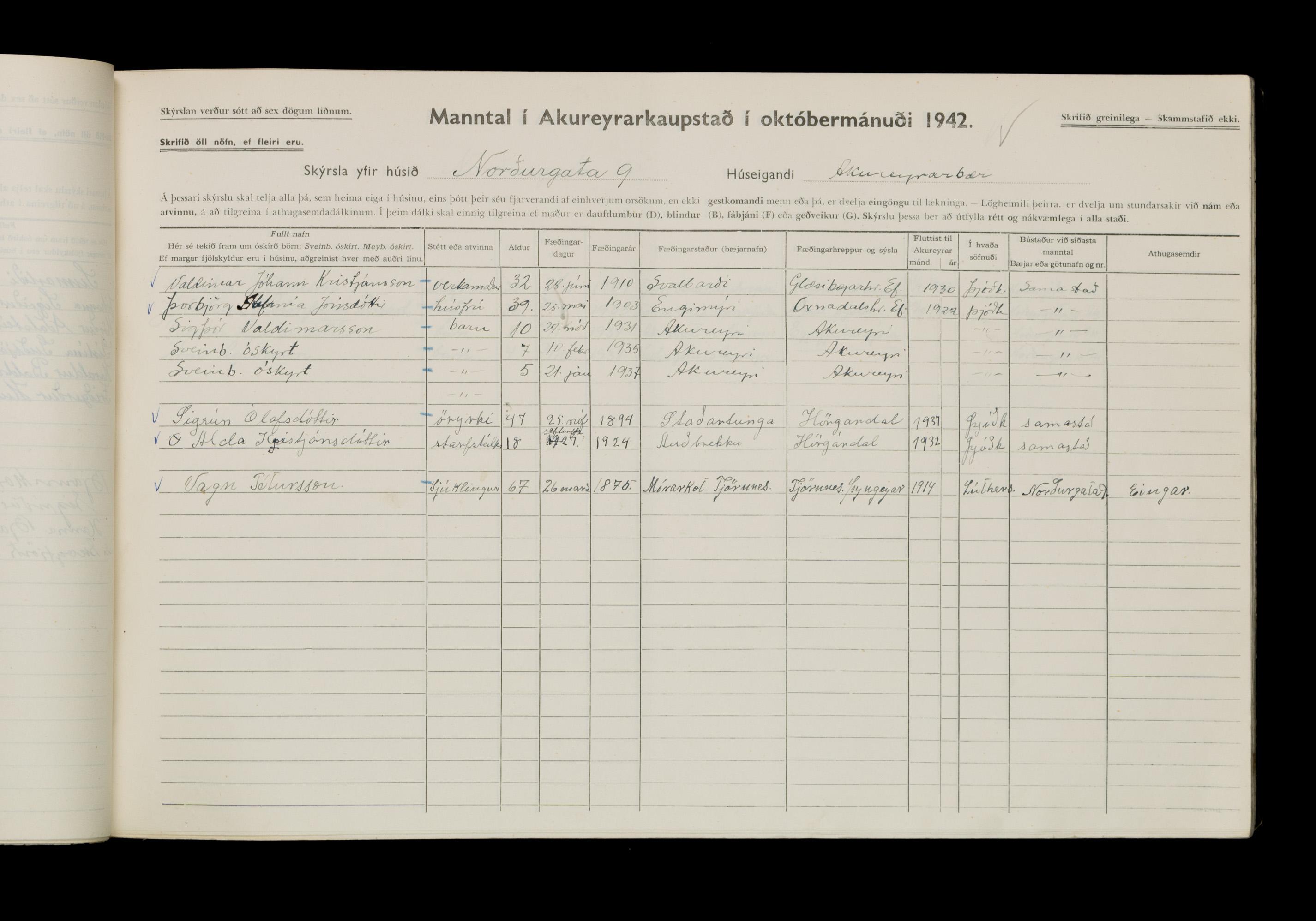 Manntal í Akureyrarkaupstað 1942 II