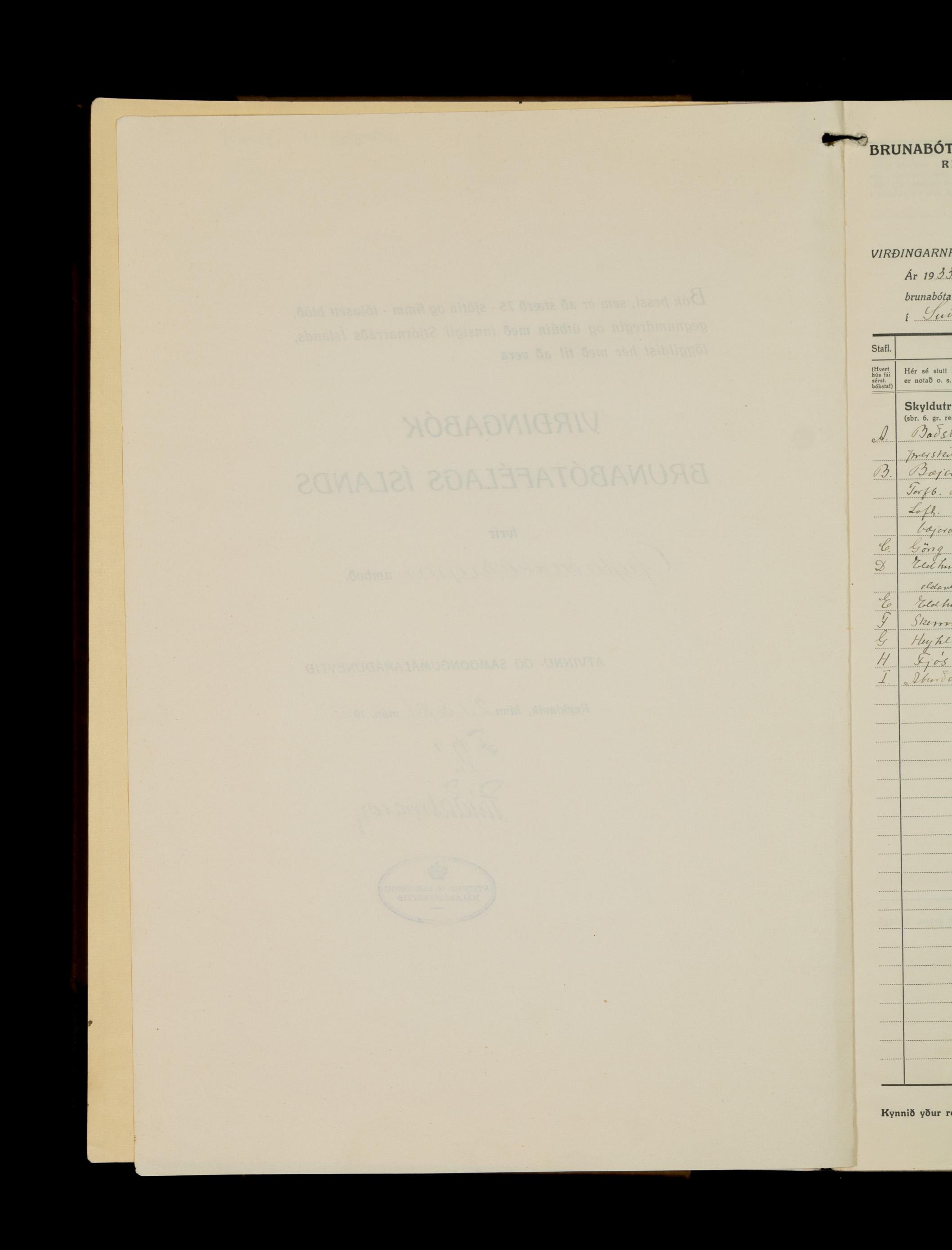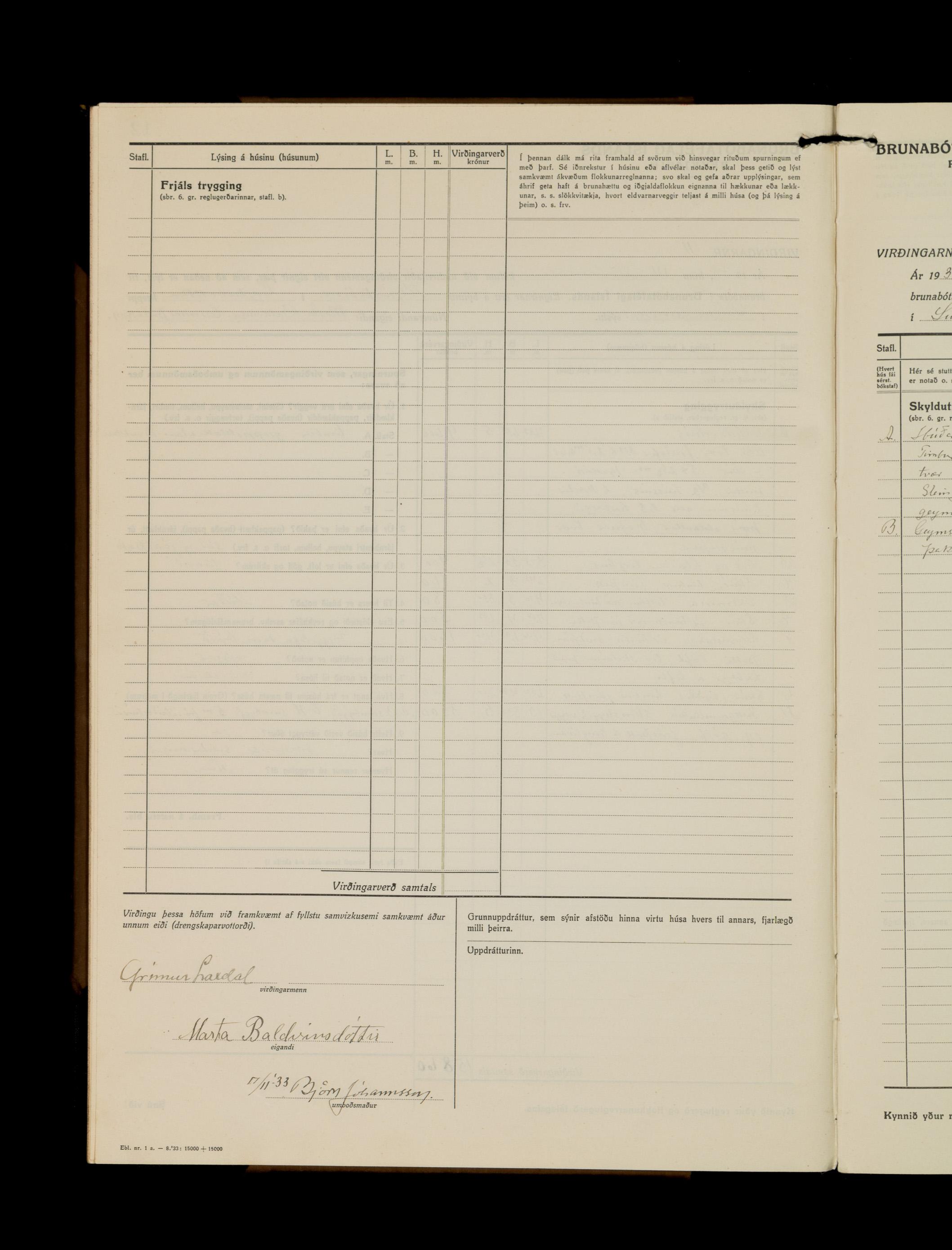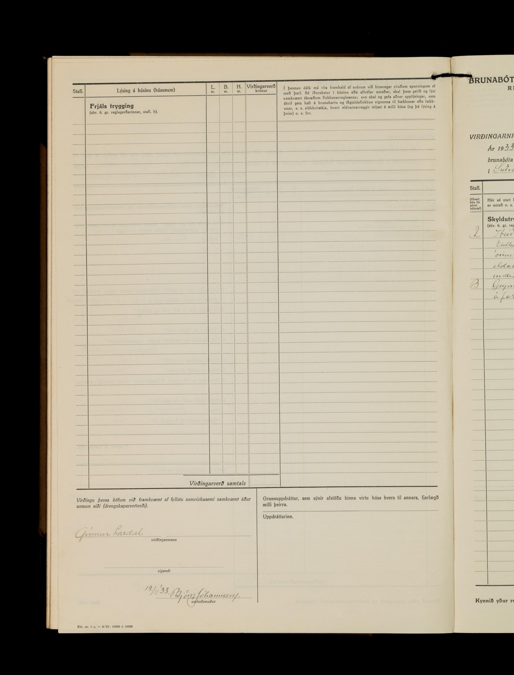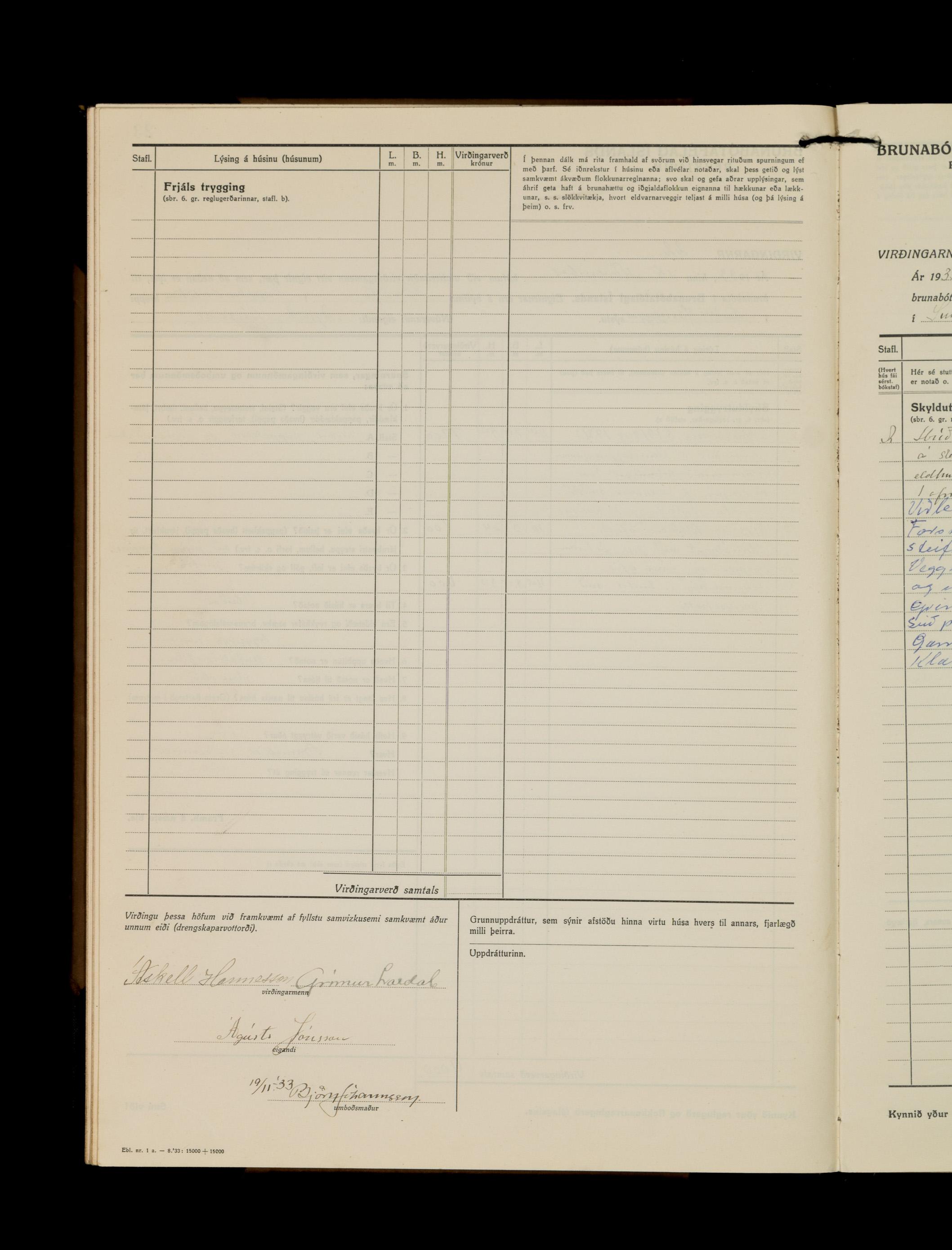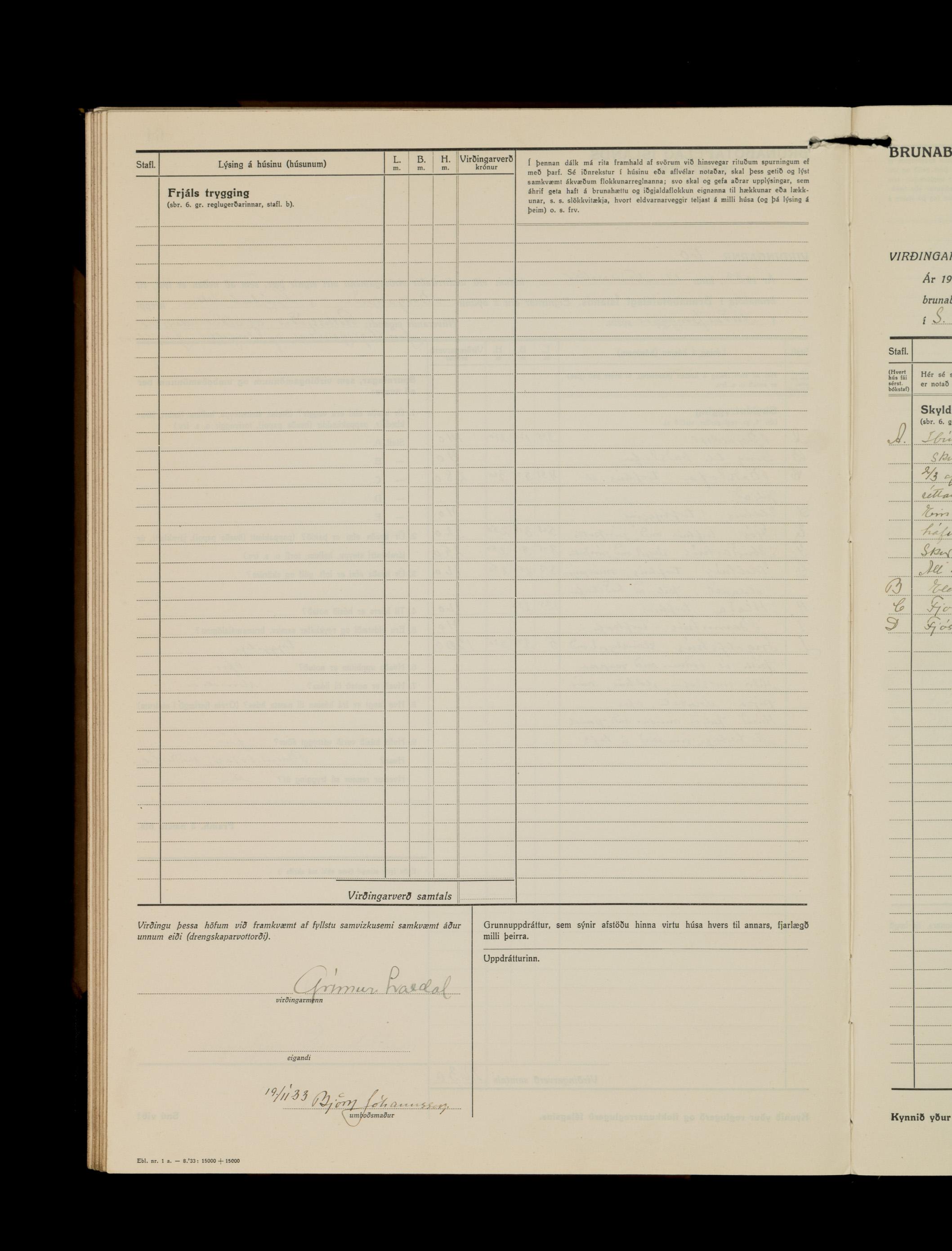 Virðingabók Brunabótafélags Íslands, Grýtubakkahreppsumboð 1933 - 1934