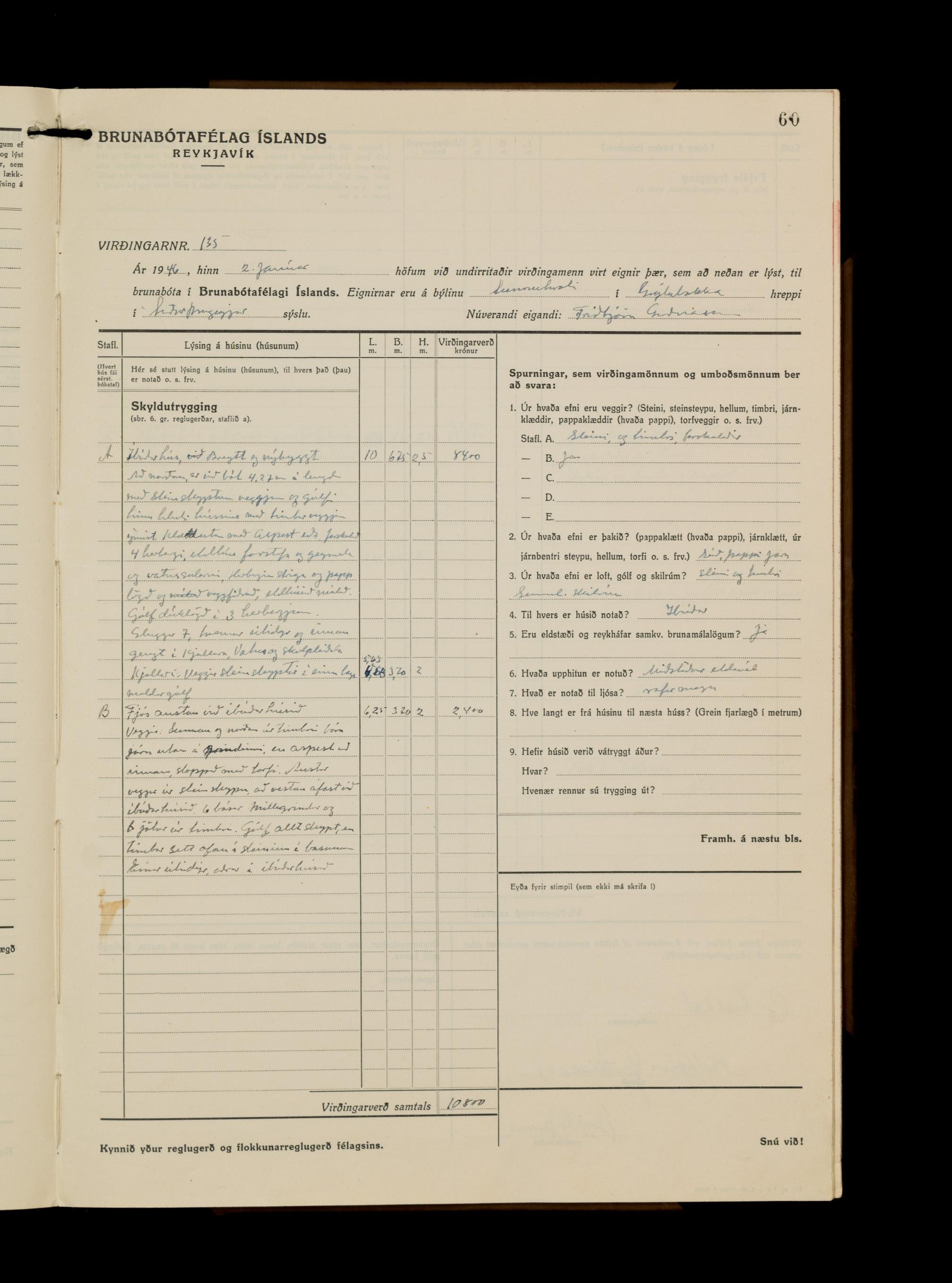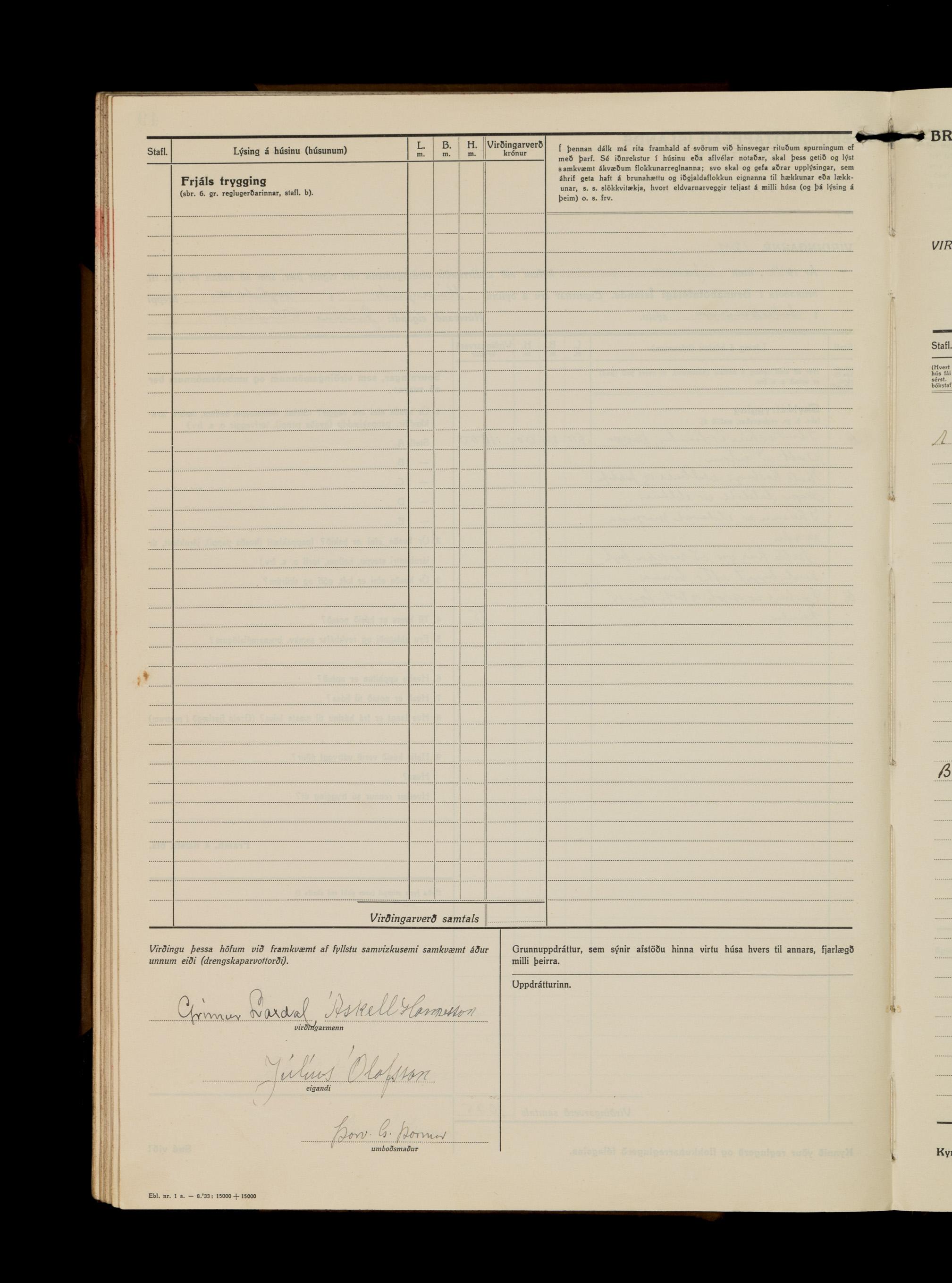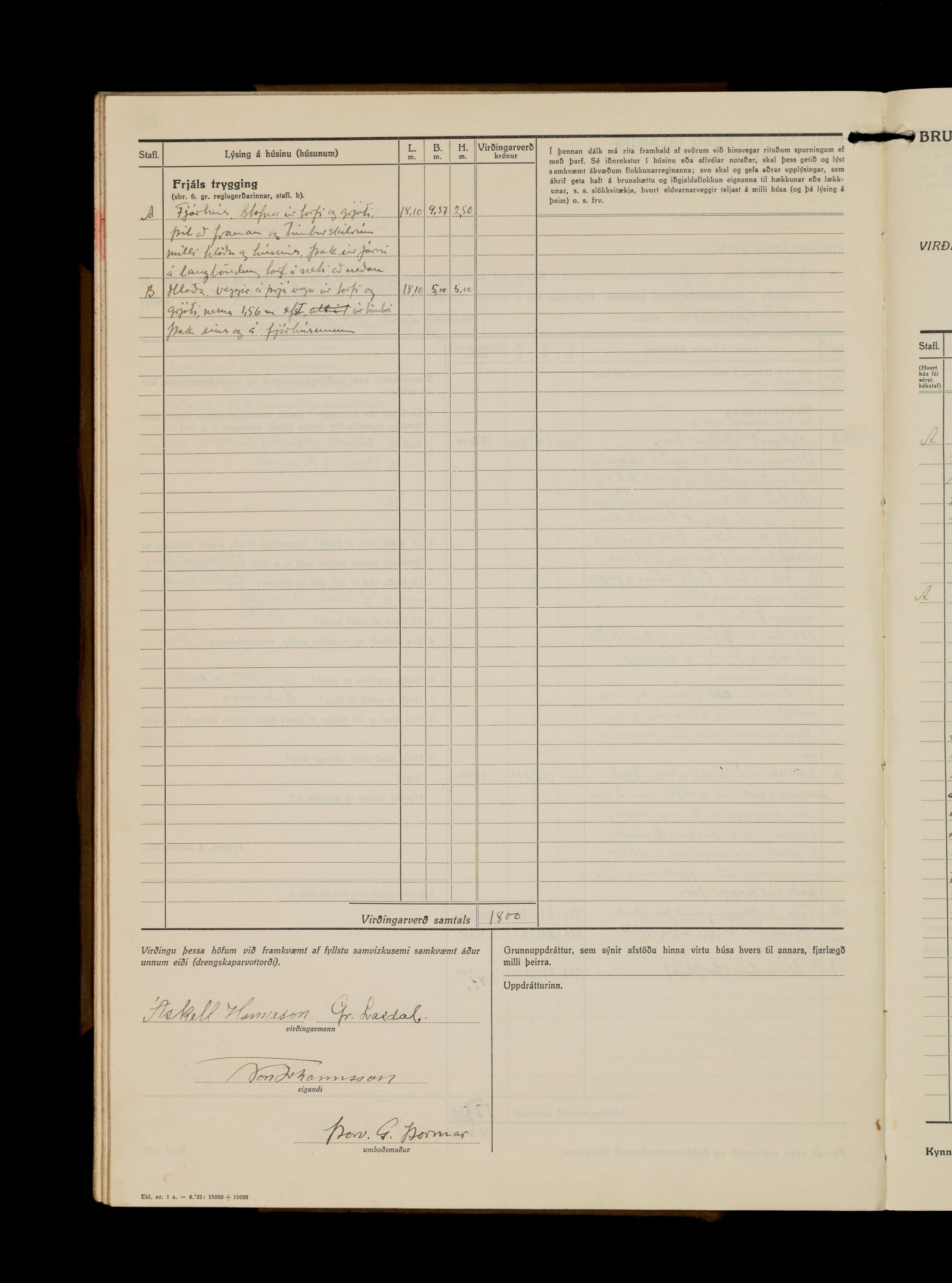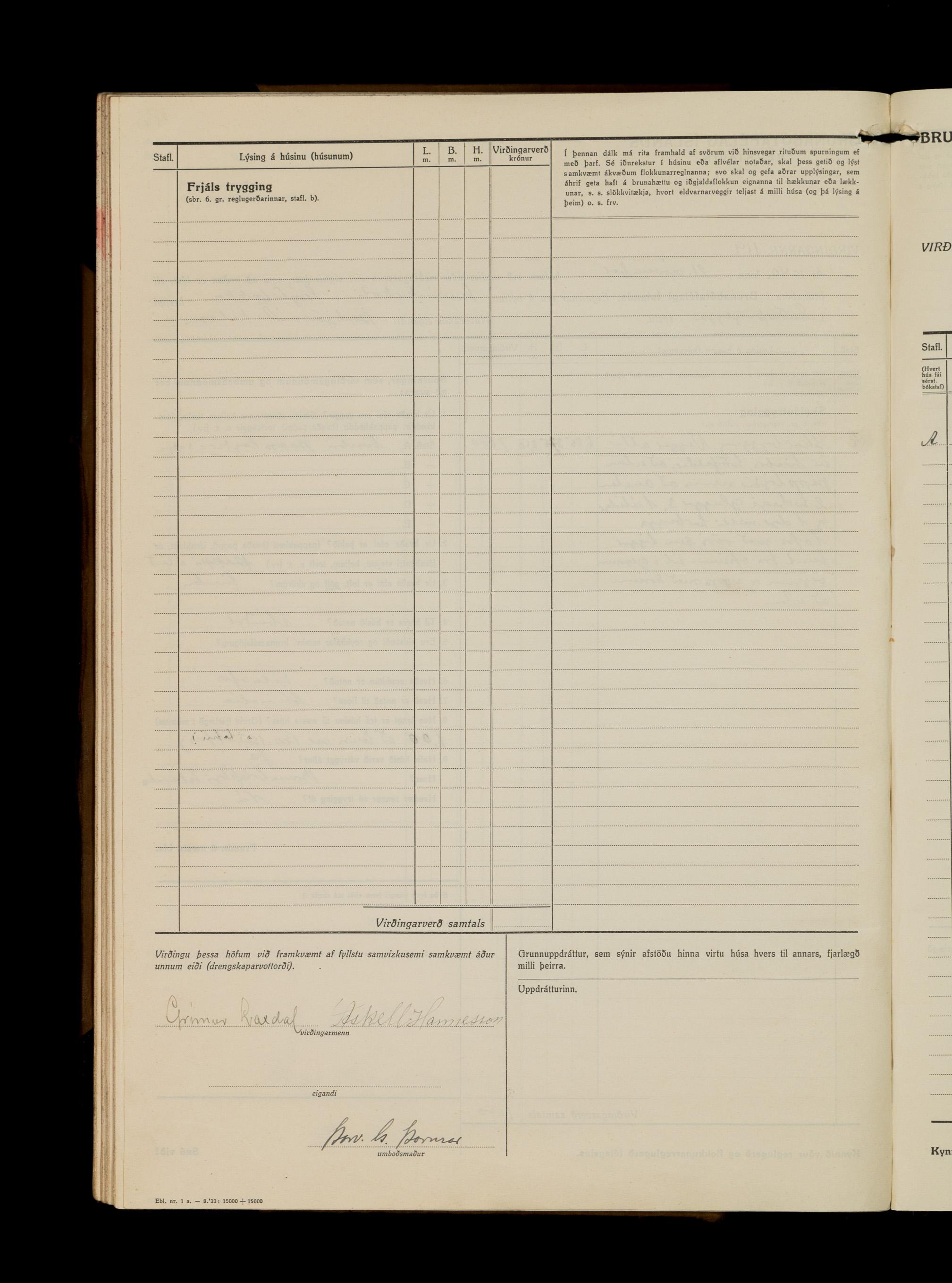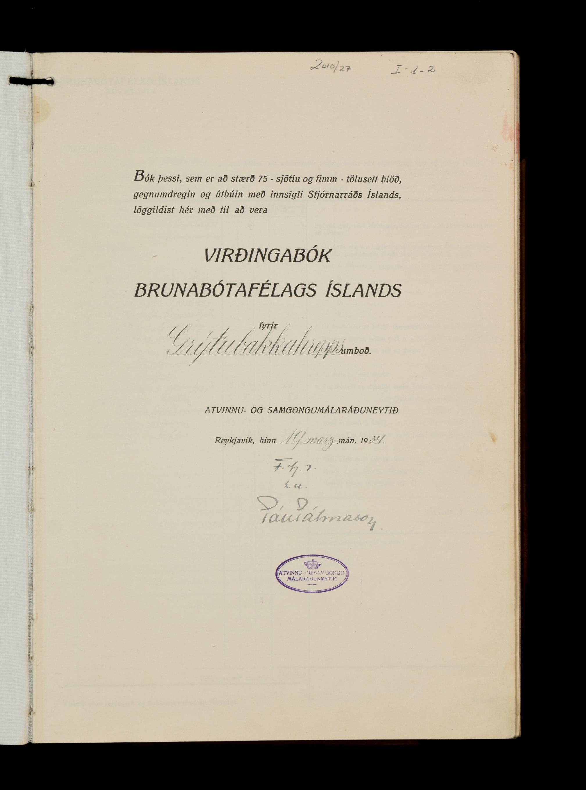 Virðingabók Brunabótafélags Íslands, Grýtubakkahreppsumboð 1934 - 1950