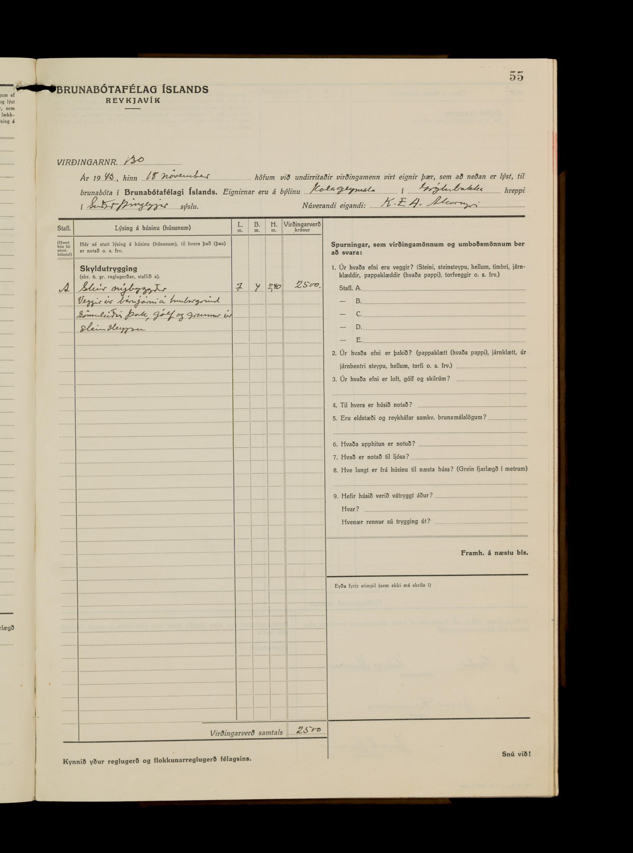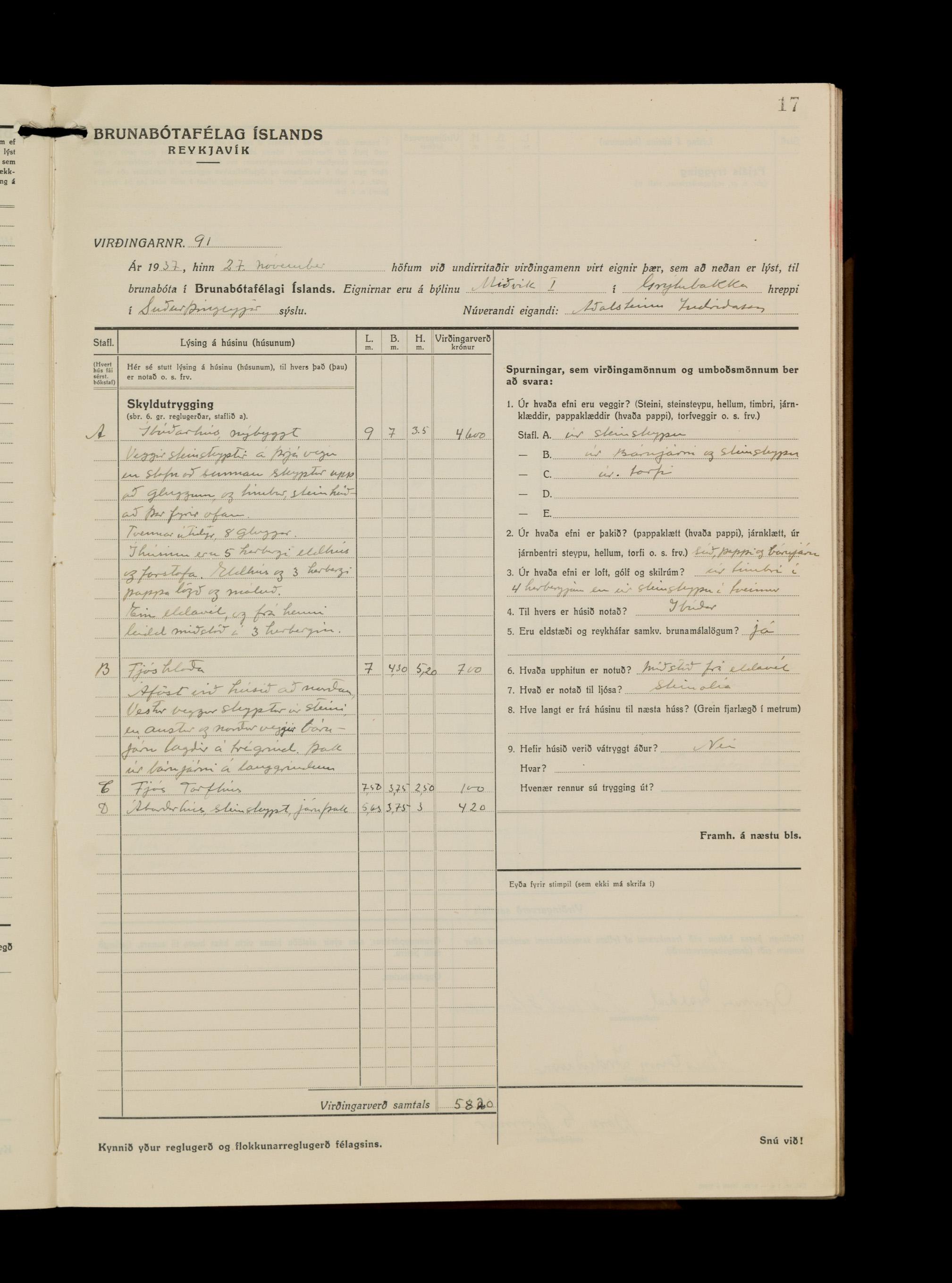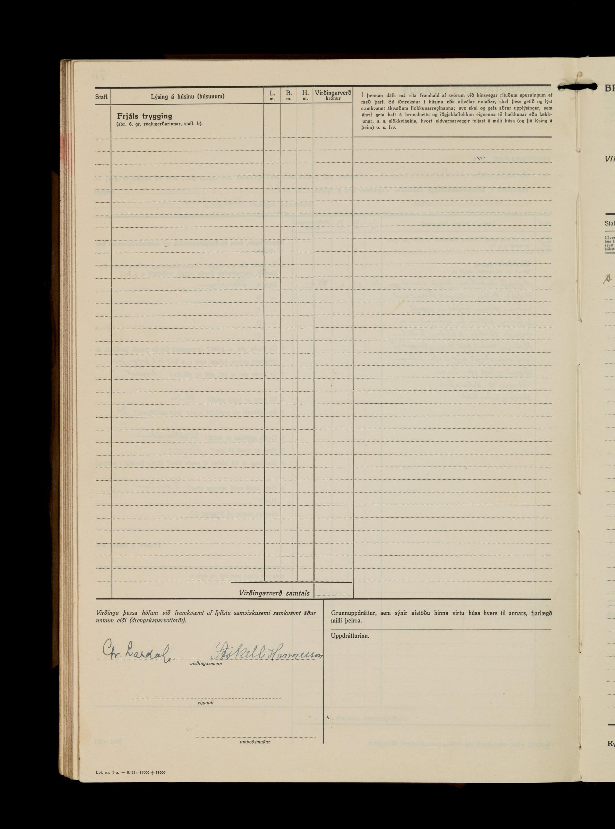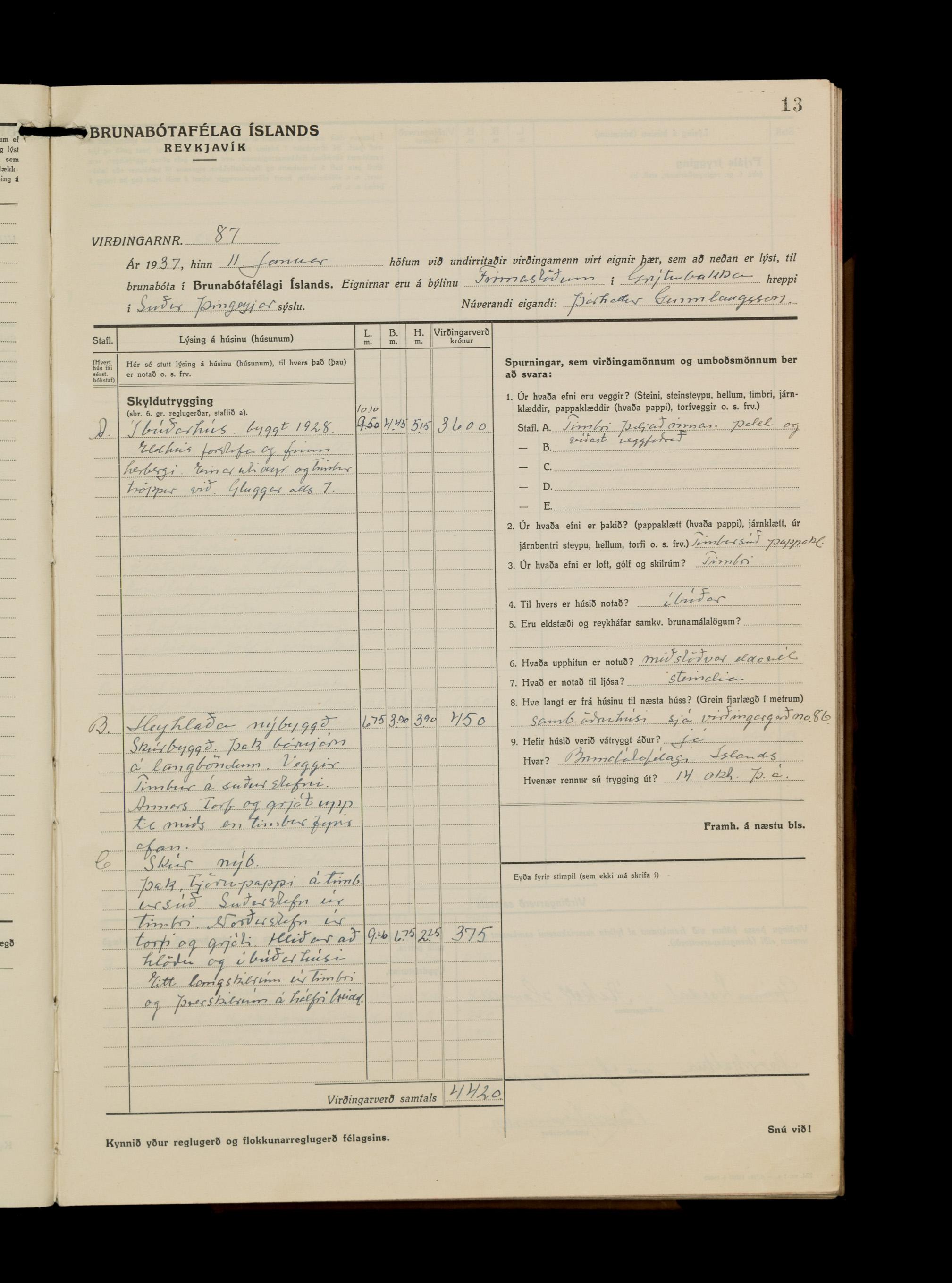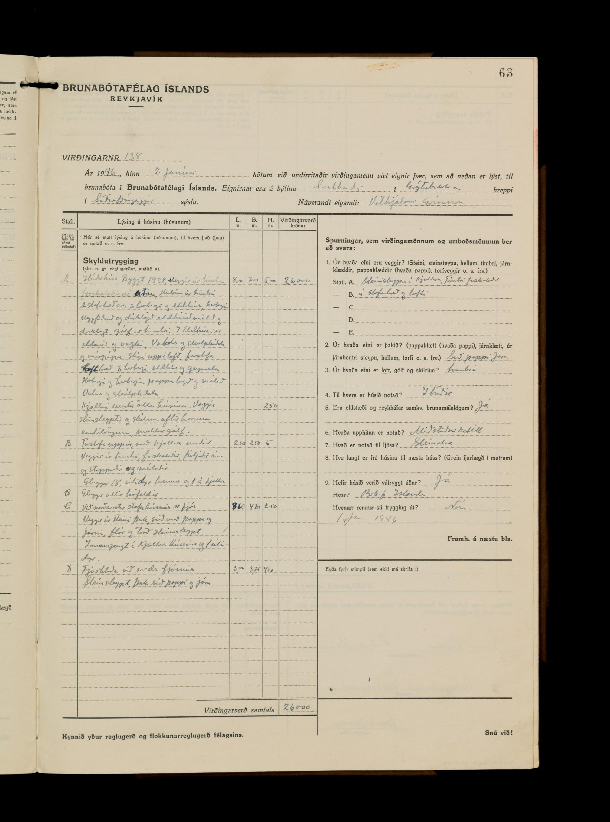 Virðingabók Brunabótafélags Íslands, Grýtubakkahreppsumboð 1934 - 1950