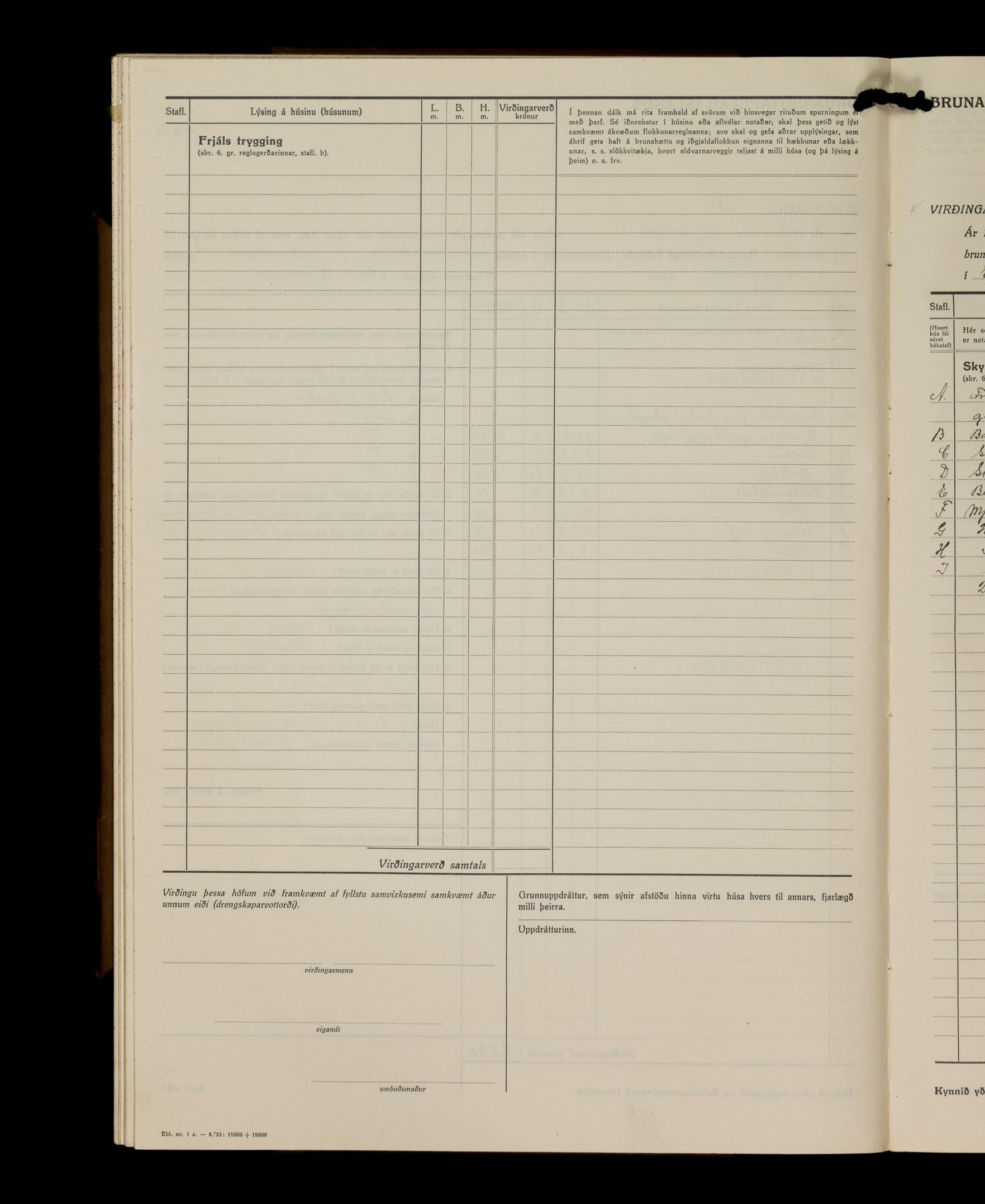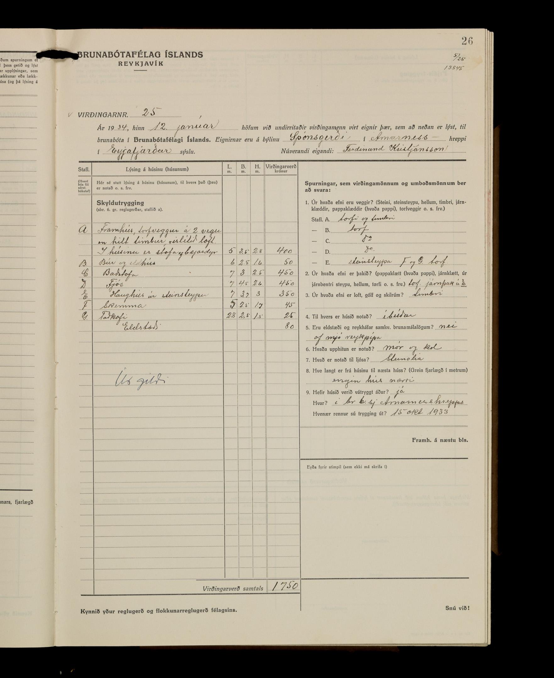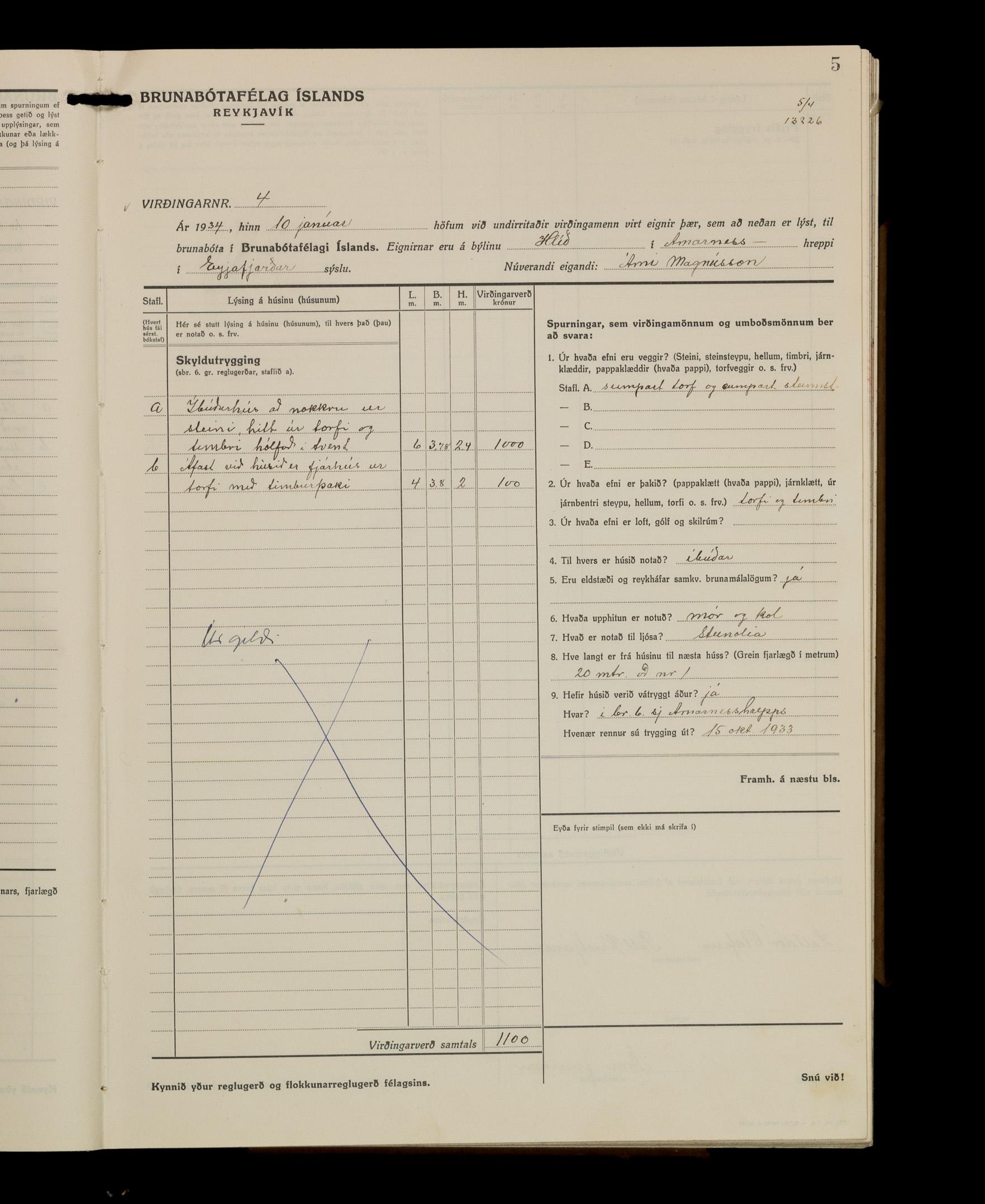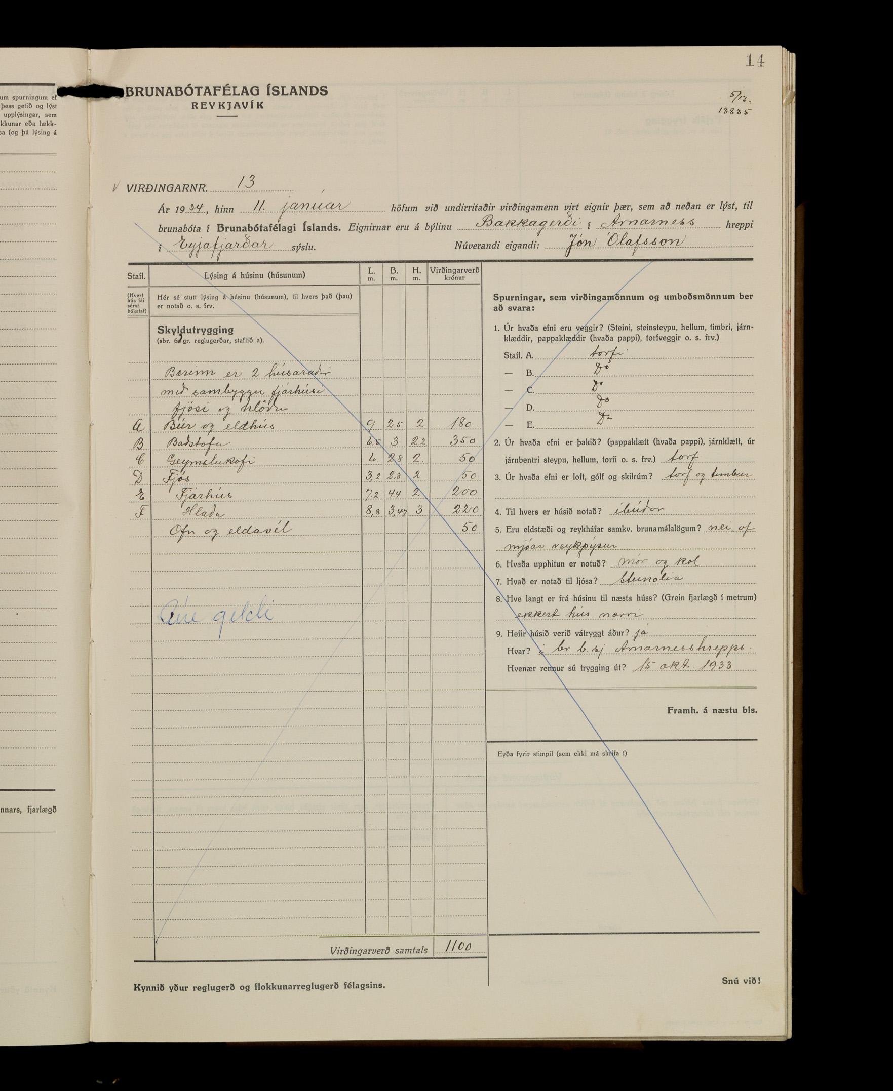 Virðingabók Brunabótafélags Íslands, Arnarneshreppsumboð 1933 - 1938