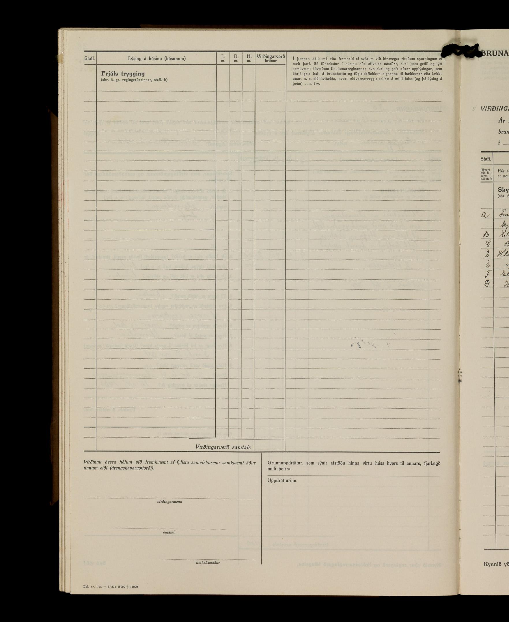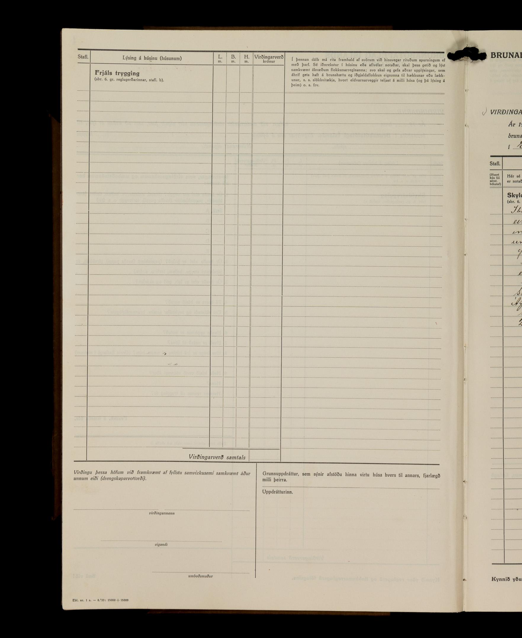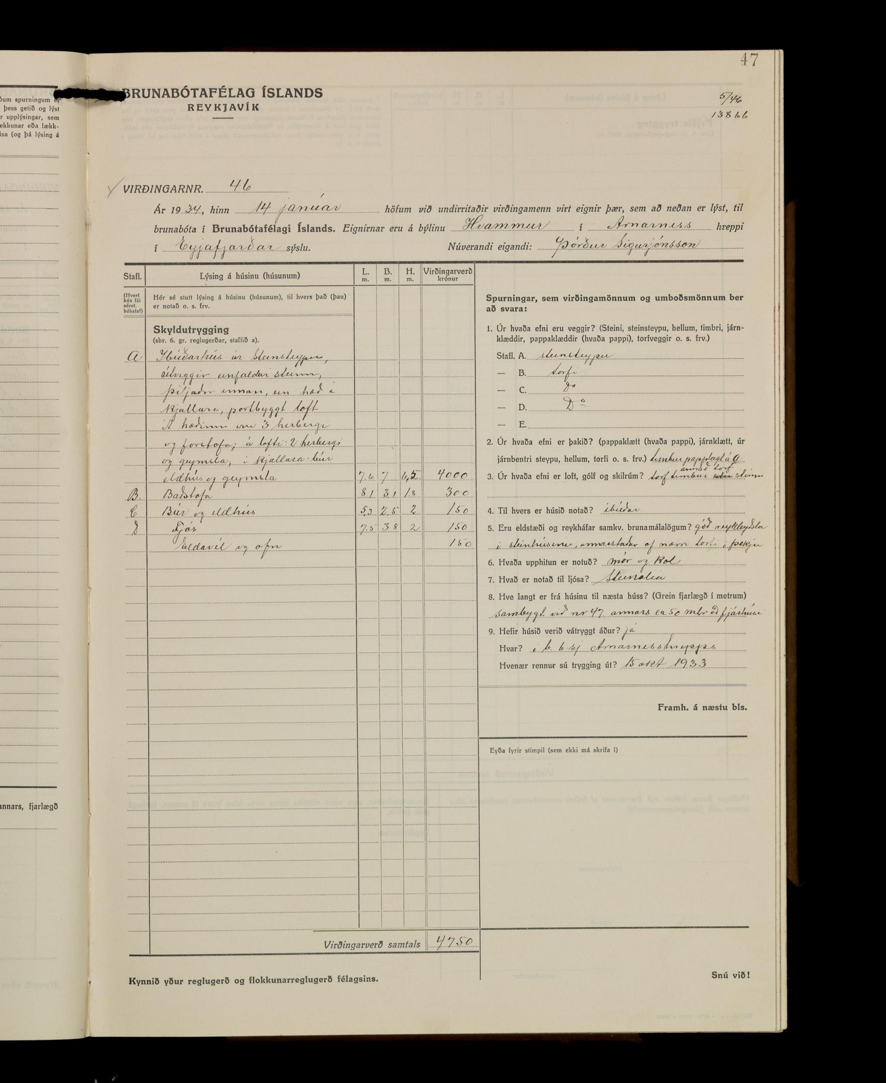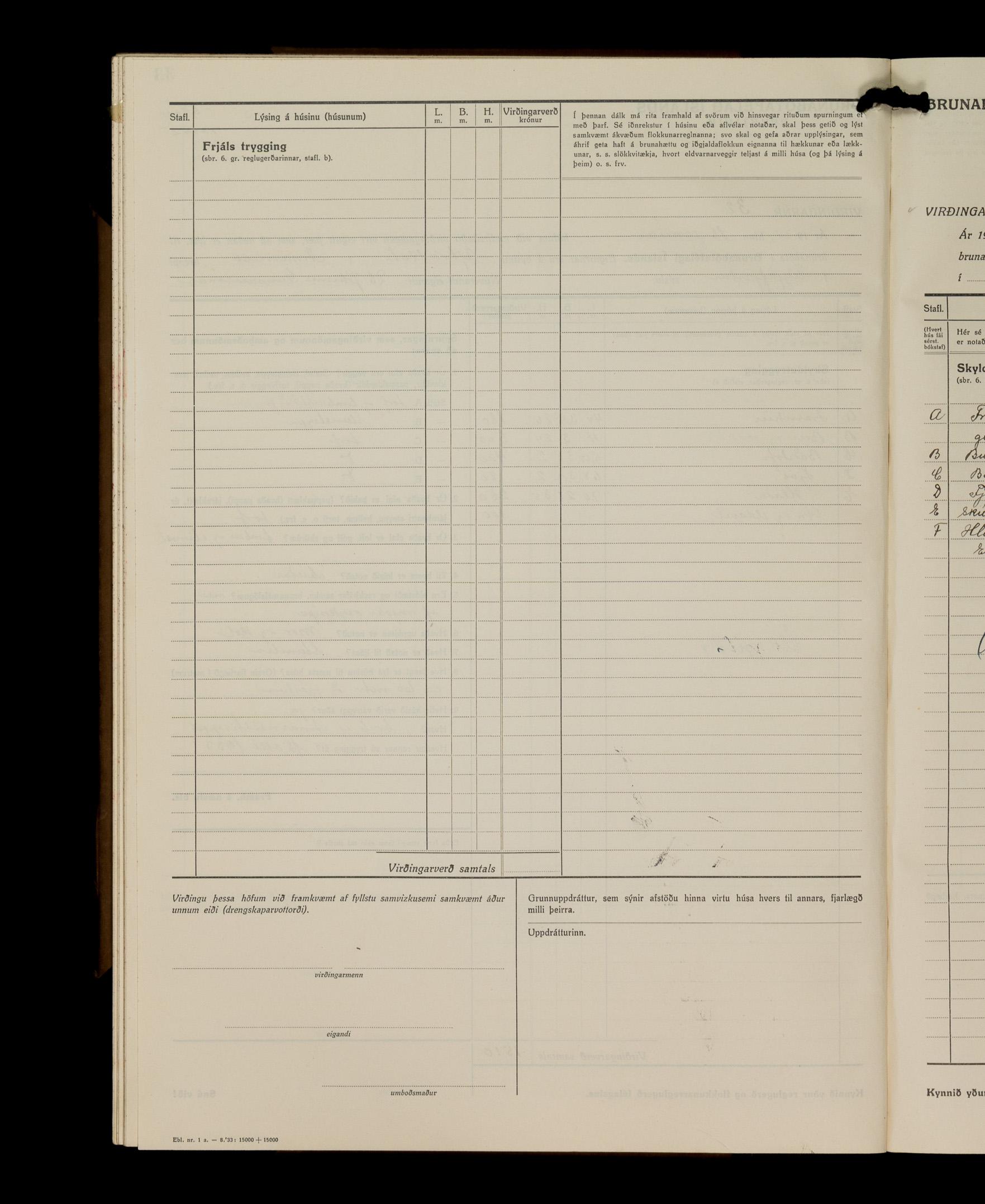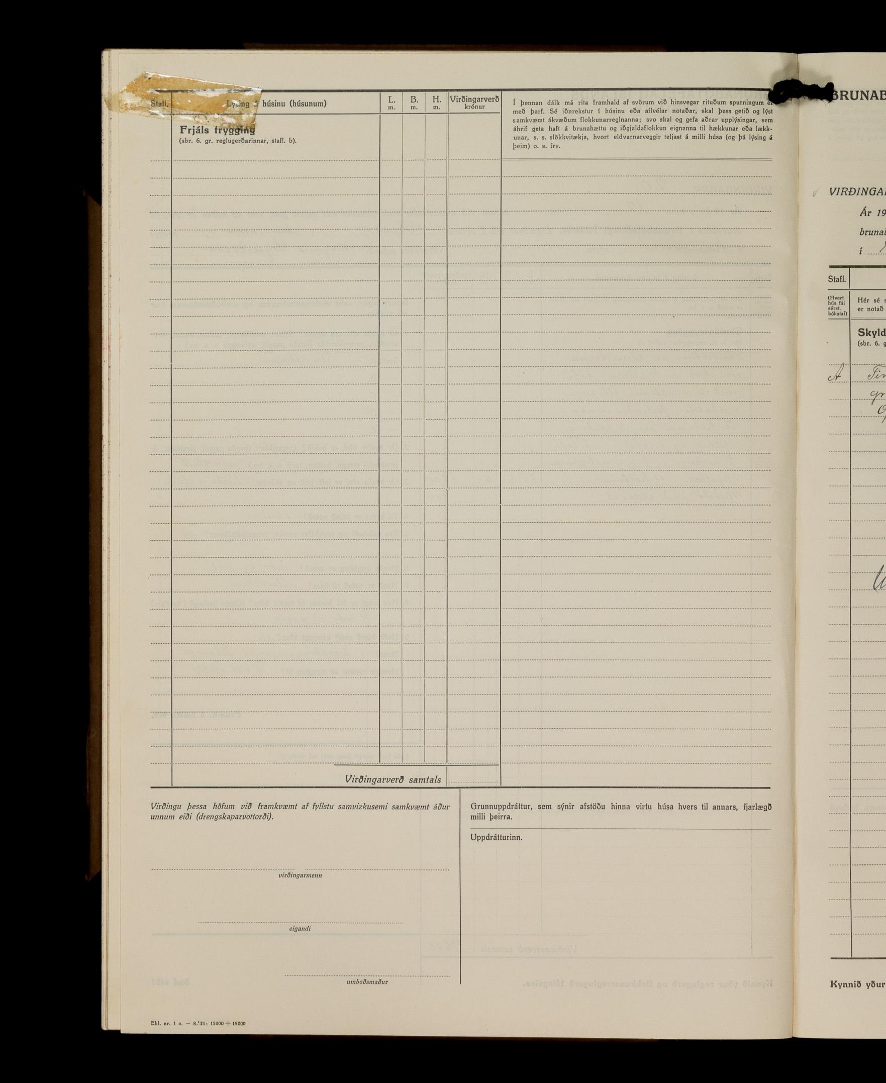 Virðingabók Brunabótafélags Íslands, Arnarneshreppsumboð 1933 - 1938