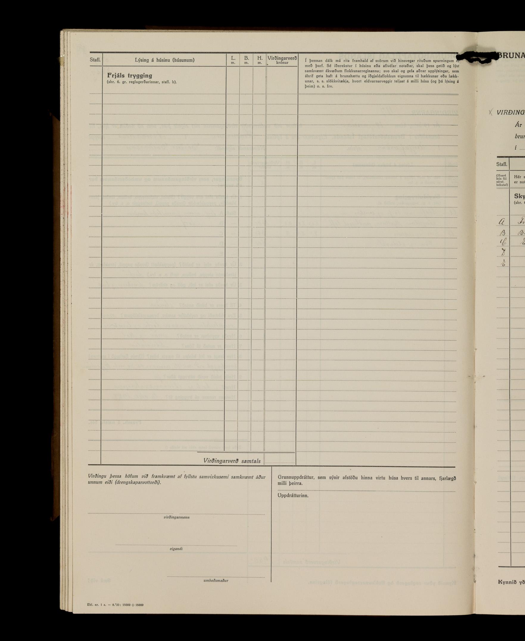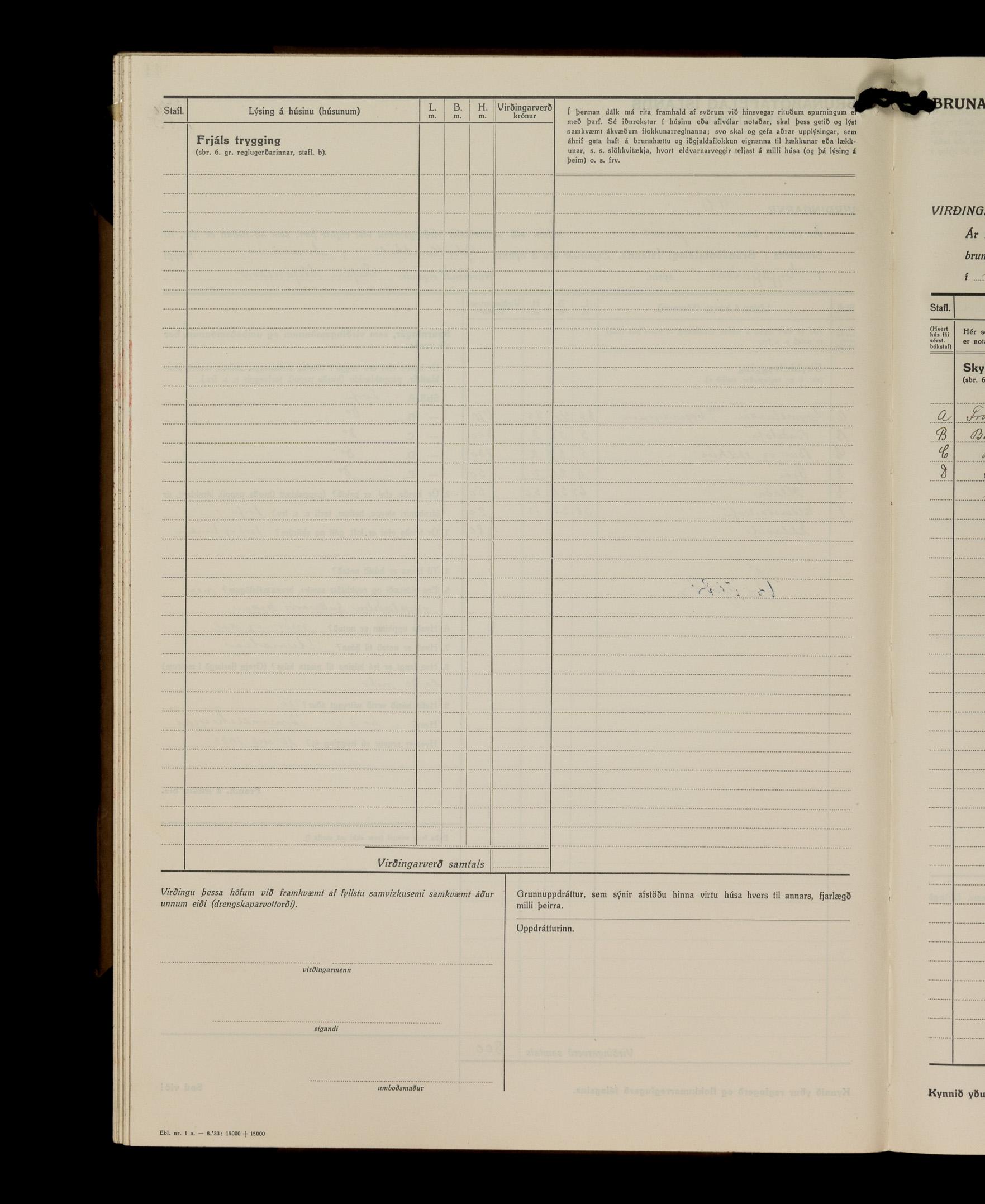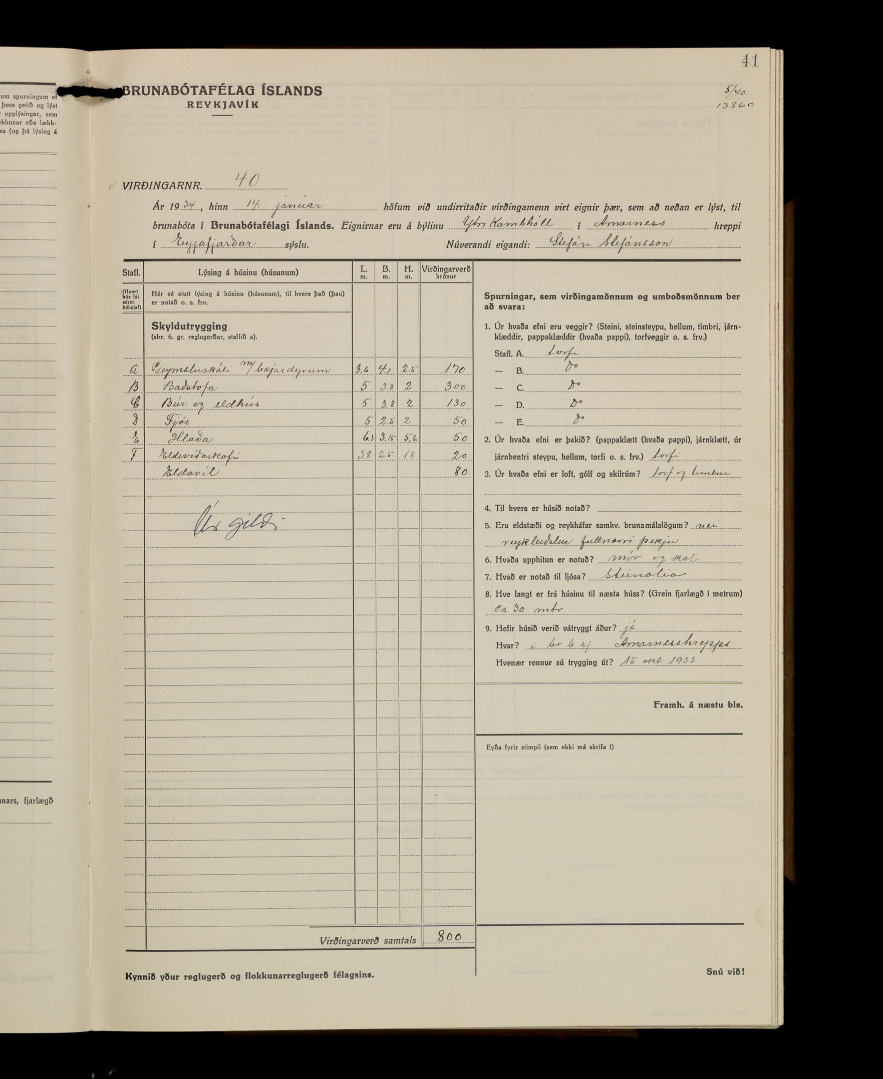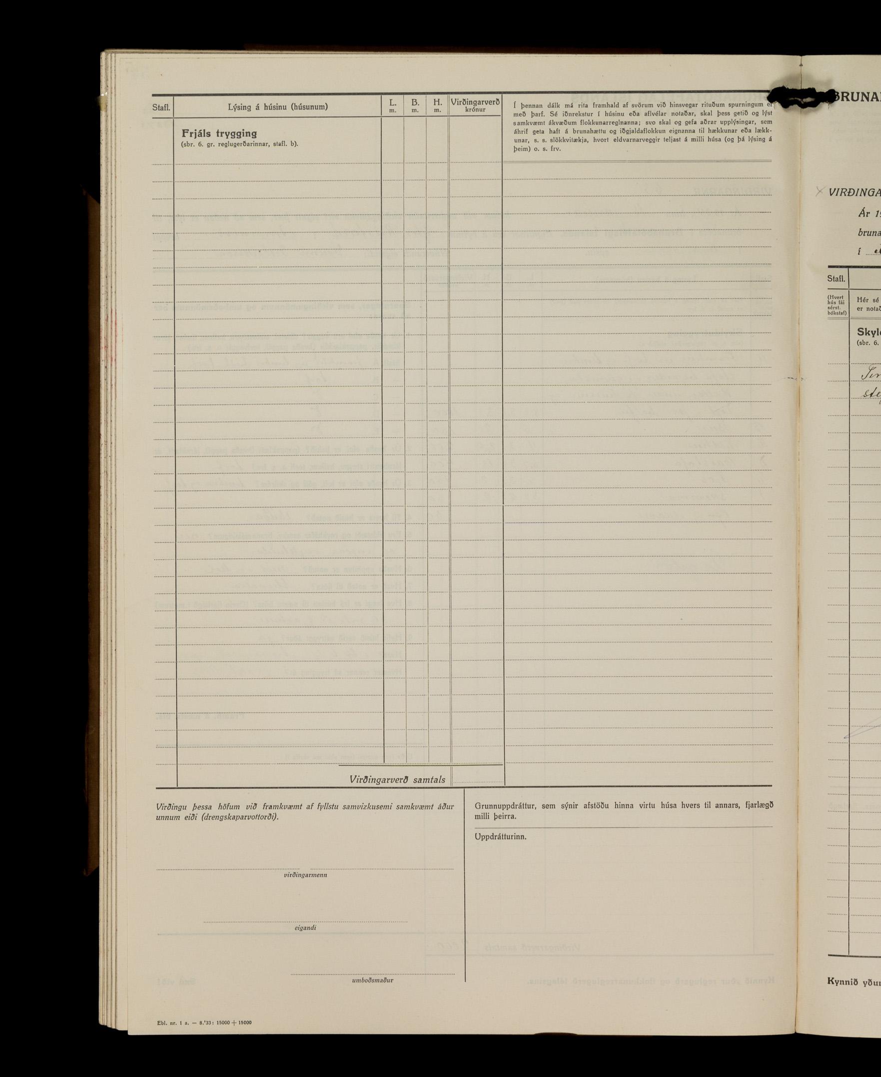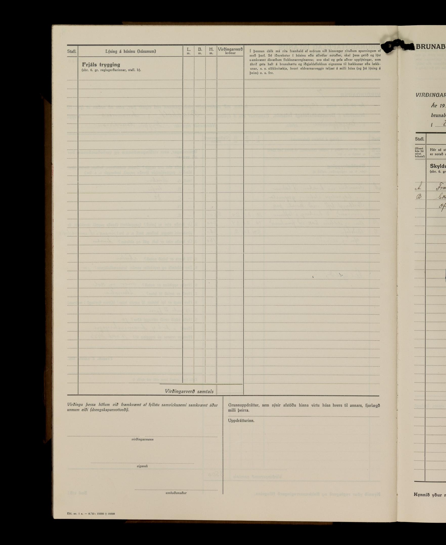 Virðingabók Brunabótafélags Íslands, Arnarneshreppsumboð 1933 - 1938