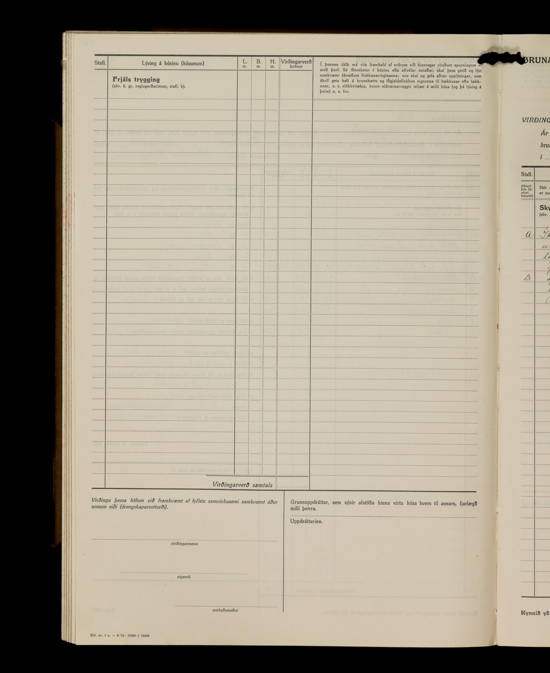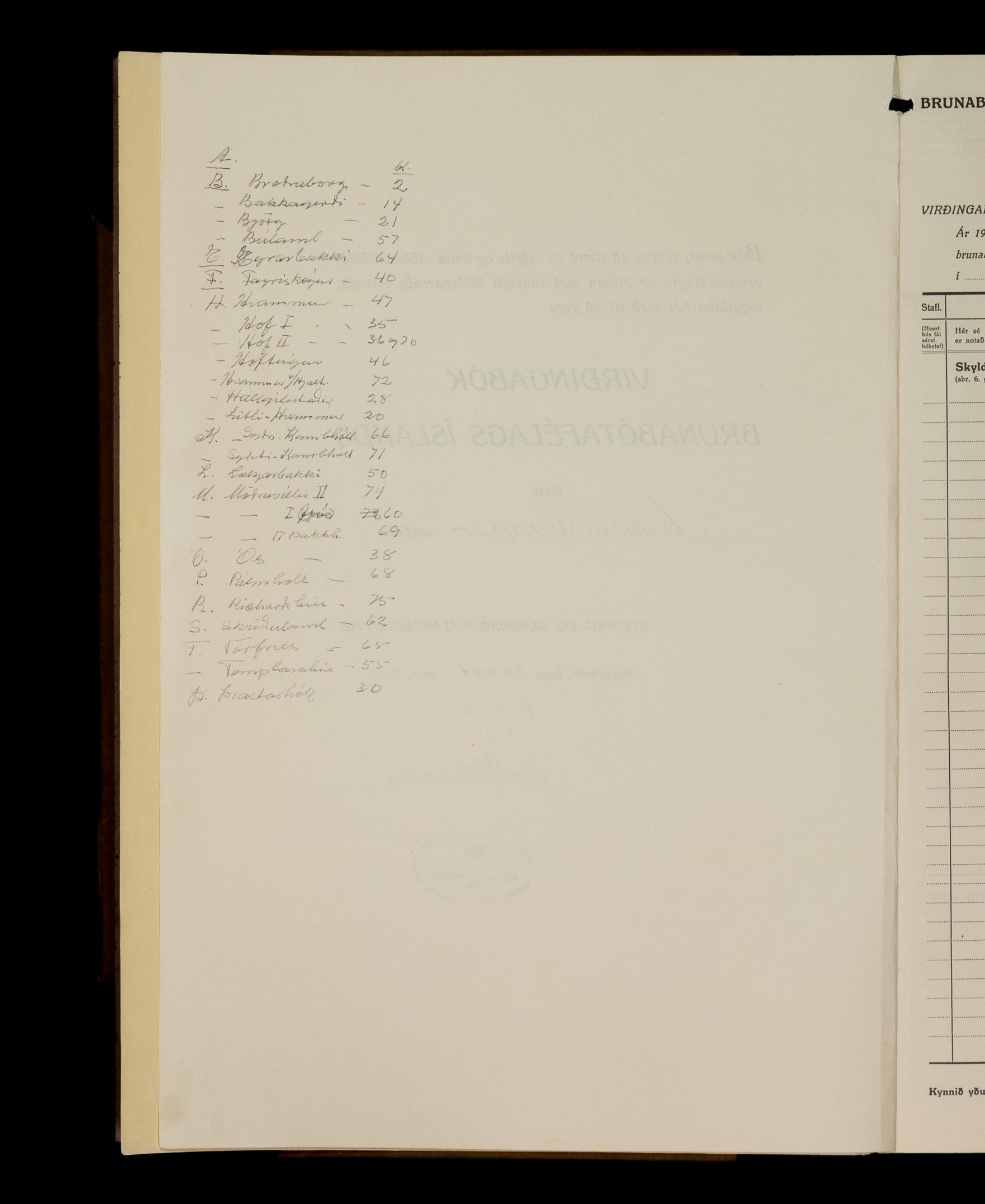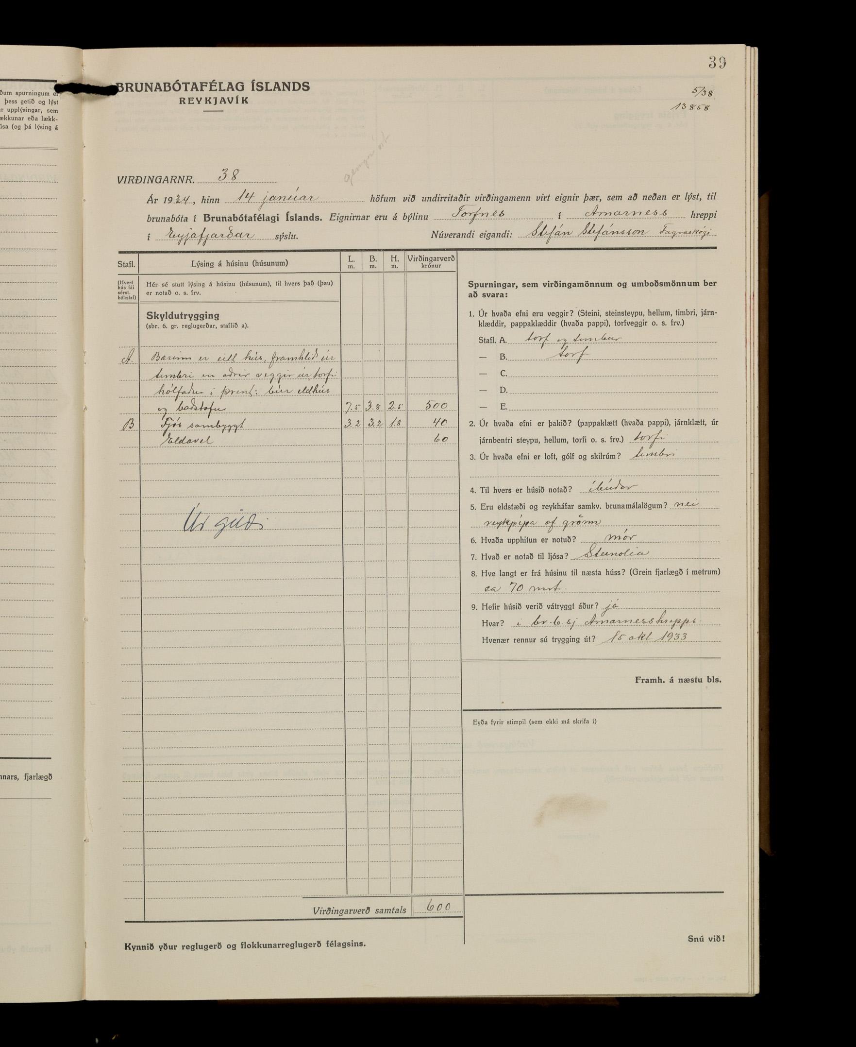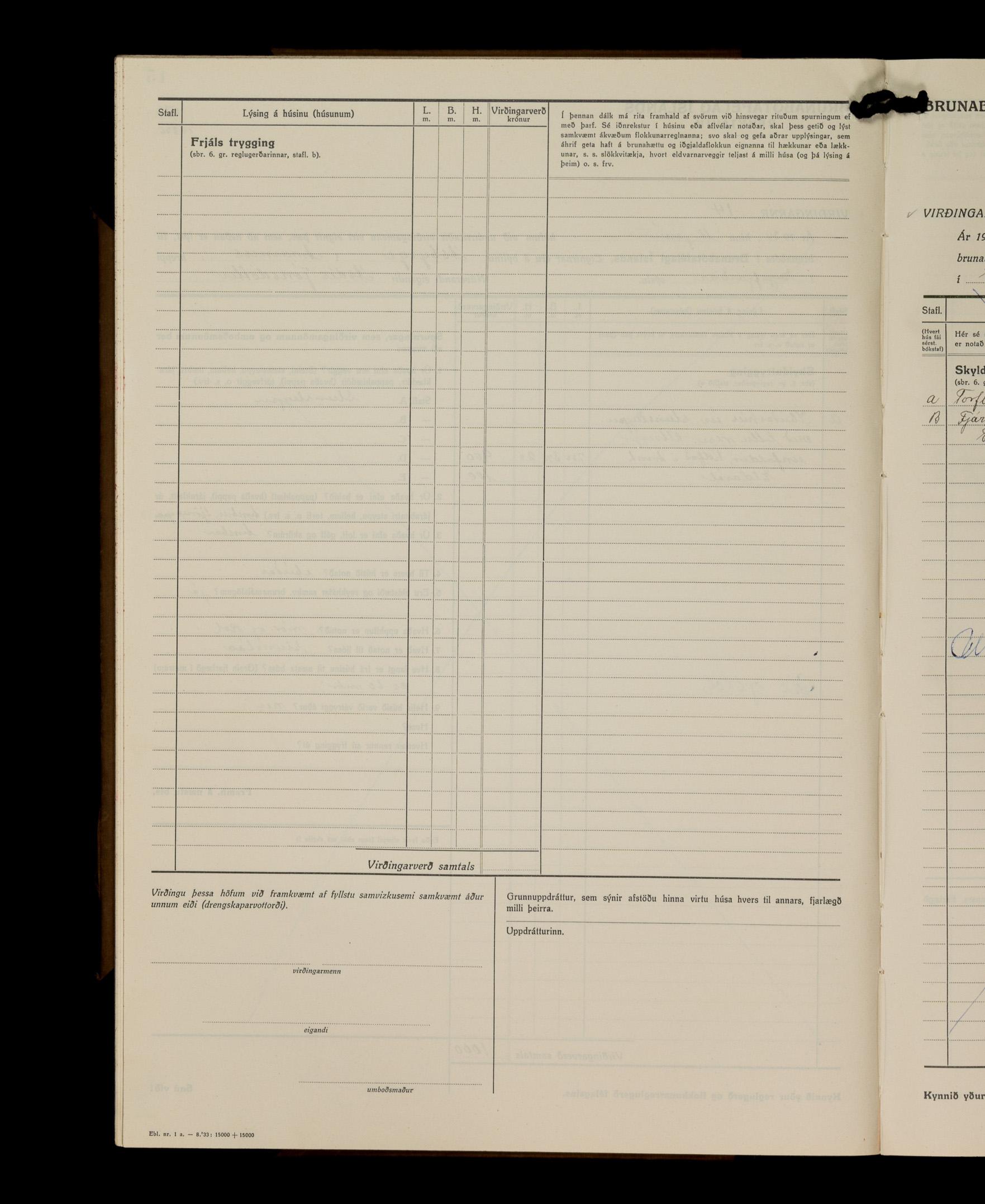 Virðingabók Brunabótafélags Íslands, Arnarneshreppsumboð 1933 - 1938