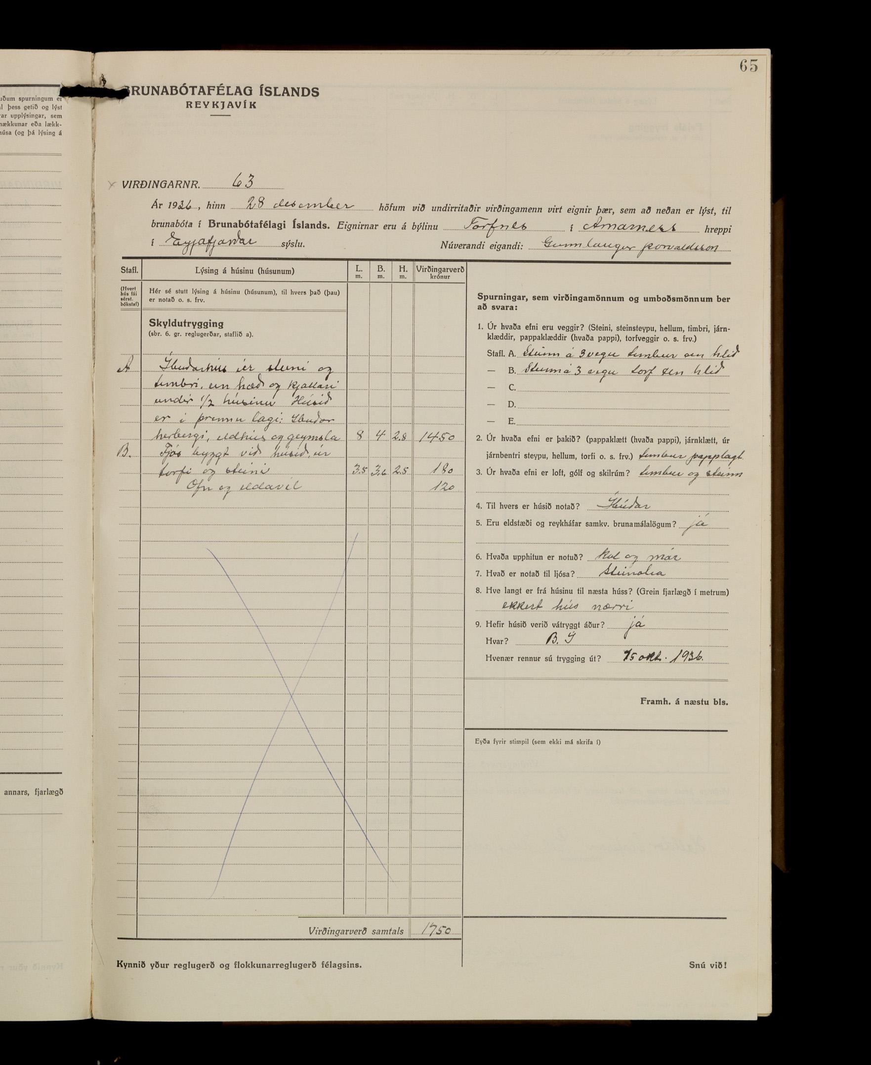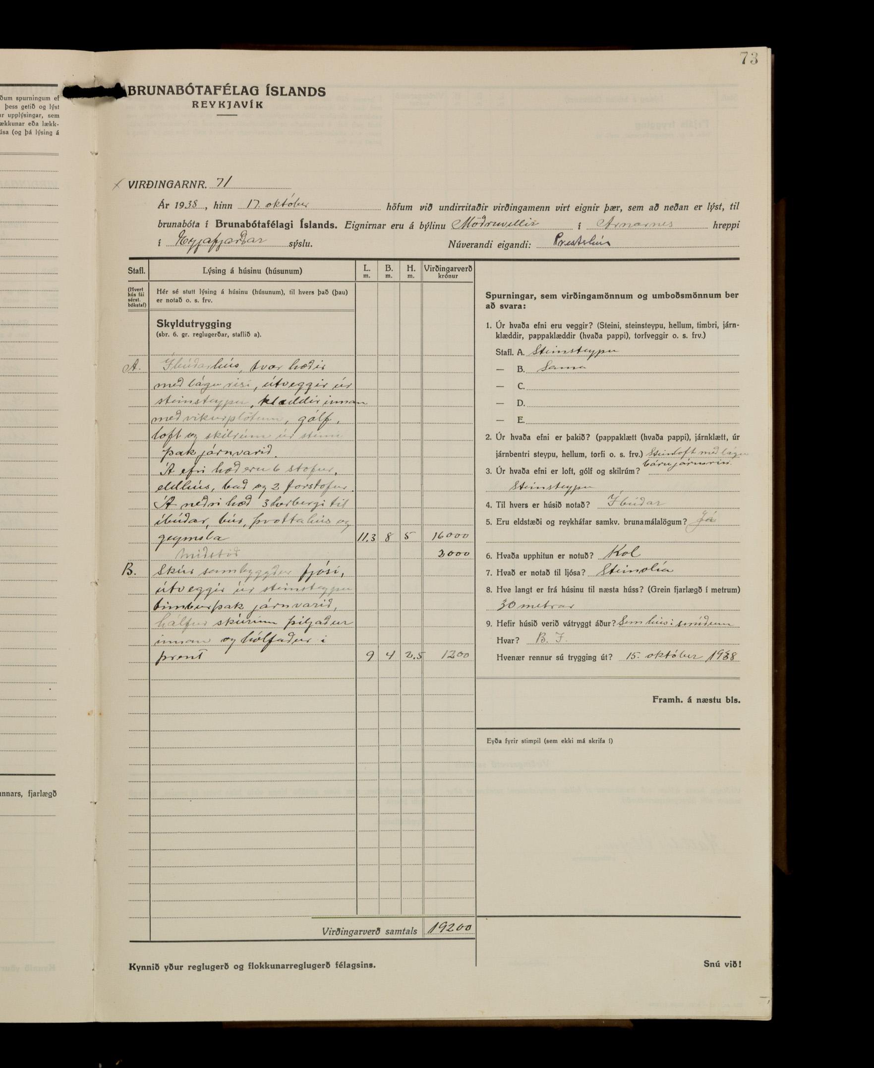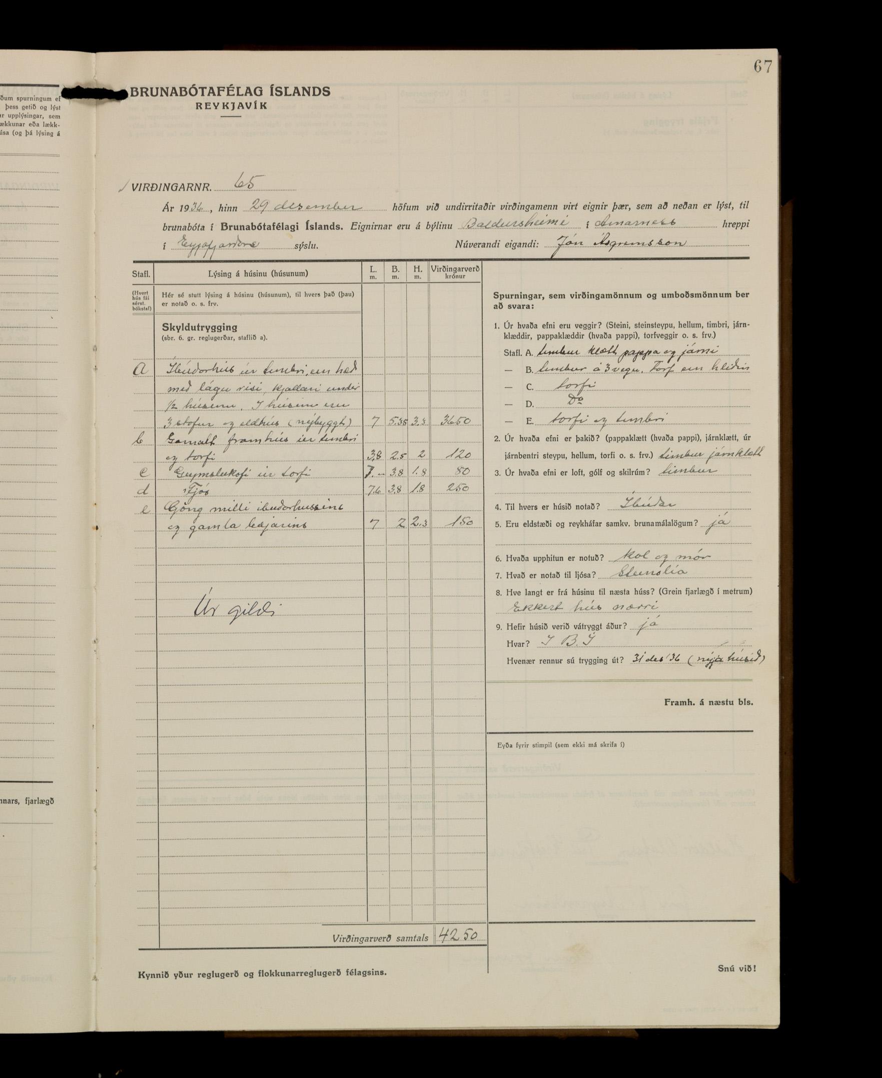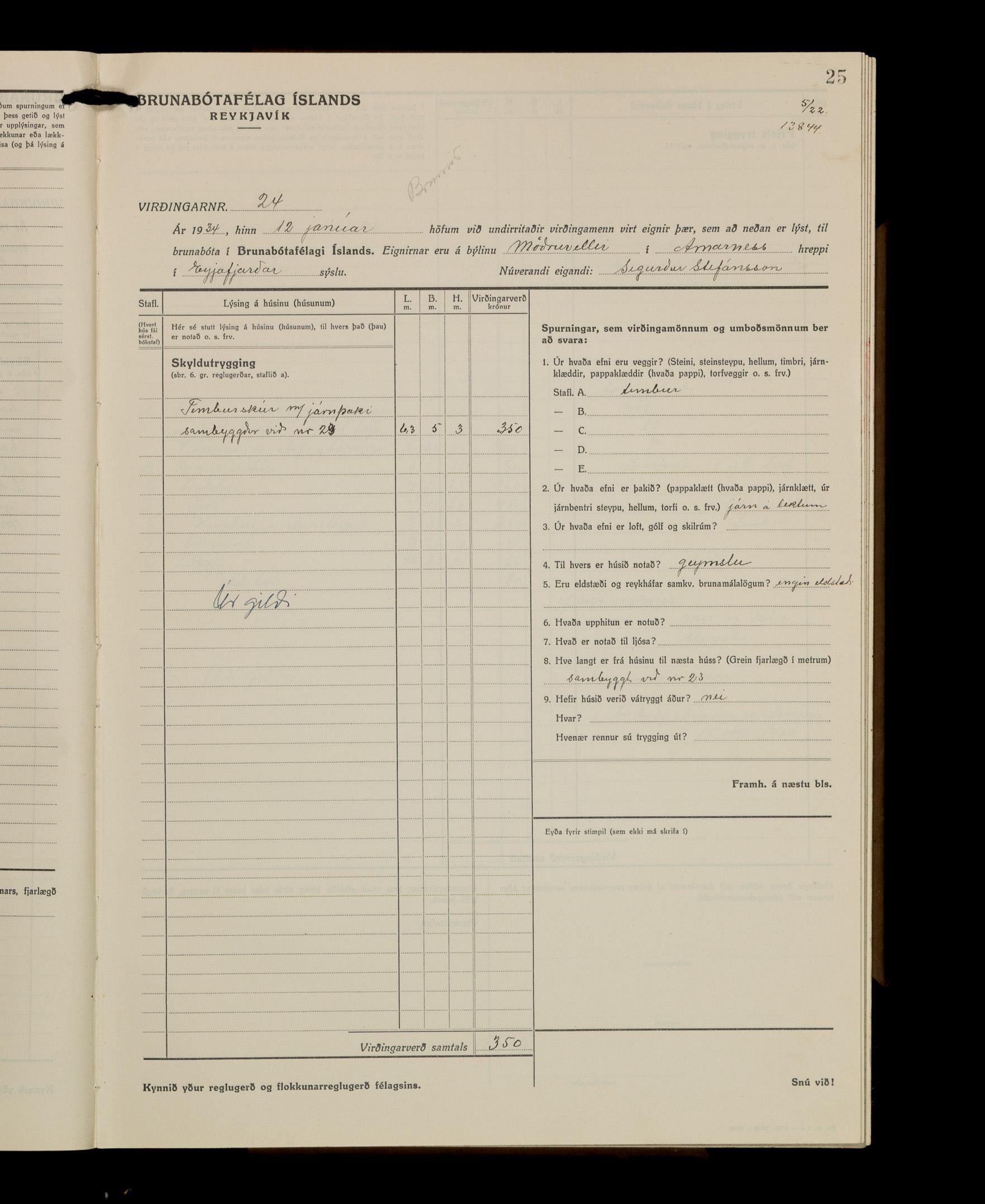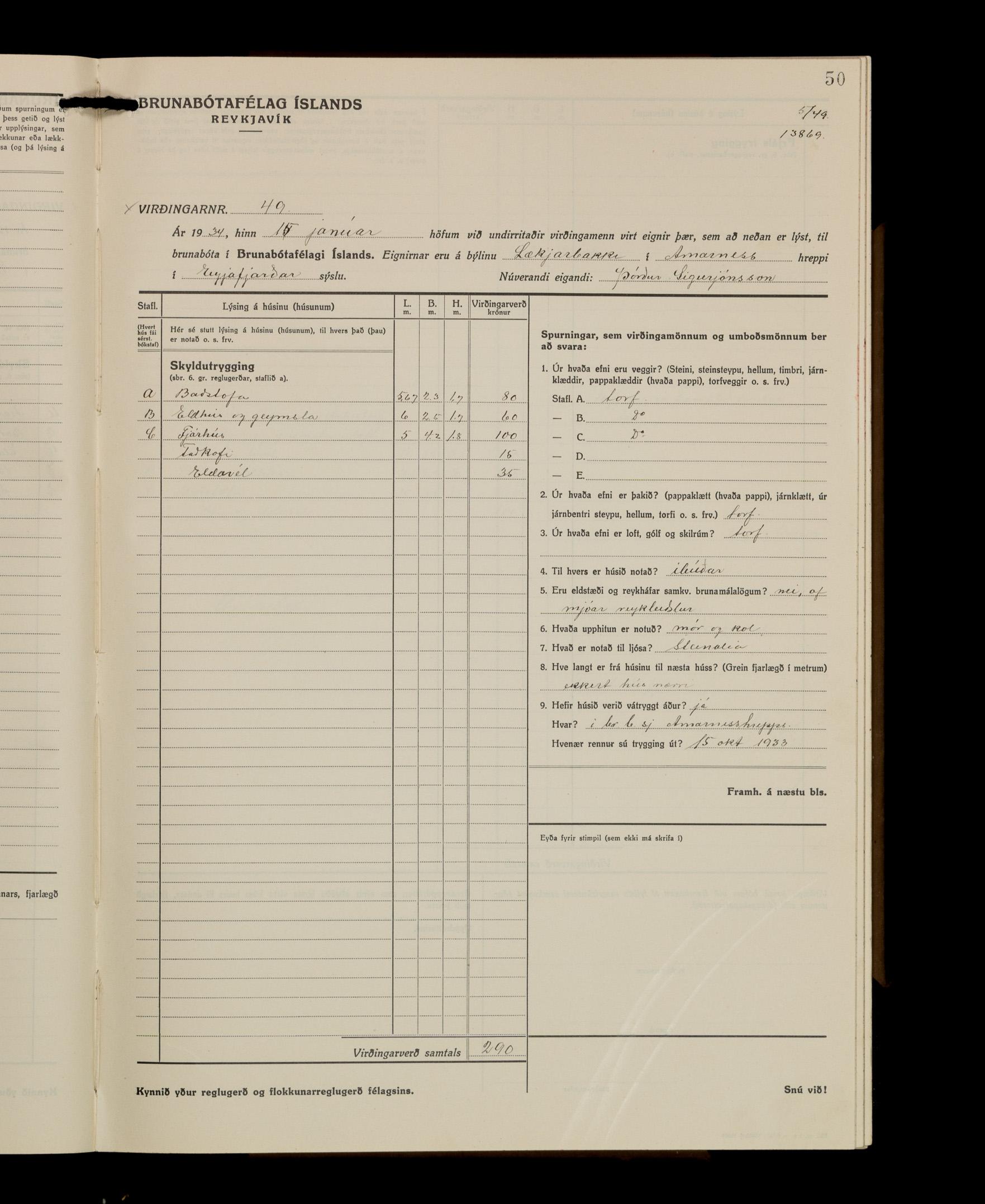 Virðingabók Brunabótafélags Íslands, Arnarneshreppsumboð 1933 - 1938