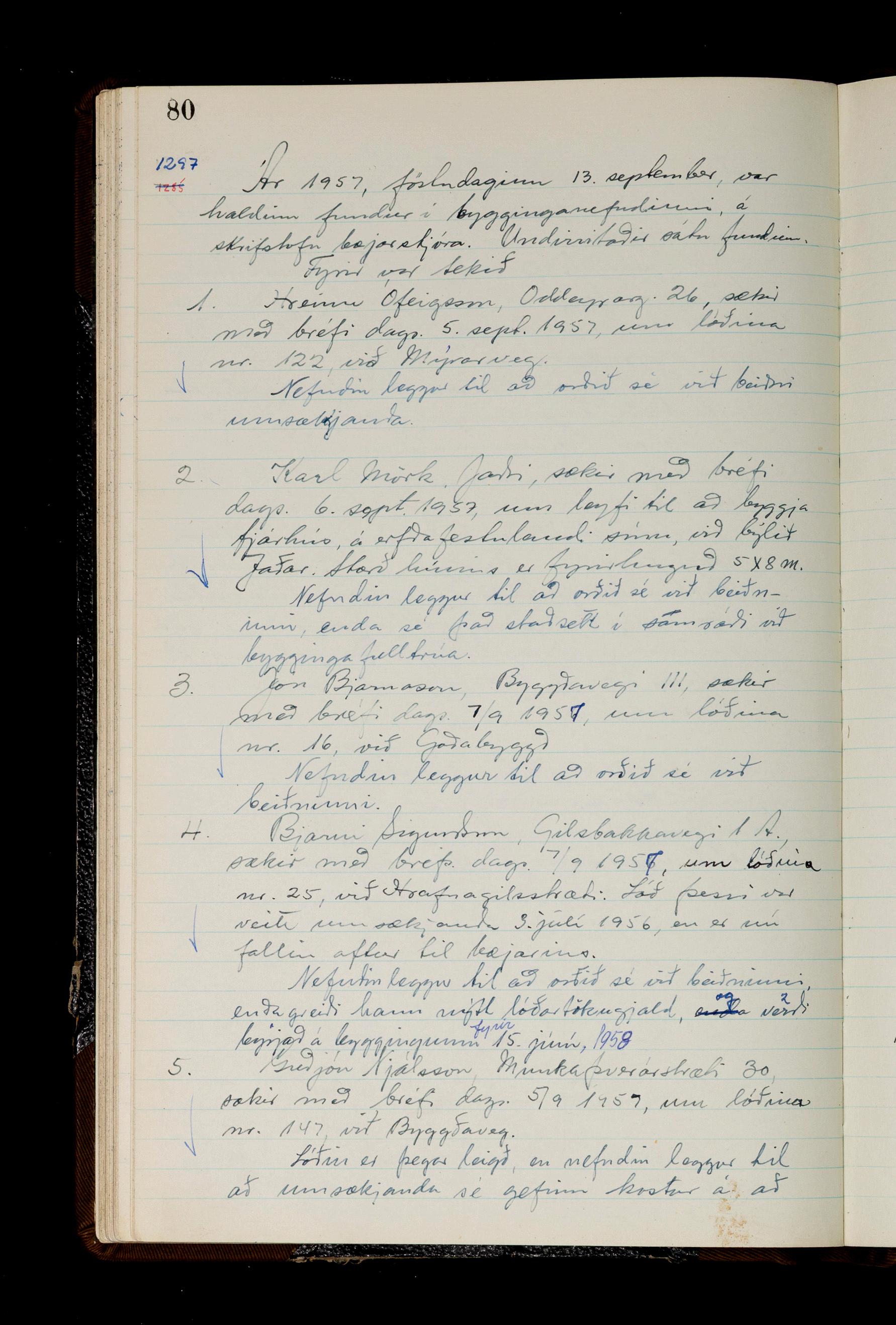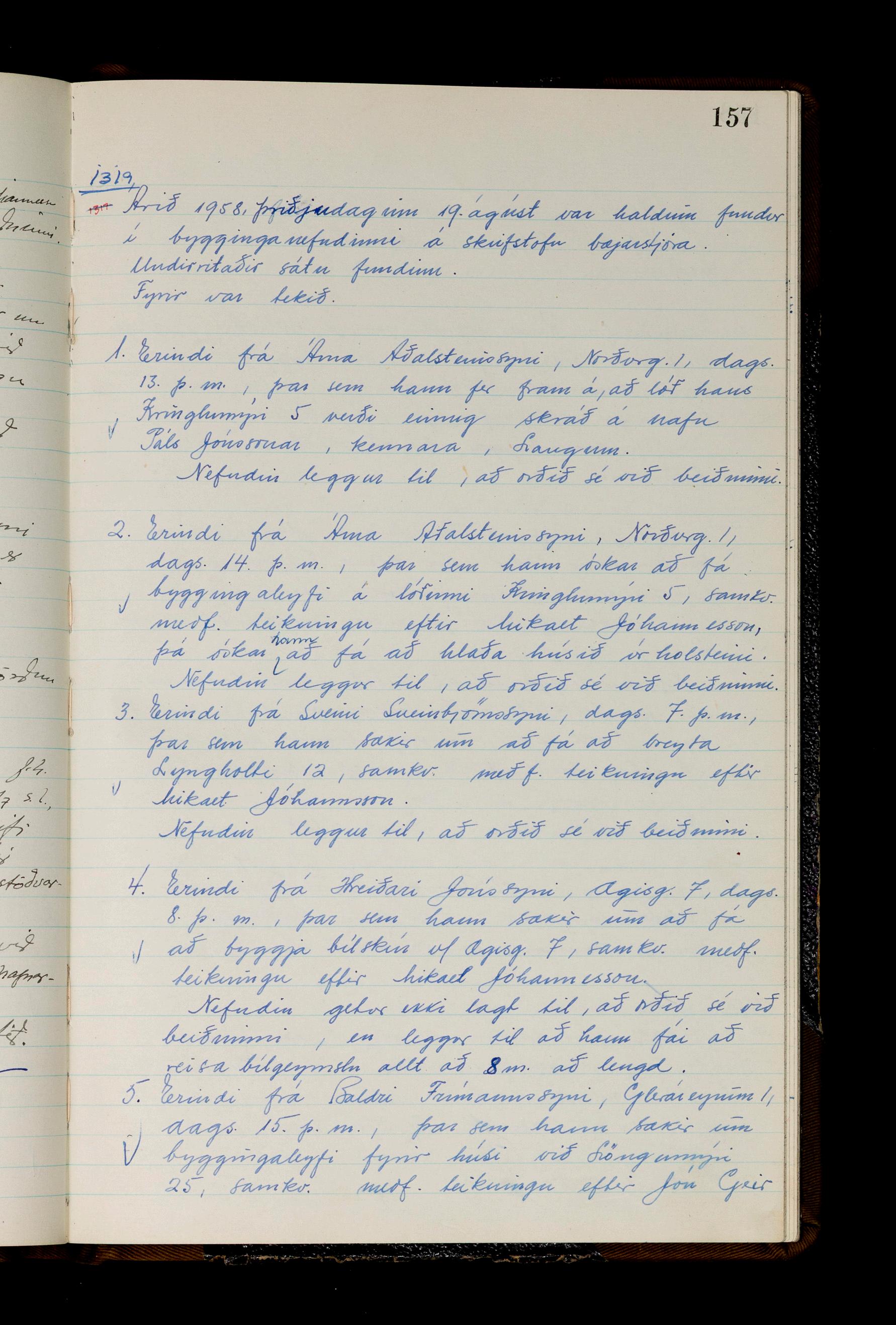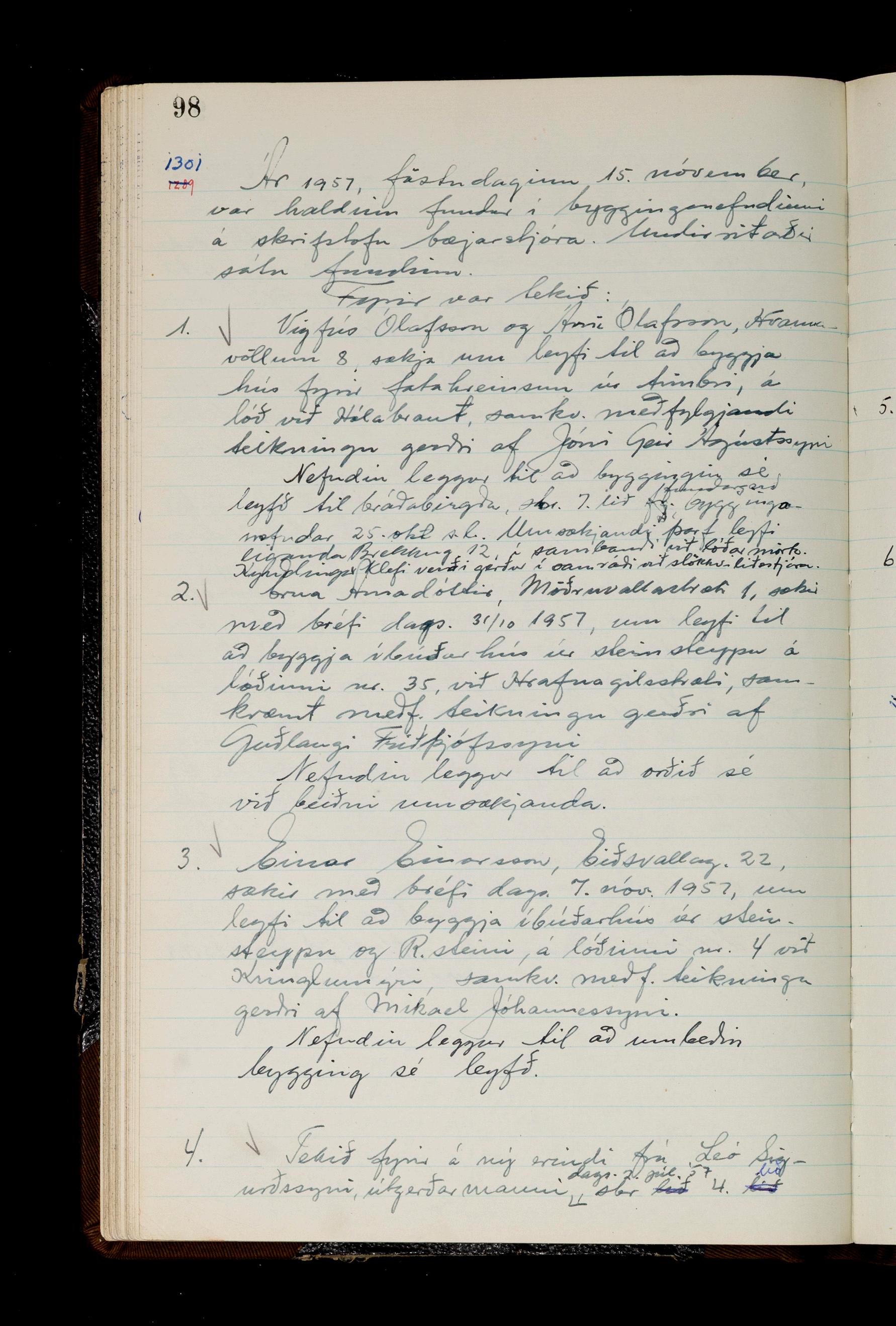 Fundargerðabók bygginganefndar 1957-1959