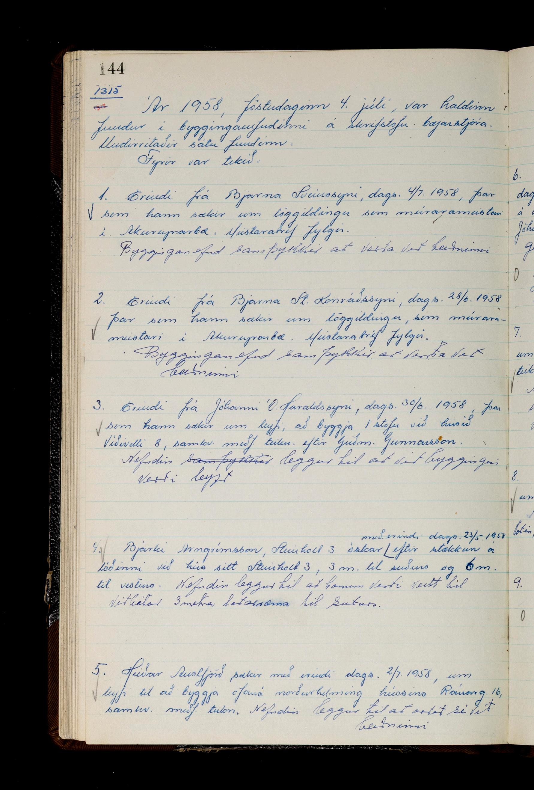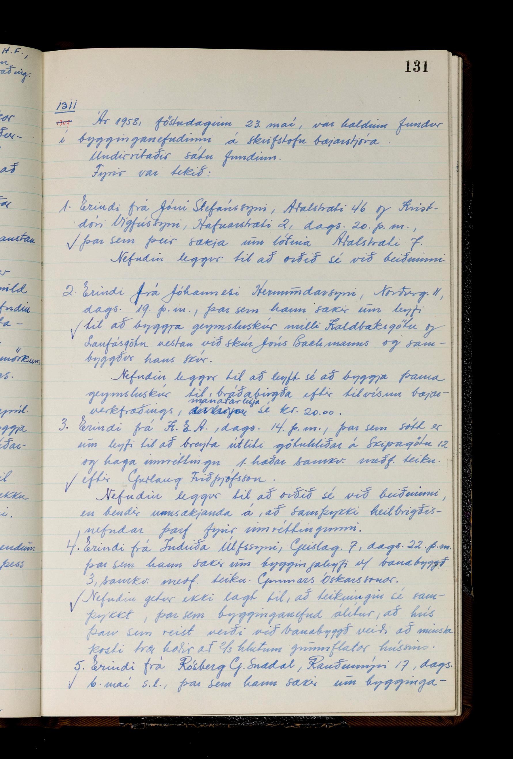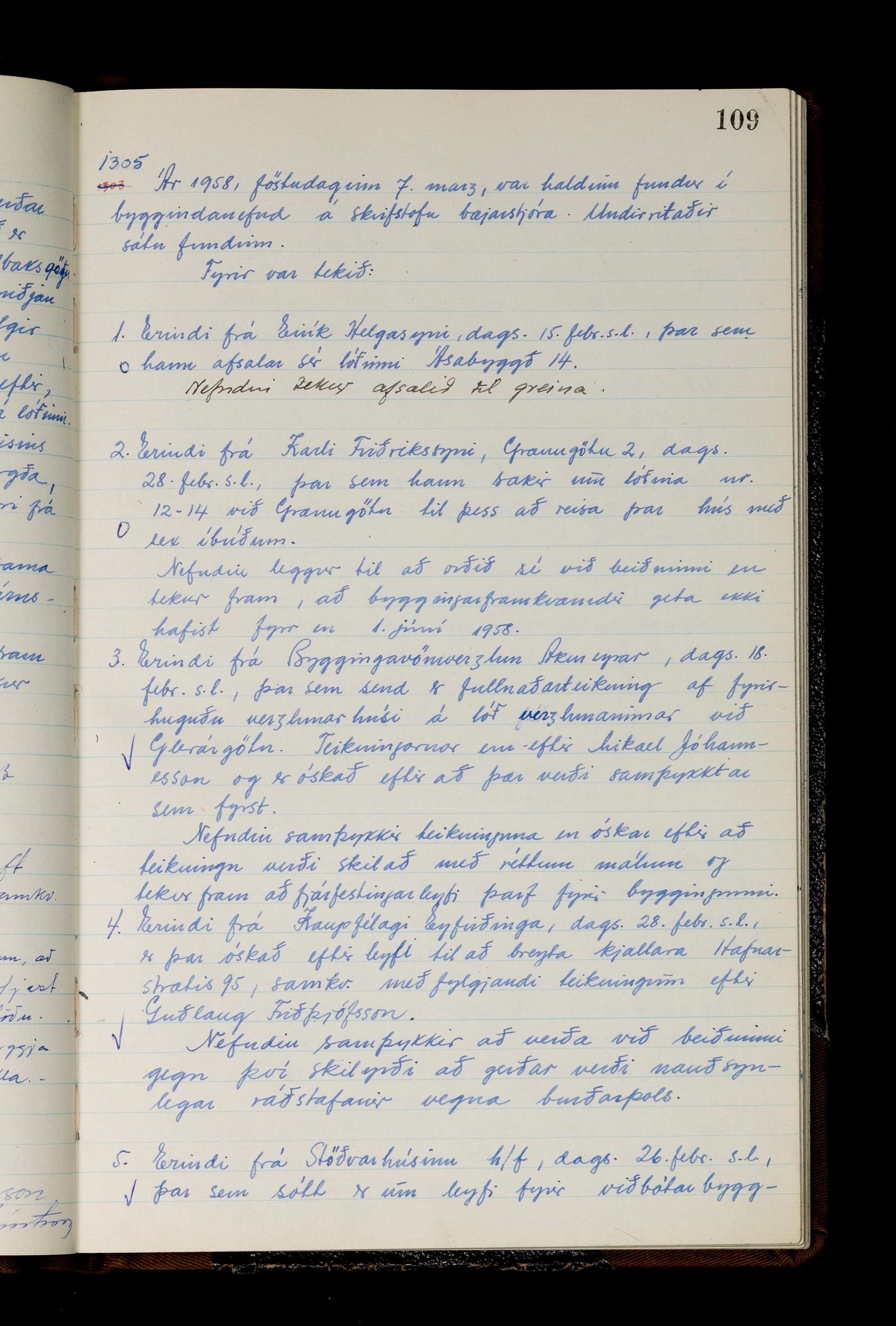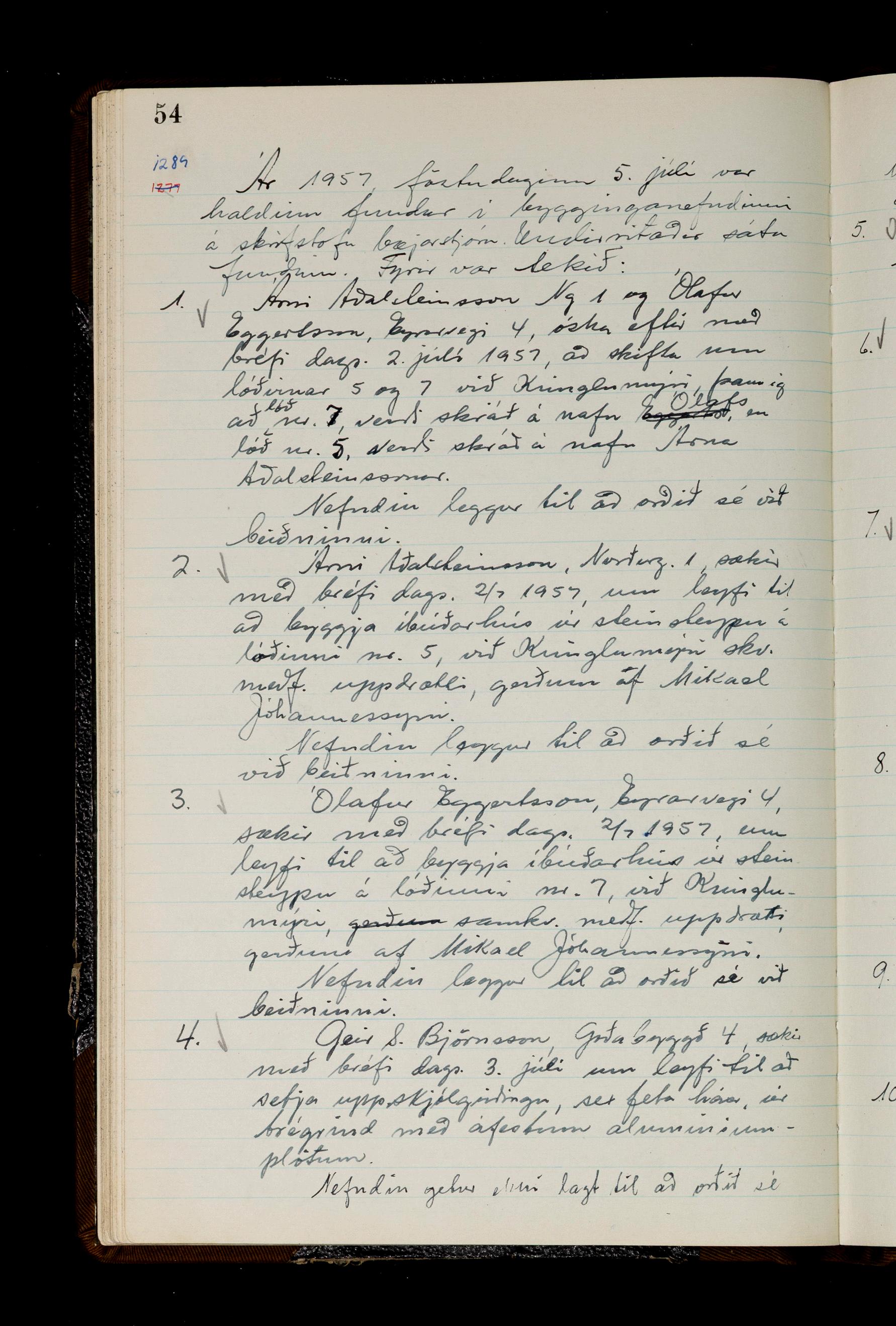 Fundargerðabók bygginganefndar 1957-1959