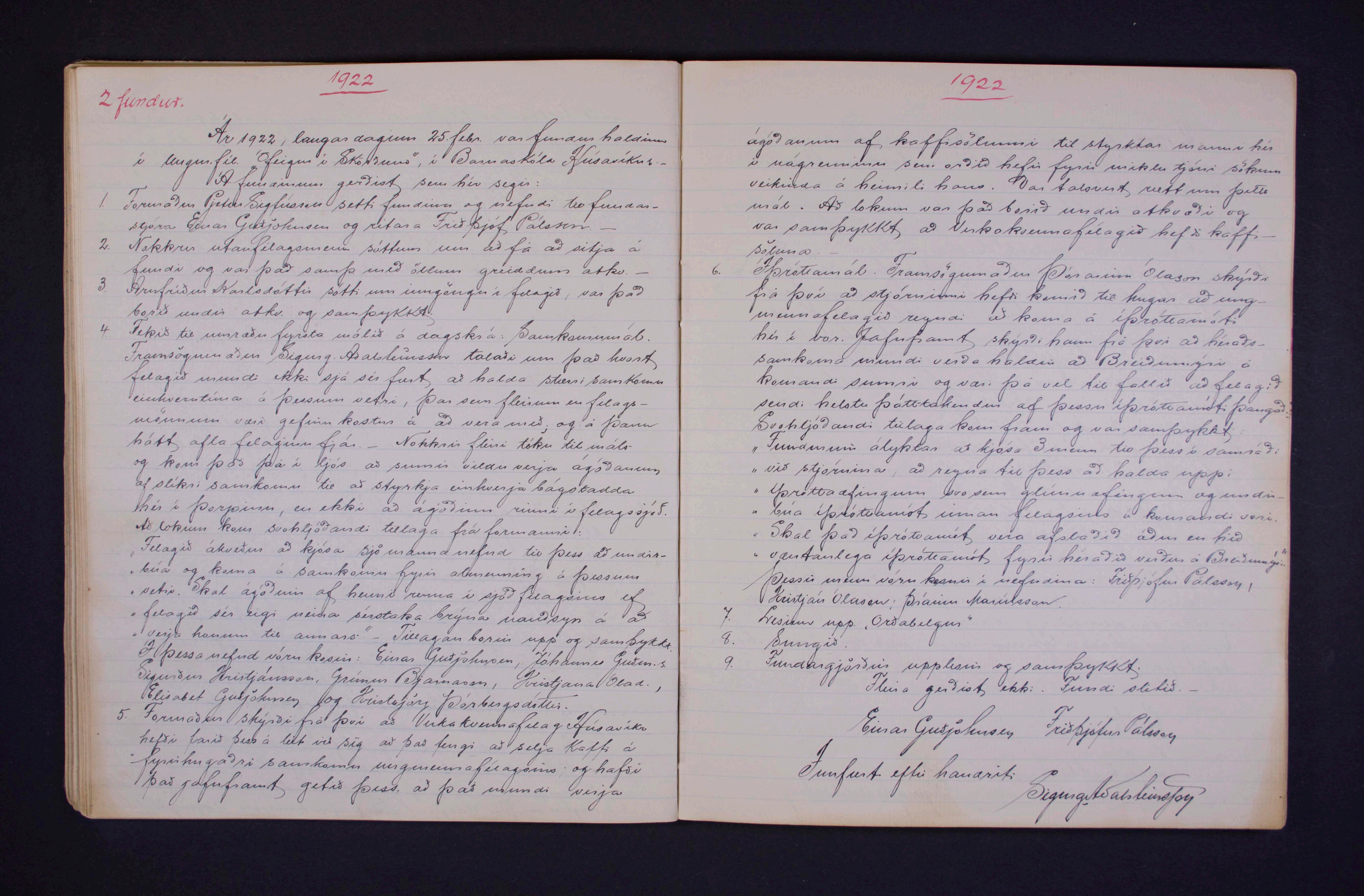 Gjörðabók Ungmennafélagsins "Ófeigur í Skörðum" í Húsavík 1908-1932.