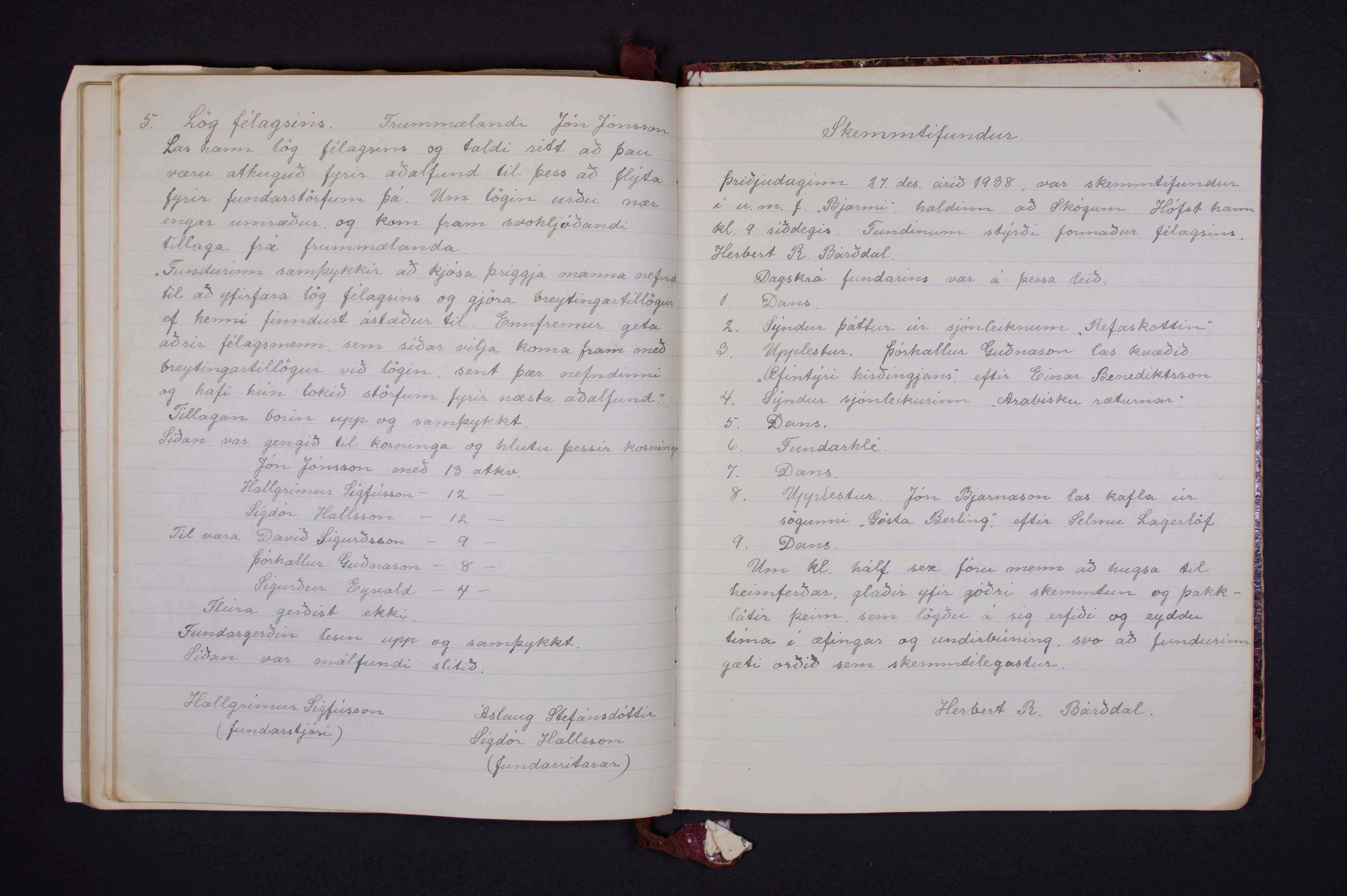 Fundargjörðir U.M.F. Bjarmi í Fnjóskadal 1932-1939.