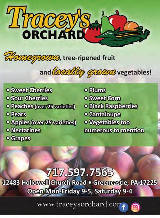 YOUR LIFE IN GREENCASTLE-ANTRIM 2023 9 traceysorchard.com | follow us on CUSTOM WINDOW FASHIONS RESIDENTIAL & COMMERCIAL 110 Industrial Drive • Chambersburg, PA 17201 (717) 263-8300 • (800) 344-5765 www.LewreneInteriors.com 56 56 Distributors of: • Cellular & Pleated Shades • Shutters • Porch Shades & Wovenwoods • Roller Shades • Venetian Blinds • Vertical Blinds • Wood Blinds Manufacturers of: • Custom Bedspreads & Dustruffles • Cubicle Curtains • Custom Draperies • Custom Drapery Hardware • Roman Shades • Stage Draperies • Valances • Slip Covers Installation & Repair Services Available