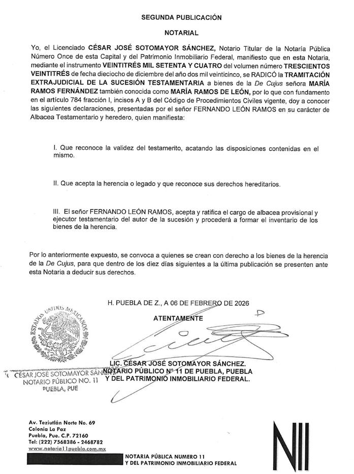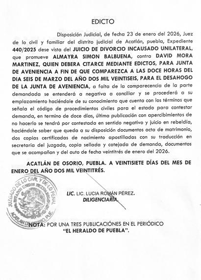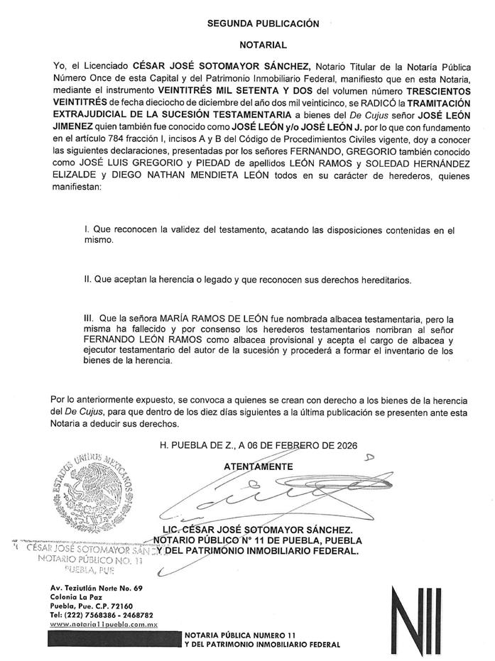 CUATRO VECES HEROICA PUEBLA DE ZARAGOZA, A 09 DE FEBRERO DE 2026.