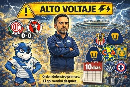 • EL HABER EMPATADO A CERO EN “LA PERRERA MÁS GRANDE DE MÉXICO” DEJA SATISFECHO A ALBERT ESPIGARES, DIRECTOR TÉCNICO DEL CLUB PUEBLA, PERO CON MAL SABOR DE BOCA PORQUE ESTÁ CONSCIENTE QUE TIENEN QUE TRABAJAR MUCHO MÁS PARA CONSEGUIR ANOTAR GOLES. “HABER VISTO LO QUE HE VISTO DURANTE EL PARTIDO, PUES ME DEJA SATISFECHO, POR UN LADO, PORQUE SEGUIMOS CRECIENDO, PERO POR OTRO LADO SI TE QUEDA EL MAL SABOR
