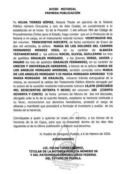 CUATRO VECES HEROICA PUEBLA DE ZARAGOZA, A 12 DE FEBRERO DE 2026.