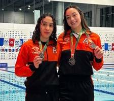 REDACCIÓN. Las estudiantes Circe Garrido y Aline Valdés destacaron en el Nacional de Natación Conadeip 2025 al obtener medallas de plata y múltiples finales en Primera Fuerza. FOTO: ESPECIAL