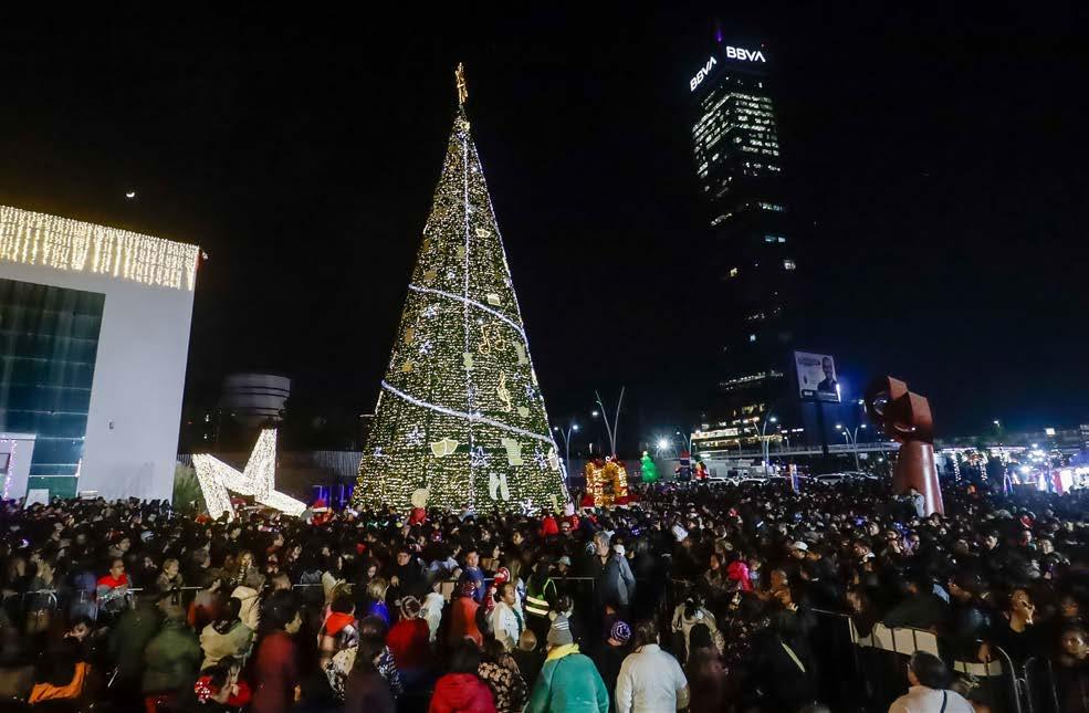 El árbol navideño tiene una altura de 30 metros, con un total de 93 mil foquitos Led (186 series de 500 luces cada una), además cuenta con 7 mil 200 metros de escarcha.