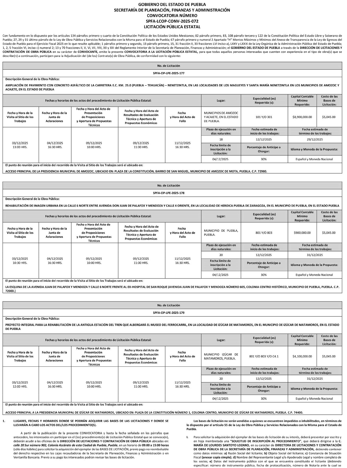 de licitación SPFA-OPLPE-2025-165, publicada por el Gobierno del Estado.