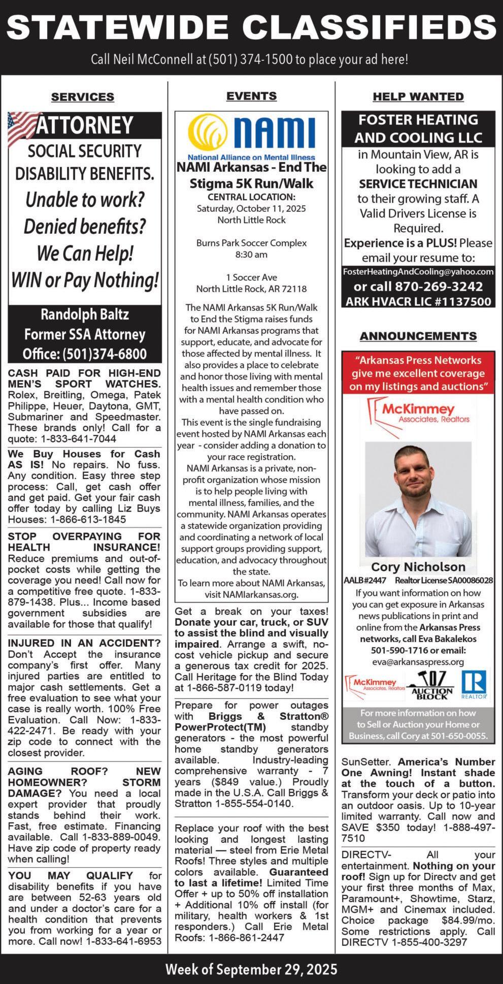 CareLink, the Central Arkansas Area Agency on Aging is issuing a Request for Proposals (RFP) for the delivery of aging services in Faulkner, Lonoke, Monroe, Prairie, Pulaski, and Saline Counties for the period July 1, 2026 through June 30, 2031. Letters of Intent must be submitted by any organization proposing to respond to this RFP and received by CareLink no later than 10:00 a.m., November 6, 2025. The letter of intent must specify the service(s) and service area(s) upon which the organization intends to bid. Letter of intent may be mailed to CareLink at P.O. Box 5988, North Little Rock, AR 72119 or hand-delivered to 700 W Riverfront Dr, North Little Rock, AR. Agencies intending to submit a Letter of Intent may request an Aging Service RFP by calling 501-372-5300 or 1-800482-6359 prior to November 6, 2025.