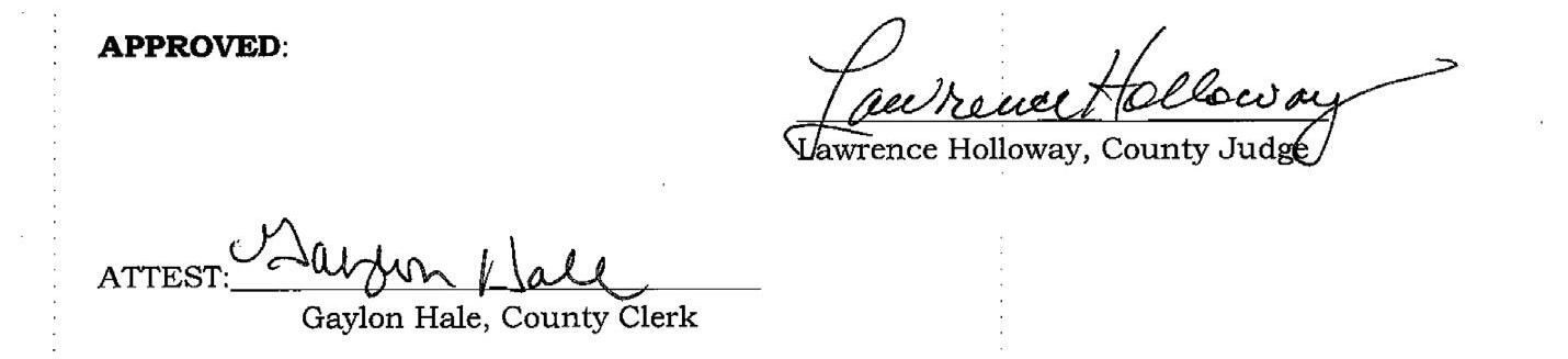 All of the justices were present at the meeting, along with Judge Lawrence Holloway, County Clerk Gaylon Hale, and County Attorney Abram Skarda.
