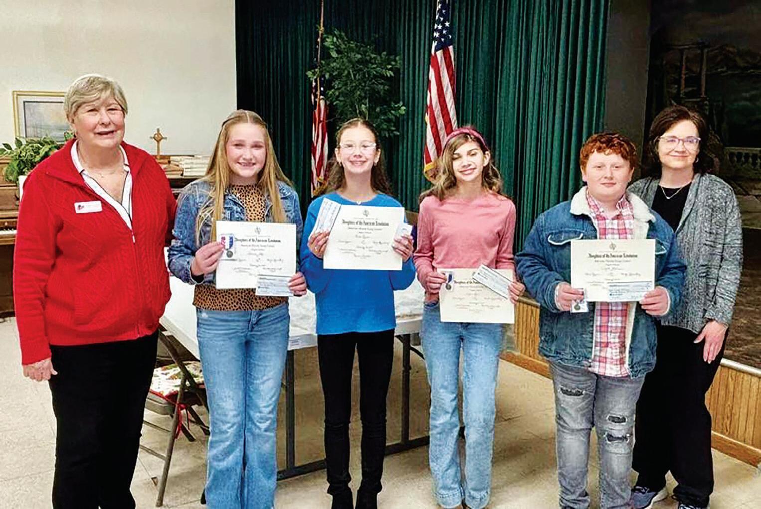 Daughters of the American Revolution held the monthly meeting on Saturday, Feb 22, at the First Christian Church in Stuttgart. The program was introduced by Regent-Elect Cheryl Vickers who presented the student winners of the NSDAR American History Essay Contest. Fifth and sixth grade students from area schools participated and four winners were named. The stu-
