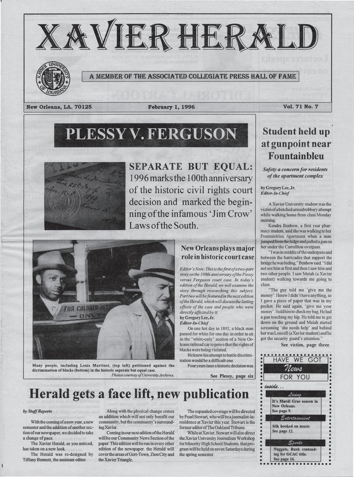One day during my senior year as editor of The Xavier Herald, I walked into a courtroom with my fellow editor, Mary Webb. As we entered, Xavier President, Dr. Norman C. Francis, and another administrator looked our way with surprise. Dr. Francis turned to us as we were seated and asked how we found out about the case we were covering and whether we should be in class. We had our own sources, who shared the court date and subject with us beforehand and between the two of us, we had enough days to ditch class to cover this case.