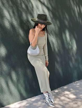 Una de las tendencias más grandes que tendremos casi para terminar el año serán sin duda los metáli cos! Sumandose a las tendencias actuales que son por demás coloridas y llamativas, los metálicos re gresan para dar más brillo e impacto. Y es que solo era cuestión de tiempo que hicieran su regreso, ya que con la influencia tan marcada que los dos miles están teniendo en la moda actual no podían que darse de lado, no solo en tonos plateados y azules que reinaron en el Y2k con esa onda futurista, tam bién tonos intensos como el rosa, morado y naranja forman parte de la tendencia actual. No hay reglas para llevarlos, pueden pasarse del día a la noche sin ningún problema y combinarse con toda clase de prendas y texturas. Para llevar esta tren puedes comenzar con sumar un accesorio como zapatos o bolsa a tu look a manera de acento o llevarla más allá con un pantalón o blazer metálico, siendo estos el foco de atención del look, creando un gran fashion statement.