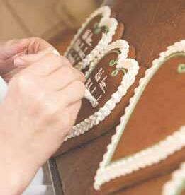 „Wir produzieren das ganze Jahr über. Aber die Zeit vor Weihnachten ist besonders intensiv, wenn die Nachfrage nach Baumbehang, Geschenkboxen und ‚Baumaterial‘ für Lebkuchenhäuser am höchsten ist. Über das Jahr hinweg werden rund 17 Tonnen Honig verarbeitet von bis zu 70 Mitarbeitern, je nach Jahreszeit“, erzählt Rubenbauer. Besonders stolz ist er darauf, dass nach wie vor sehr viel Handarbeit in den kleinen Kunstwerken steckt – nicht zuletzt beim Dekorieren. Seit dem 19. Jahrhundert werden Lebkuchen verziert. Dafür werden zum Beispiel mit Spritzsäcken Linien, Schriften, Bänder und ähnliches in verschiedenen Farben aus Zuckerguss aufgetragen: „Vor allem bei den Lebkuchenherzen sind der Fantasie fast keine Grenzen gesetzt. Da können die Kunden auch selbst kreativ werden und ihr ganz persönliches Lebkuchenherz gestalten“. Verziert mit Blumen und Blüten oder mit dem eigenen Firmenlogo werden die Herzen so zu süßen Botschaftern. Bis es so weit ist, vergeht jedoch einiges an Zeit, denn der Lebkuchenteig aus Roggenmehl und Honig muss bis zu acht Wochen lagern. Erst dann kommen die Gewürze dazu und der Teig wird zum endgültigen Lebkuchen verarbeitet.