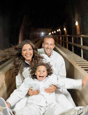 Ein Ausflug in den Berg der Schätze Nur wenige Fahrminuten vom See entfernt befinden sich die Salzwelten Altaussee. Bei den 90-minütigen Führungen durch den „Berg der Schätze“ wird die Geschichte der geraubten Kunst- und Kulturgüter, die während des 2. Weltkriegs im Berg versteckt wurden, ebenso erzählt, wie die vom Bergbau und dem harten Arbeitsalltag der Bergmänner. Highlights der Salzwelten-Führung sind die 700 Meter tief im Berg gelegene Barbarakapelle sowie eine multimediale Schaustelle zur Kunstgüterbergung. Über zwei rasante Bergmannsrutschen gelangt man zu einem unterirdischen Salzsee, bei dem ein eigens komponiertes Musikstück mit Lichtershow gezeigt wird.