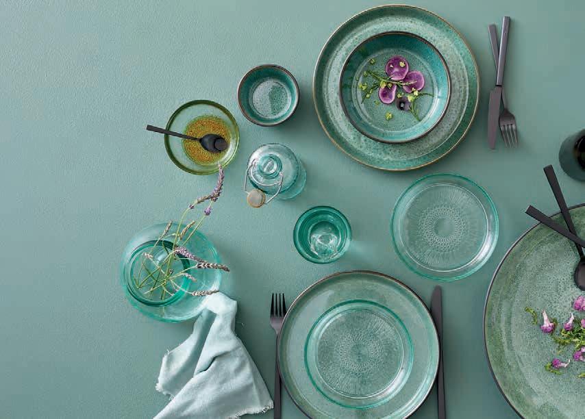 etwas mit mir. Ein schönes Glas löst immer eine Erwartung aus.“ Zusätzlich spielen auch Form, Farbe und sogar die Stiellänge eine Rolle bei der richtigen Glasauswahl. „Das Glas ist der Big Player am Tisch. Ich kann mit einem Glas viel richtig oder alles kaputt machen“, betont Flieser-Just. Das gilt übrigens nicht nur für Weingläser, sondern auch für Biergläser und Gläser für nicht alkoholische Getränke. Auch beim Kochen achtet Flieser-Just auf eine adäquate Auswahl. Hauptsächlich kommen Töpfe und Pfannen aus Emaille und Kupfer auf ihren Herd. Beim Besteck wechselt die erfahrene Gastgeberin zwischen geraden, schlichten Designs für den Alltag und luxuriöseren Modellen für besondere Anlässe. Auf die optische Gestaltung einer Tafel achtet der Genusscoach ebenso, schließlich isst bekanntlich das Auge mit.
