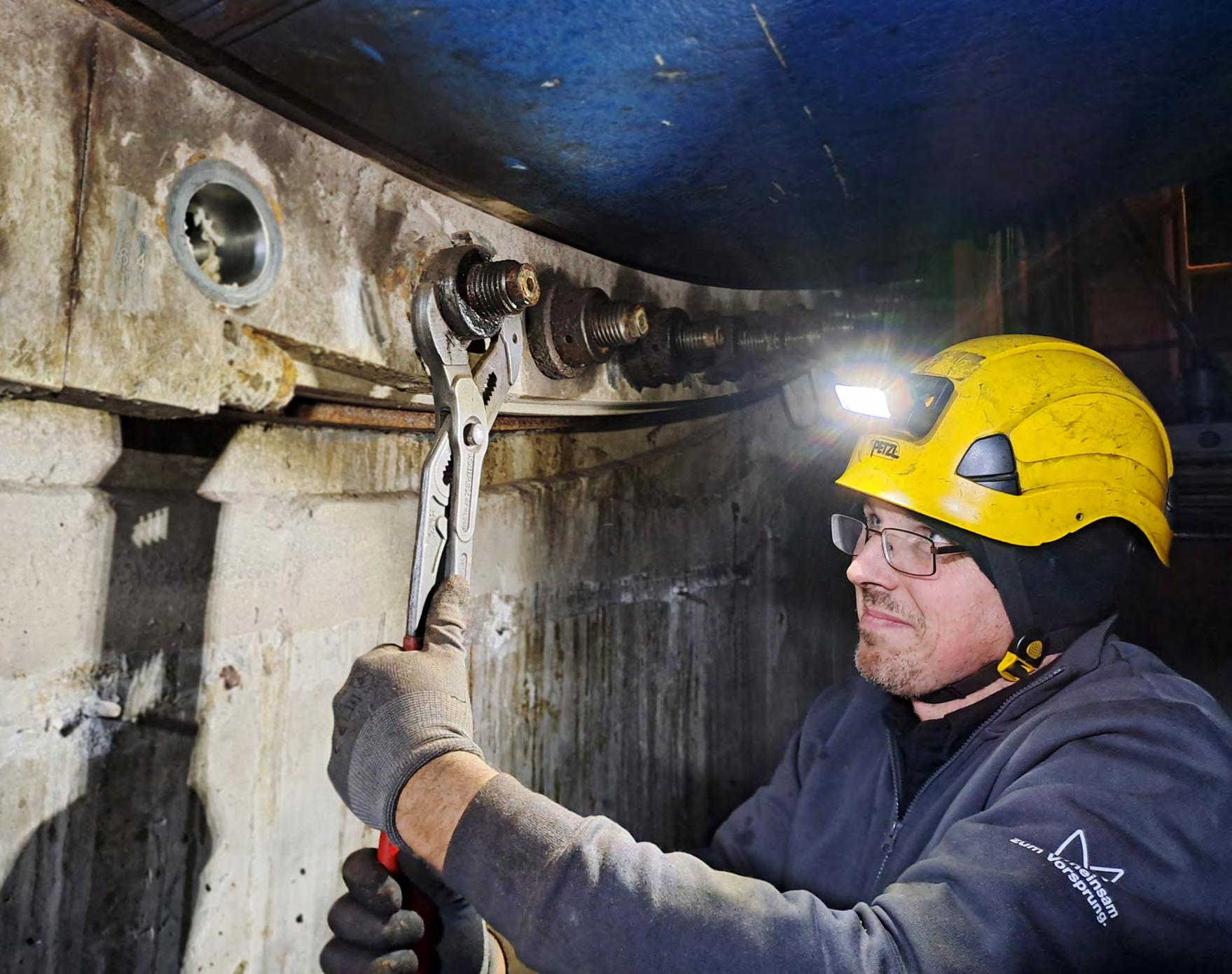 „Wir sind bei diesem Projekt mit verschiedenen Arbeiten an den Turbinen und anderen Anlagenabschnitten betraut. Jede Wartungsarbeit verlangt höchste Konzentration und verantwortungsvolles Arbeiten. Aber beim Anblick dieser Anlage können sich unsere Facharbeiter der Faszination der gigantischen Bauelemente nicht ent ziehen“, erzählt Hubert Schauer. Die Arbeiten werden gemeinsam mit der Instandhaltungs-Abteilung des Kunden realisiert. Dazu gehören das Tauschen der Lager bei den Leitschaufeln, das Erneuern der Wandring-Dichtungen, das Überarbeiten der Turbinenschaufeln und vieles mehr. „Wir sind stolz, unseren Beitrag zur Stromerzeugung aus nachhaltiger Wasserkraft leisten zu können. Unser Dank geht an die Verbund AG für das Vertrauen in MPH“, sagt Geschäftsführer Manfred Halbwachs. Regelmäßige Wartung und Instandhaltung verlängern die Lebensdauer von Anlagen. Kostspielige Ausfälle und aufwendige Reparaturen können vermieden werden. Das Team von MPH verfügt über langjährige Wartungserfahrung.