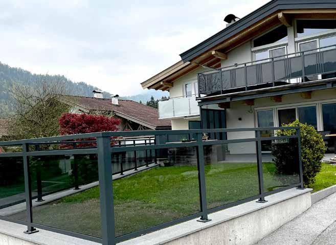 Geländer, Zaun und Sichtschutz fügen sich mit den Glaselementen zu einem harmonischen Gesamtbild und unterstreichen die Architektur des Gebäudes.