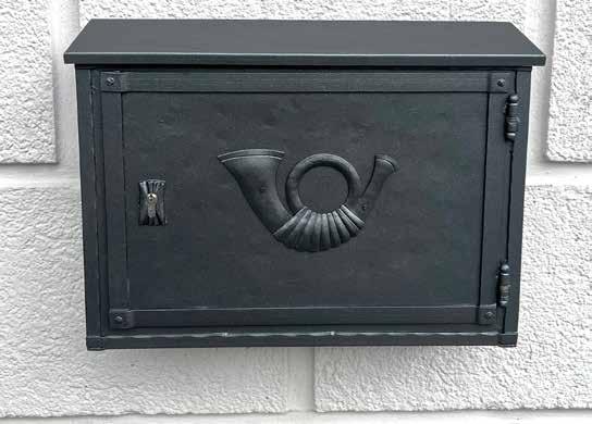 Auch im Kleinen auf Details zu achten ist eine Spezialität der Tiroler Edelschmiede. So entstehen Kunstwerke, wie etwa dieser Postkasten, den die Tiroler Edelschmiede für die Pfarre St. Ulrich am Pillersee gefertigt hat. Er besteht aus handgeschmiedetem Eisen. Lackiert passt er genau zum historischen Pfarrhof, wo er von der Tiroler Edelschmiede montiert wurde. „Da freut man sich jeden Tag darauf, die Briefe zu holen“, ist Stefan Schwentner überzeugt.