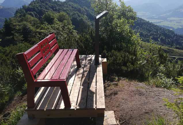 verzinkt und auf Wunsch des Auftraggebers in einem speziellen Rot-Ton beschichtet. Die Bänke sind entlang der Strecke leicht wiederzuerkennen“, erzählt Stefan Schwentner. Zum Aufstellen der Bänke kamen zum Teil Helikopter zum Einsatz, weil der Transport anders nicht möglich war.
