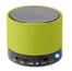 Aluminium 4.2 wireless speaker with rechargeable Li-on 450mAh battery and light at the bottom of the speaker. Output data: 3W, 4 Ohm and 5V. Micro USB cable included. Playing time aprox. 3h. Size Ø7x4,3 cm Print technique Round screen printing ,L,P,DO1