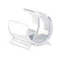 5.0 wireless moon shaped speaker in ABS. Light with 2 levels of brightness (warm and white LED). Including wooden base. 1 rechargeable Lithium 2000 mAh battery included. Output data: 3W, 4 Ohm and 5V. Includes USB charging cable. Playing time approx. 5h. Size 13,5x13,5x14 cm Print technique Pad printing,DO1,DL,L