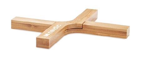 5.0 wireless 3W solar powered speaker with bamboo casing. 1 Rechargeable Li-Ion 500 mAh battery. Playing time approx. 4h. Size 9,3x6,2x2,4 cm Print technique Pad printing,L