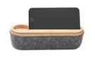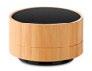4.2 wireless speaker in ABS with bamboo casing. 1 rechargeable Li-on 450mAh battery and light at the bottom of the speaker. Output data: 3W, 4 Ohm and 5V. Micro USB cable included. Playing time aprox. 3h. Size Ø7x4,3 cm Print technique Pad printing,L,DO1