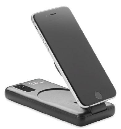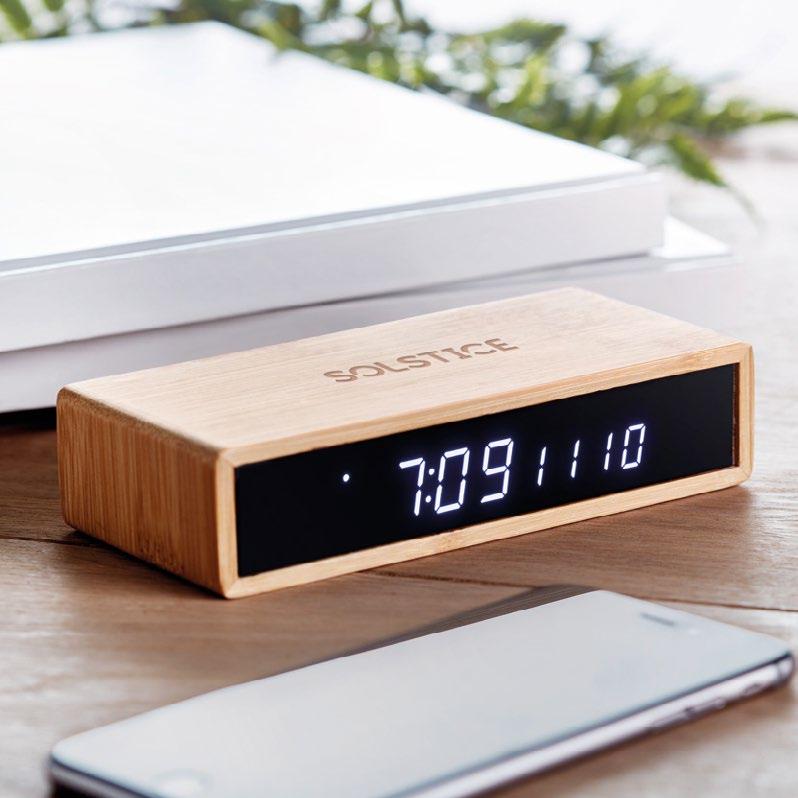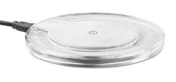 5.0 wireless speaker in ABS case and bamboo on top. It also has a built-in 10W wireless charger to charge your smartphone and 4000 mAh power bank. Output DC 9V/1.1A. Size Ø11,4x4,2 cm Print technique Pad printing,L