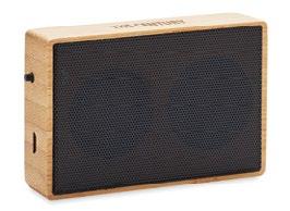 5.0 wireless speaker with bamboo casing with LED light indication. 1 Rechargeable Li-Pol 300 mAh battery included. Output data: 3W, 3 Ohm and 5V. Playing time approx. 4h (70% volume). Type C. Size 7,5x4,1x8,8 cm Print technique Pad printing,L