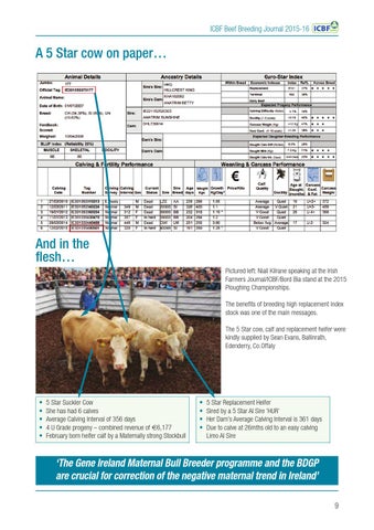 And in the flesh… Pictured left: Niall Kilrane speaking at the Irish Farmers Journal/ICBF/Bord Bia stand at the 2015 Ploughing Championships. The benefits of breeding high replacement index stock was one of the main messages. The 5 Star cow, calf and replacement heifer were kindly supplied by Sean Evans, Ballinrath, Edenderry, Co.Offaly