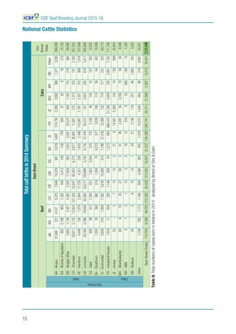 Table 8: Total numbers of calves born in Ireland in 2014 - analysed by Breed of Sire & Dam