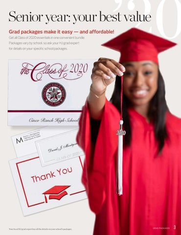 Senior year: your best value Grad packages make it easy — and affordable! Get all Class of 2020 essentials in one convenient bundle. Packages vary by school, so ask your HJ grad expert for details on your specific school packages.