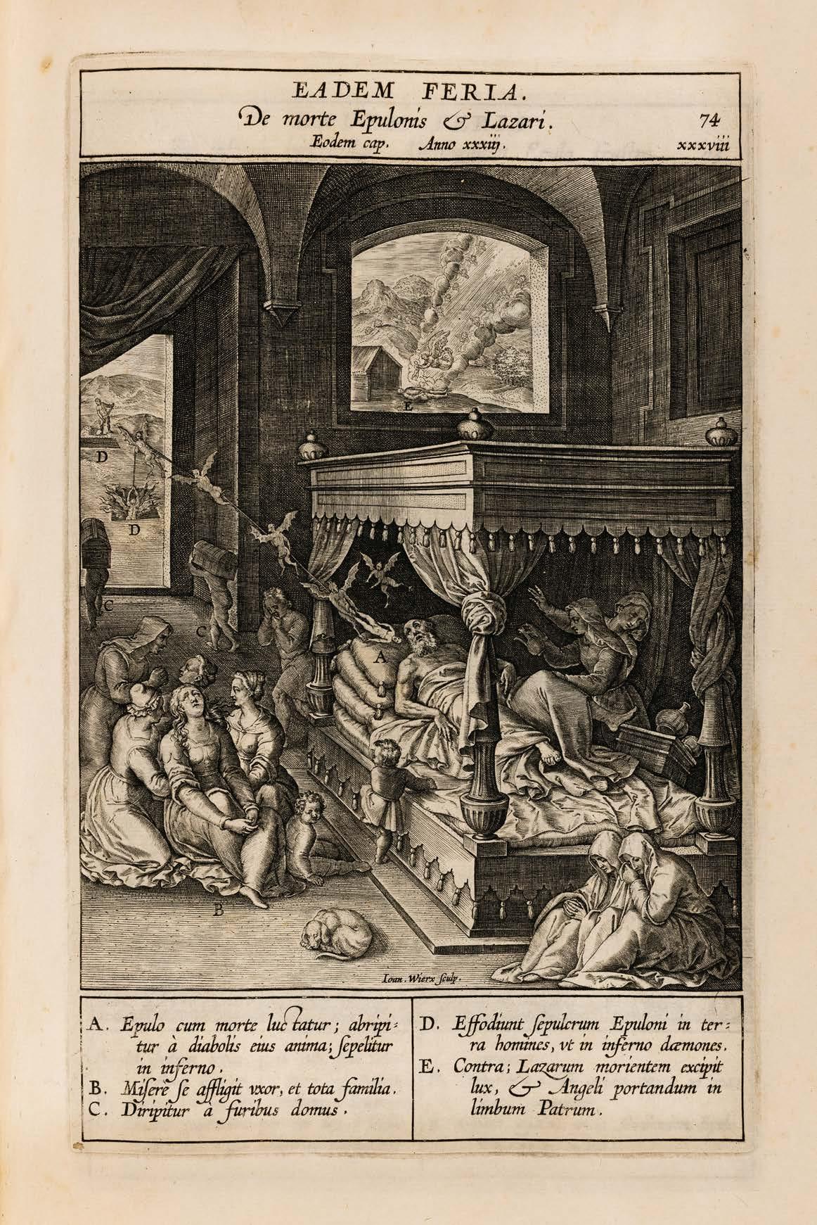 68a-d Die bedeutendste flämische Kupferstichfolge zur Bibel im 16. Jahrhundert mit 153 Kupfern, mit den Auslegungen des Jesuiten Hieronymus Natalis (1591-)1593-1596