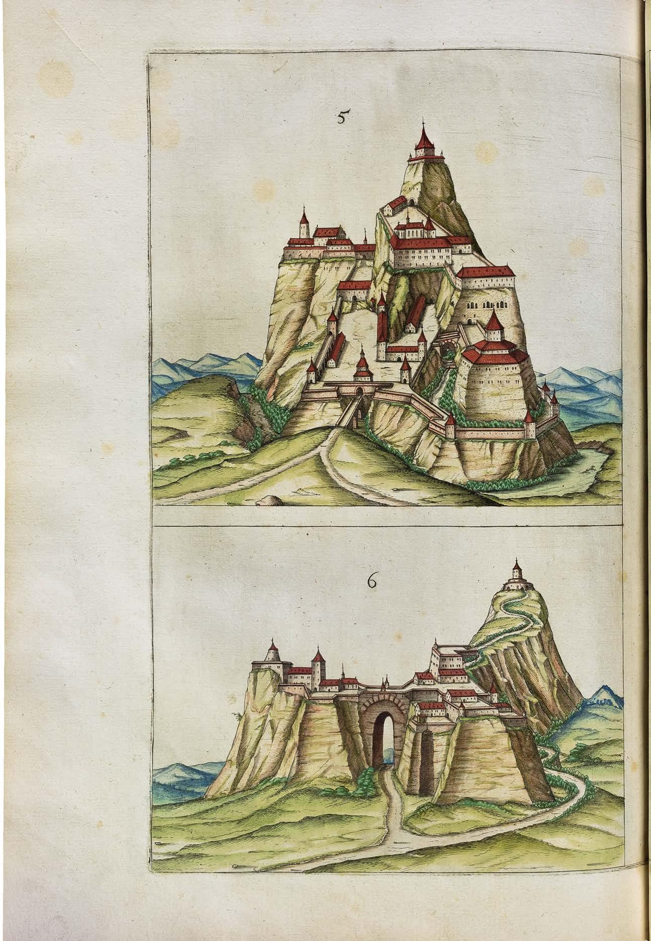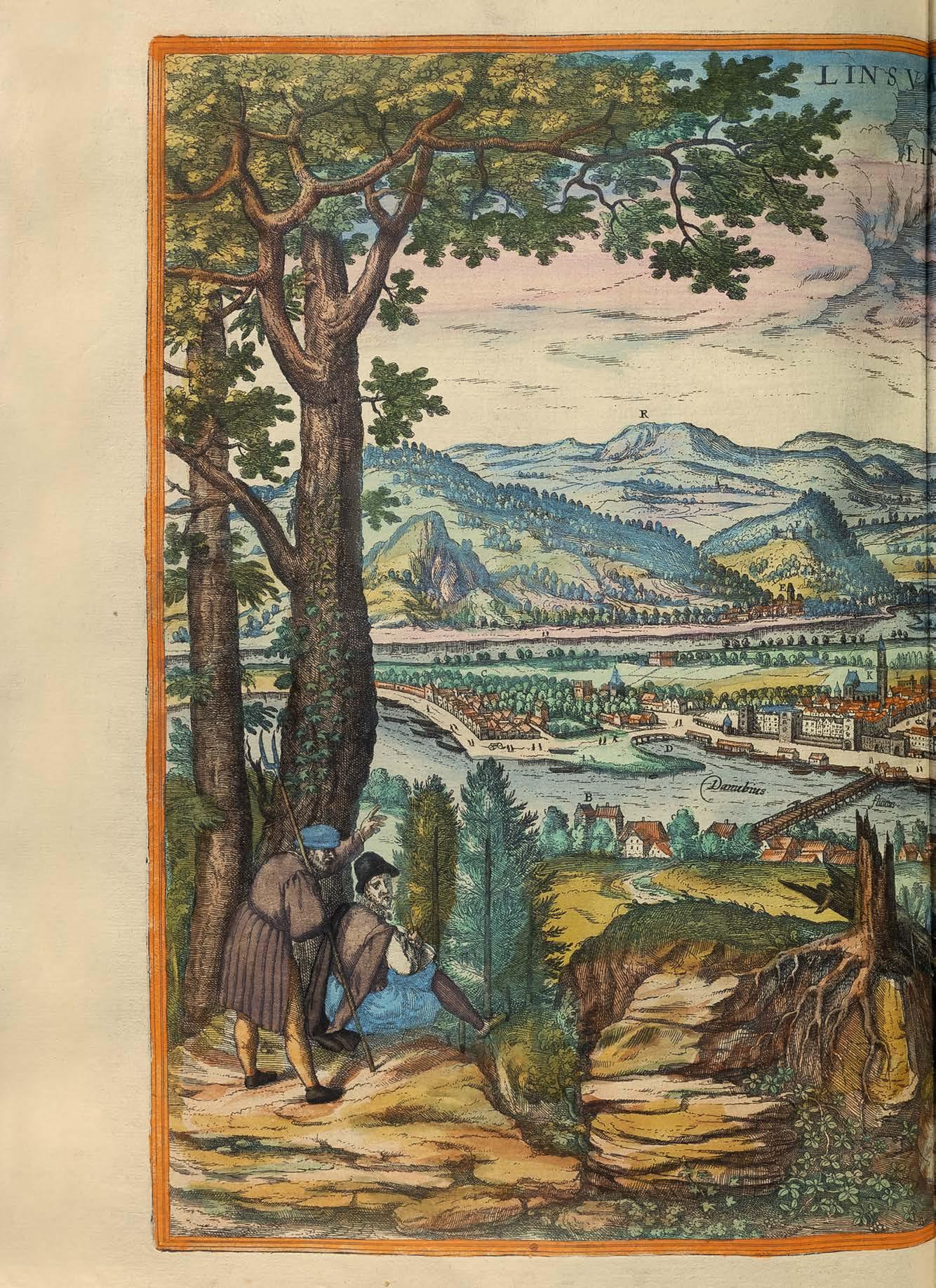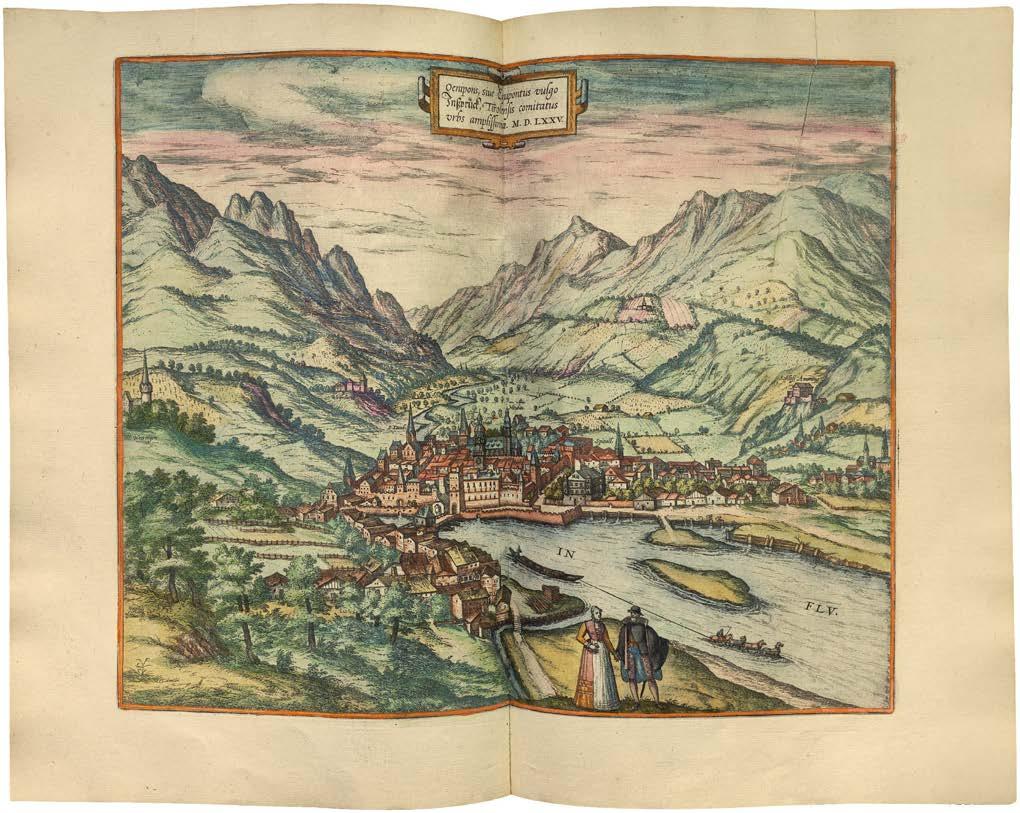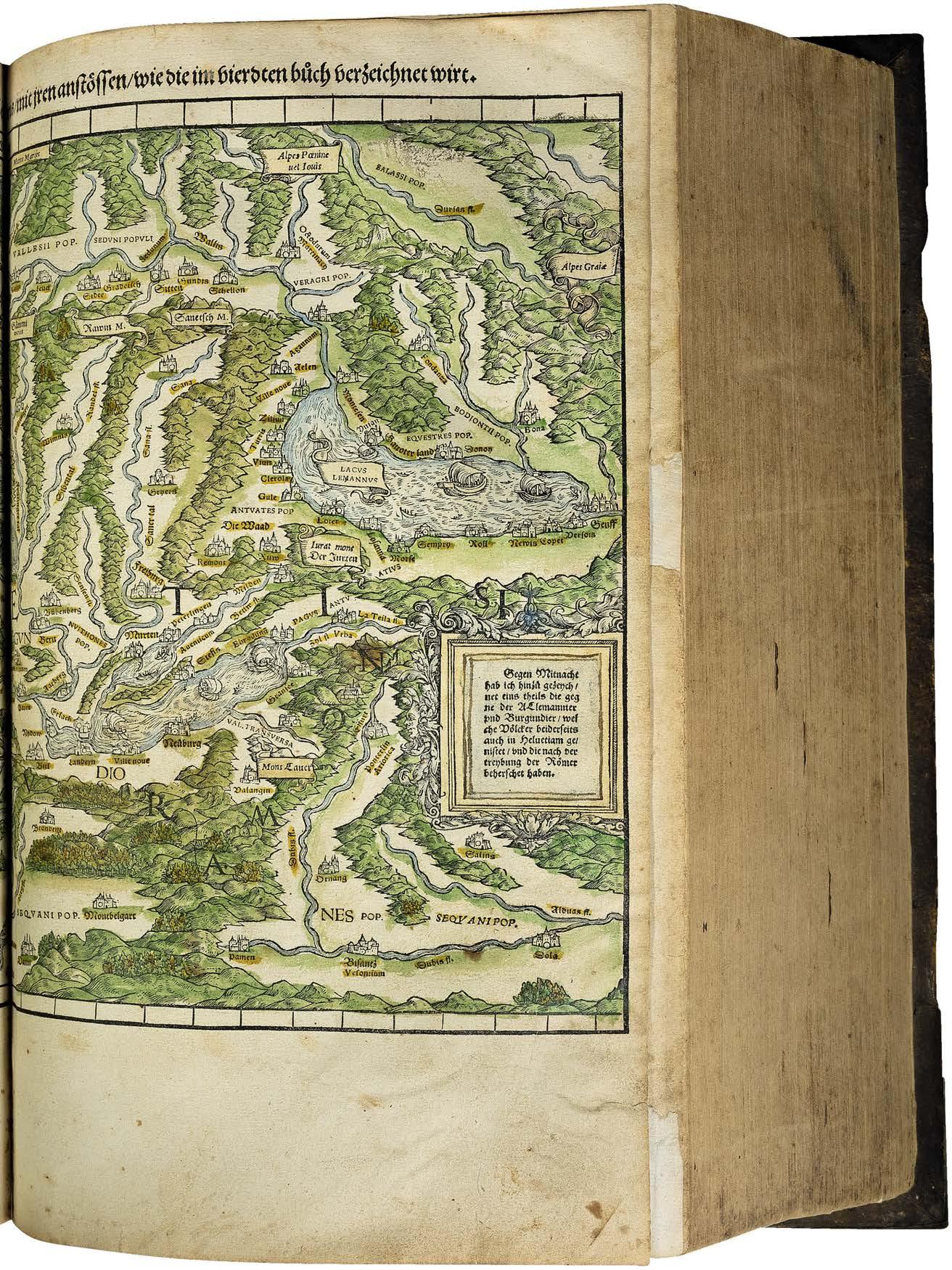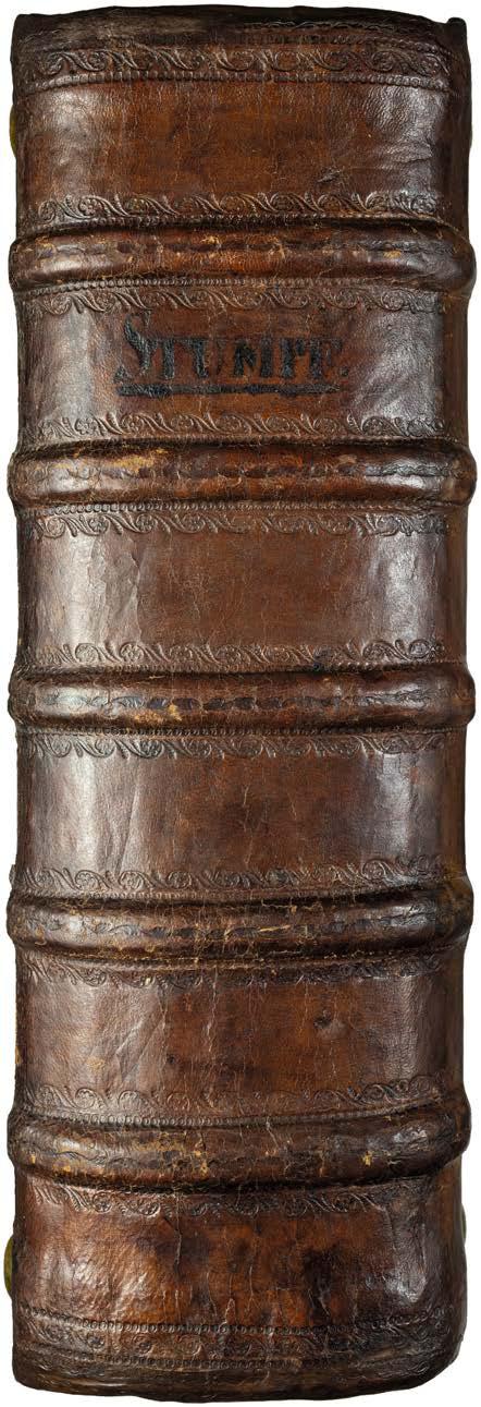 This copy of the first edition of Johannes Stumpf’s Swiss Chronicle has been selectively coloured. The type of colouring suggests a Protestant citizen of Constance as the patron. When Charles V captured the city in 1548, just in the year of the book’s publication, and had it recatholicized, the first owner’s living conditions will have deteriorated dramatically. Some time later, the book reached Nuremberg, where it received its dated pigskin binding by Hans Pfister in 1591.