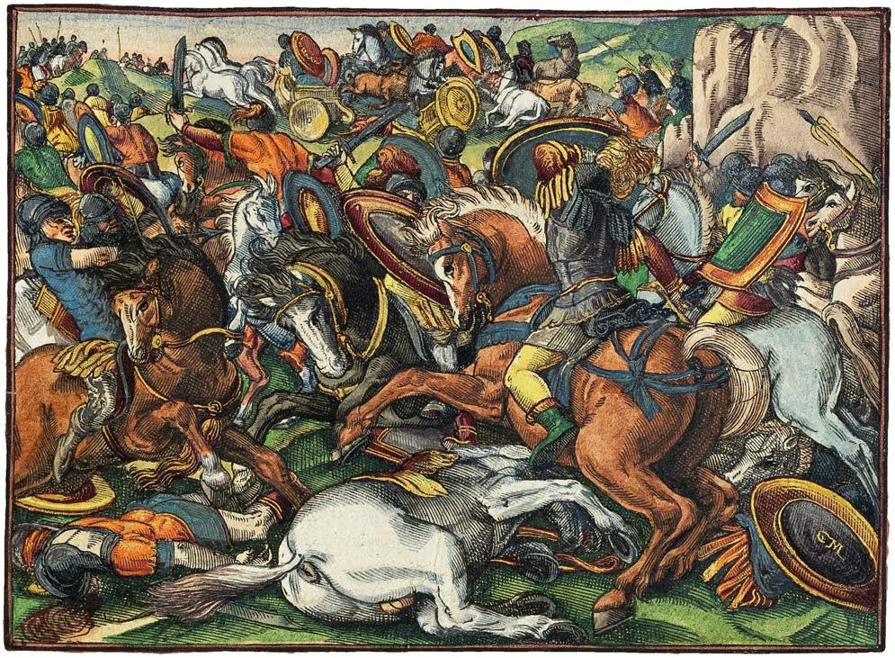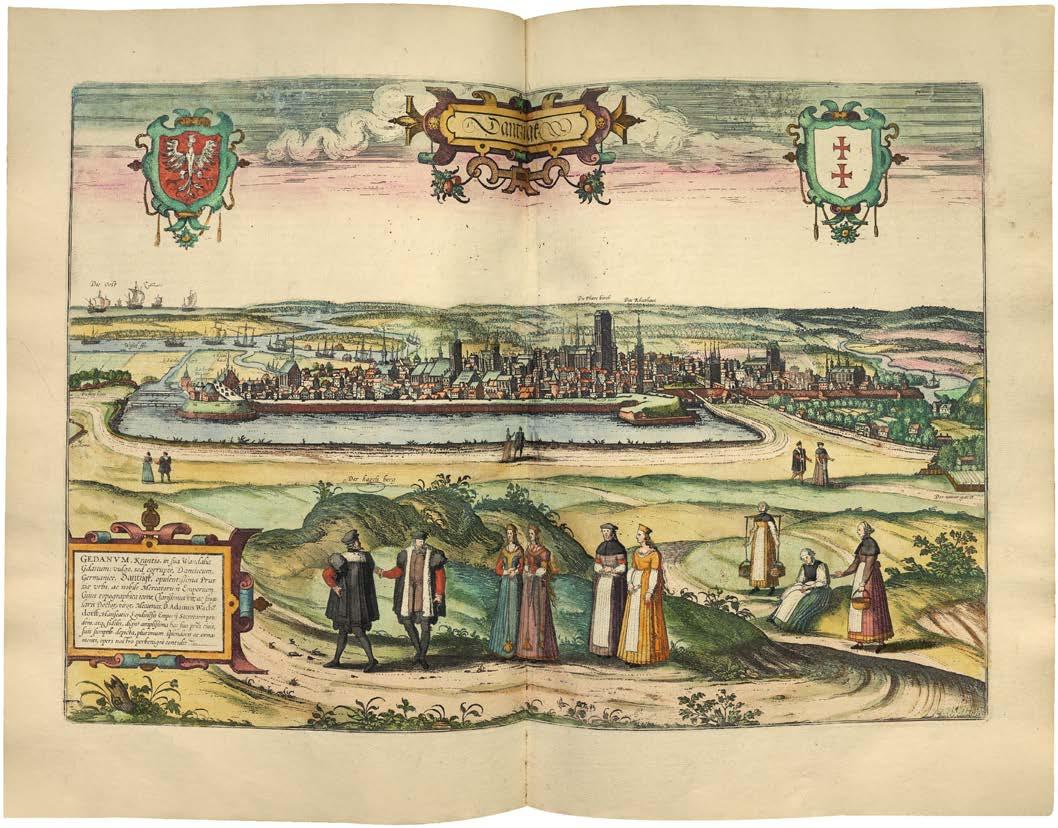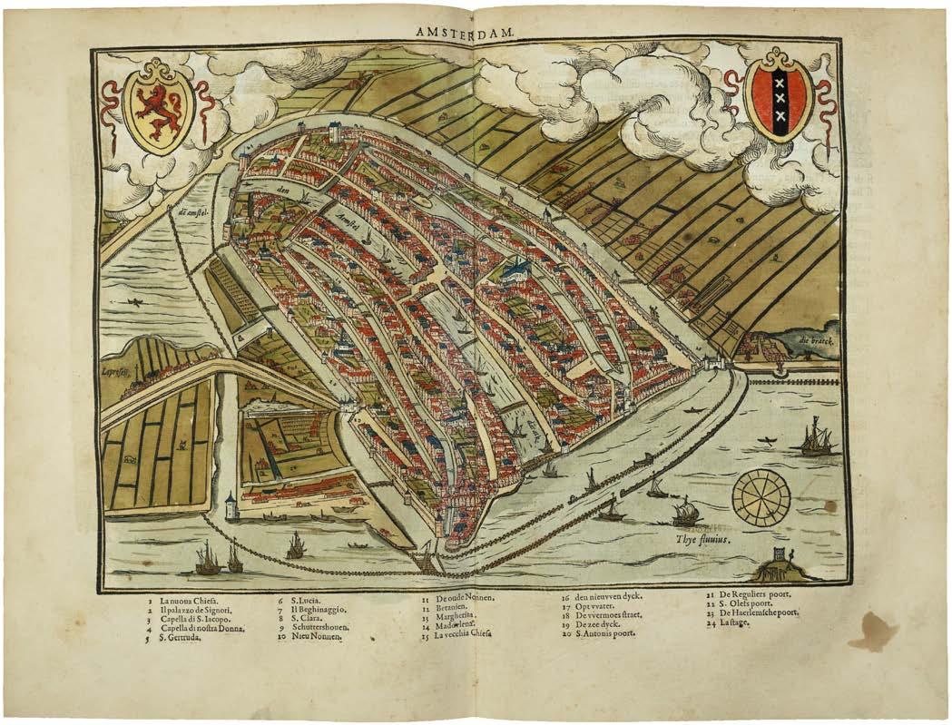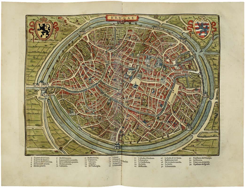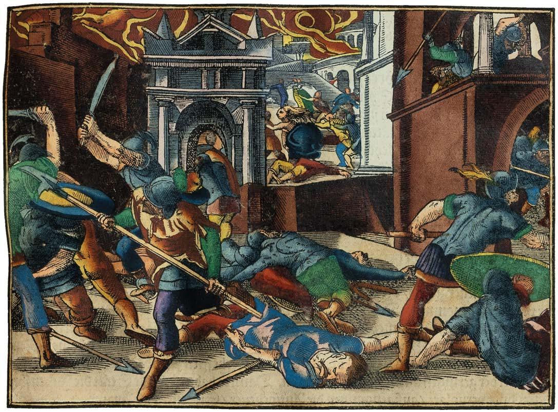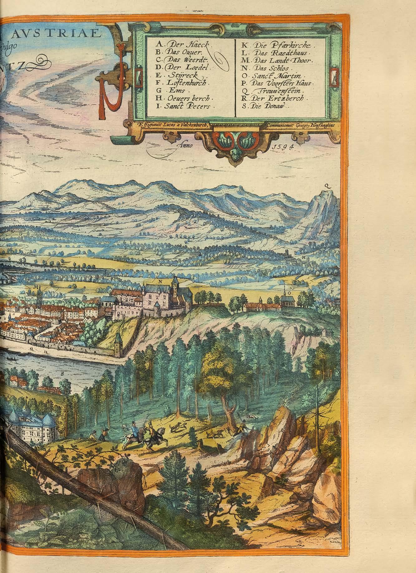 This copy of the first edition of Johannes Stumpf’s Swiss Chronicle has been selectively coloured. The type of colouring suggests a Protestant citizen of Constance as the patron. When Charles V captured the city in 1548, just in the year of the book’s publication, and had it recatholicized, the first owner’s living conditions will have deteriorated dramatically. Some time later, the book reached Nuremberg, where it received its dated pigskin binding by Hans Pfister in 1591.