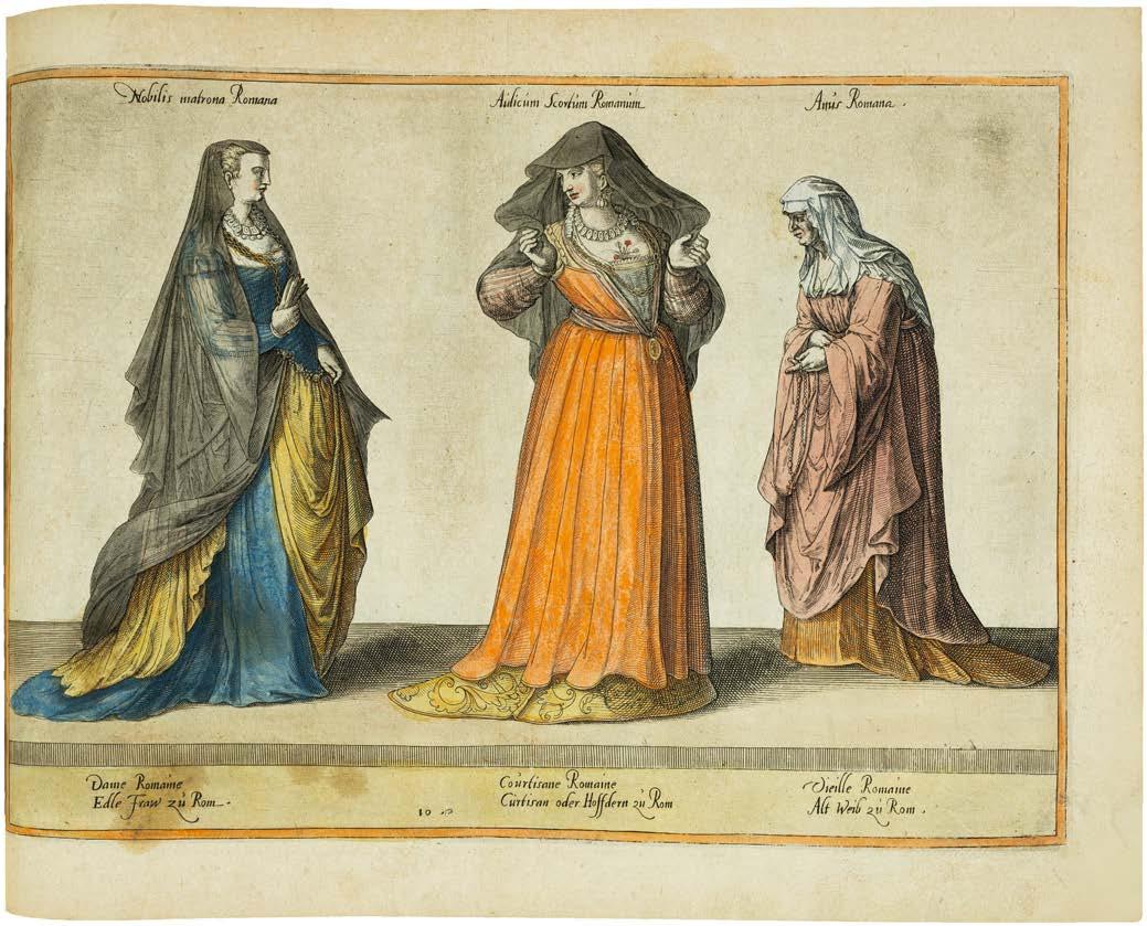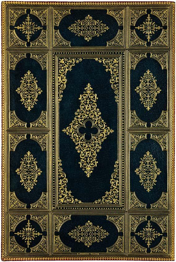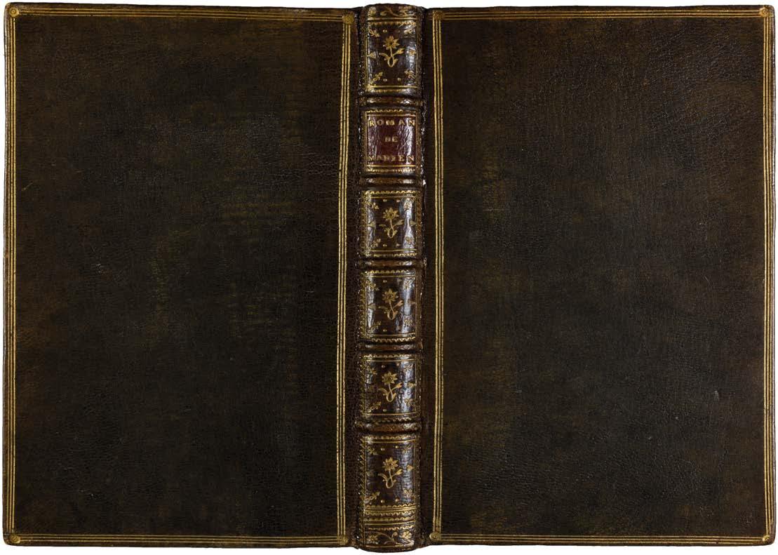 Mit altem Pergament schlicht bezogener neuerer Einband auf glatten Rücken, mit goldgeprägtem schwarzen Lederrückenschild, Überschlagkanten und beschriftetem Seitenschnitt; in neuem Pappschuber (auf 3 S. einige Zeilen alt unterstrichen, wenige Bl. mit kleinen Fehl- oder Schabstellen im Bildbereich).
