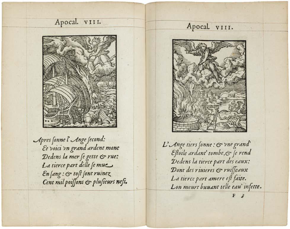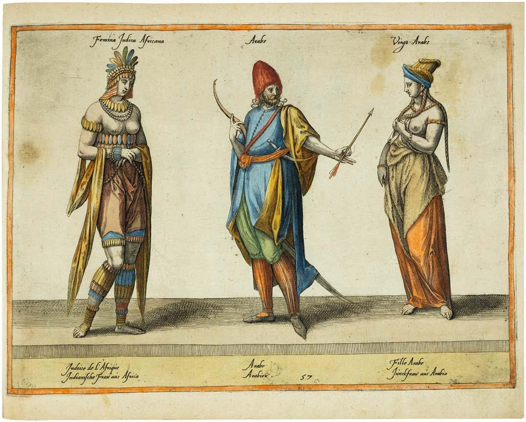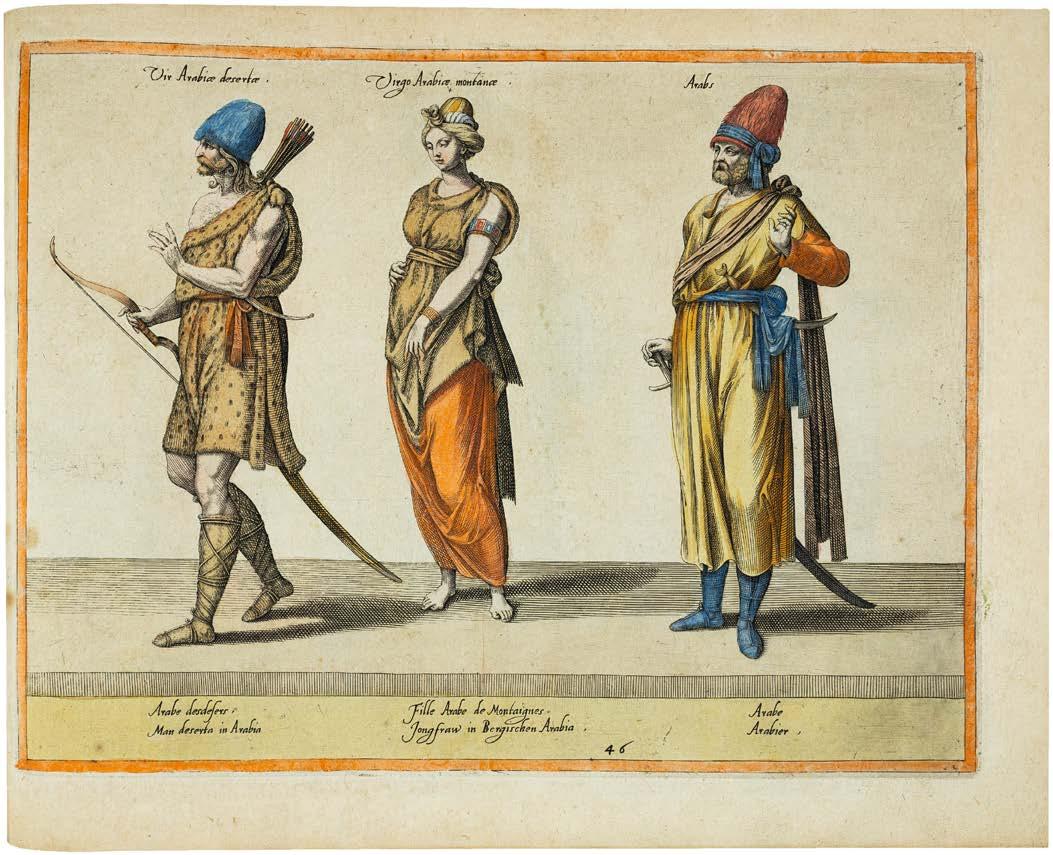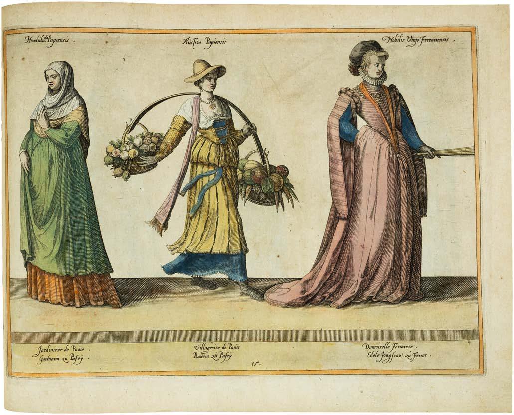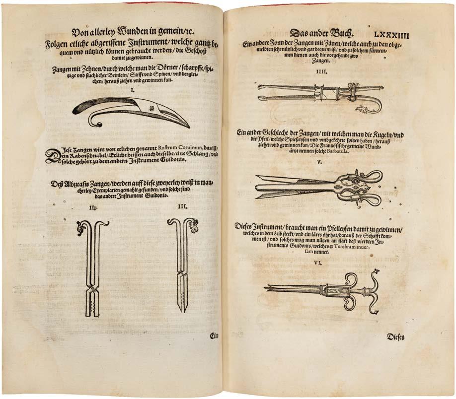 Mit ganzseitigem Titelholzschnitt, einer Bildseite mit 2 Abb., 3 beidseitig bedruckten Falttafeln mit zusammen 10 Abb., sämtlich in Holzschnitt und altkoloriert, außerdem mit sieben elf- bis zwölfzeiligen Holzschnitt-Initialen. – Die angebundenen Titel mit ganz- bzw. halbseitigem, ebenfalls altkoloriertem Titelholzschnitt.
