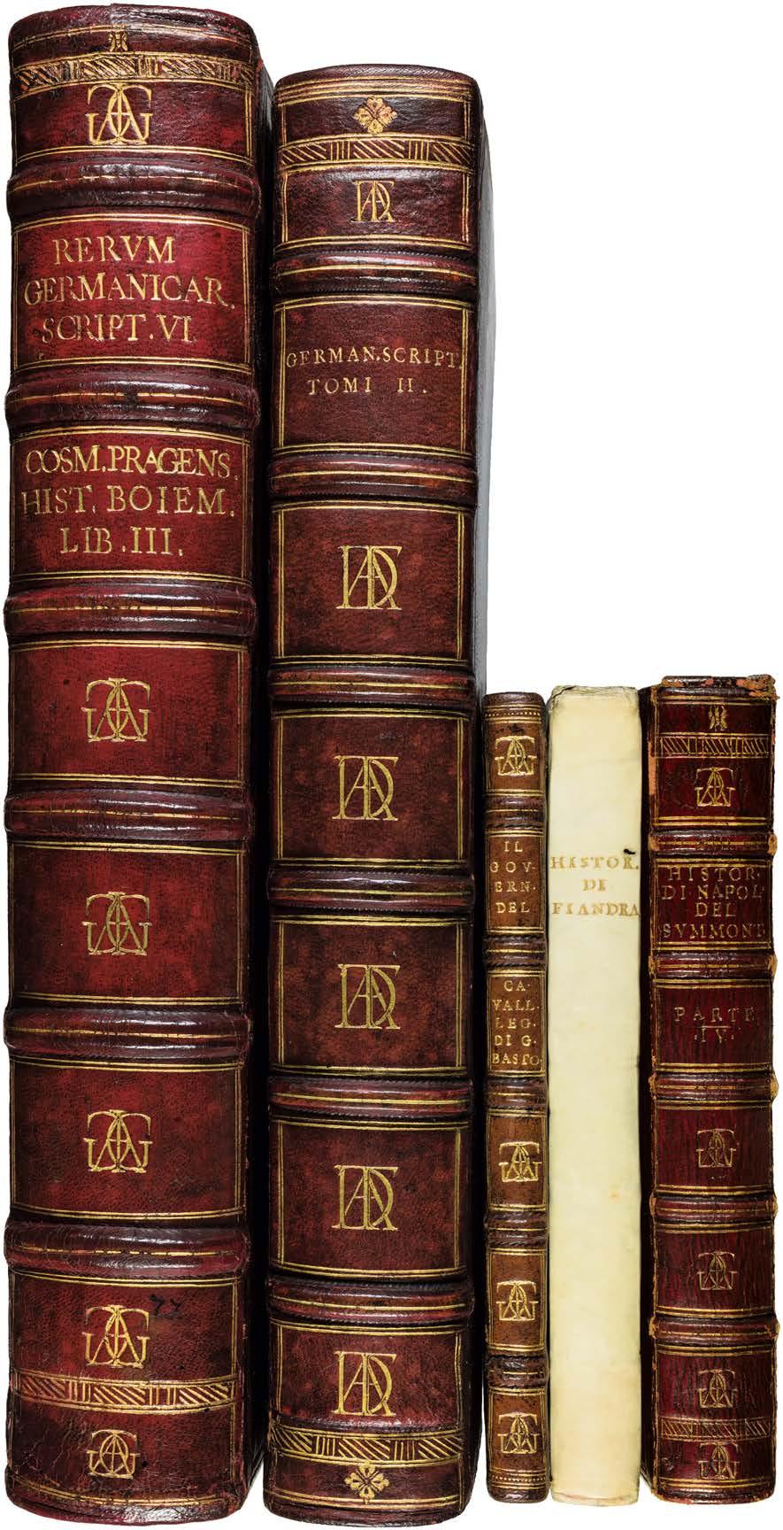 95a-e Fünf Einbände für Jacques-Auguste de Thou von 1582-1643, in verschiedenen Ausführungen und Farben, davon zwei in Folio