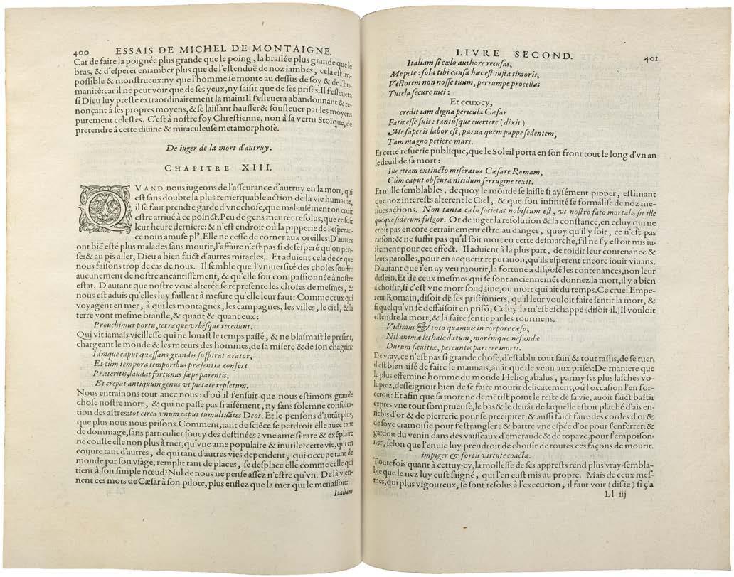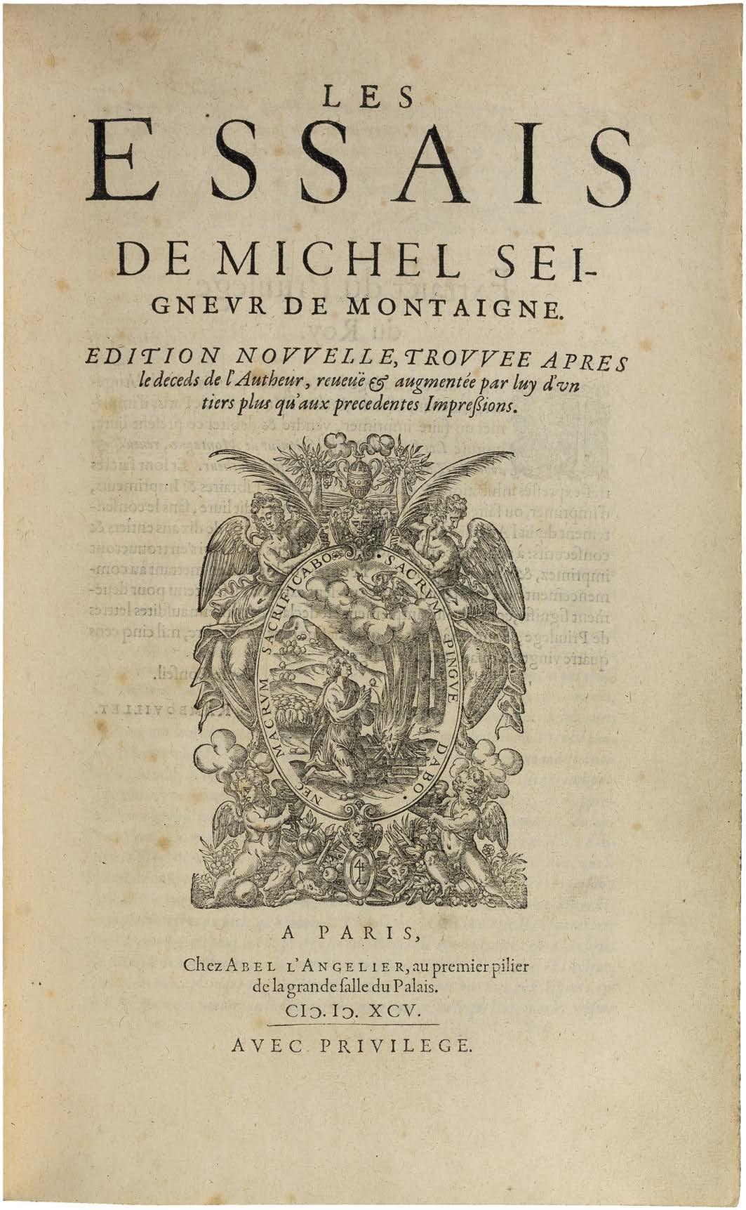 99b Montaignes Essais, ein zweites Exemplar der Ausgabe letzter Hand von 1595, makellos erhaltenes Exemplar in einem Einband von Rivière