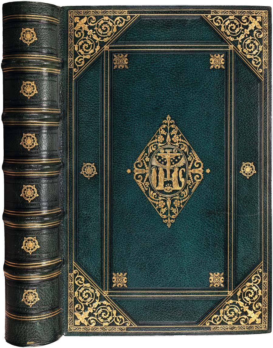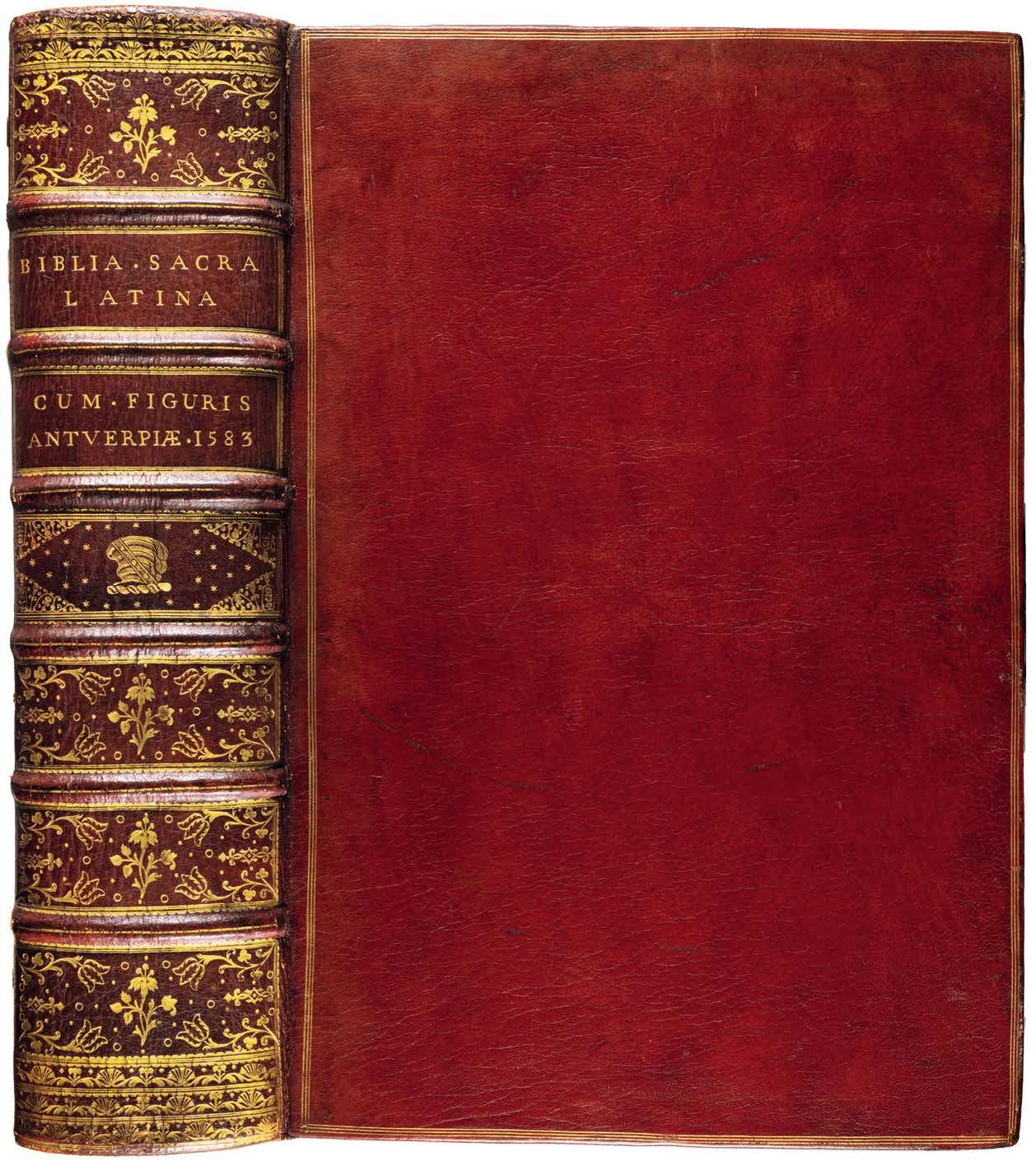96 Plantins Kupferstich-Bibel von 1583 im größten bekannten Fanfare-Einband: das für Jacques-Marius d’Amboise gedruckte Exemplar