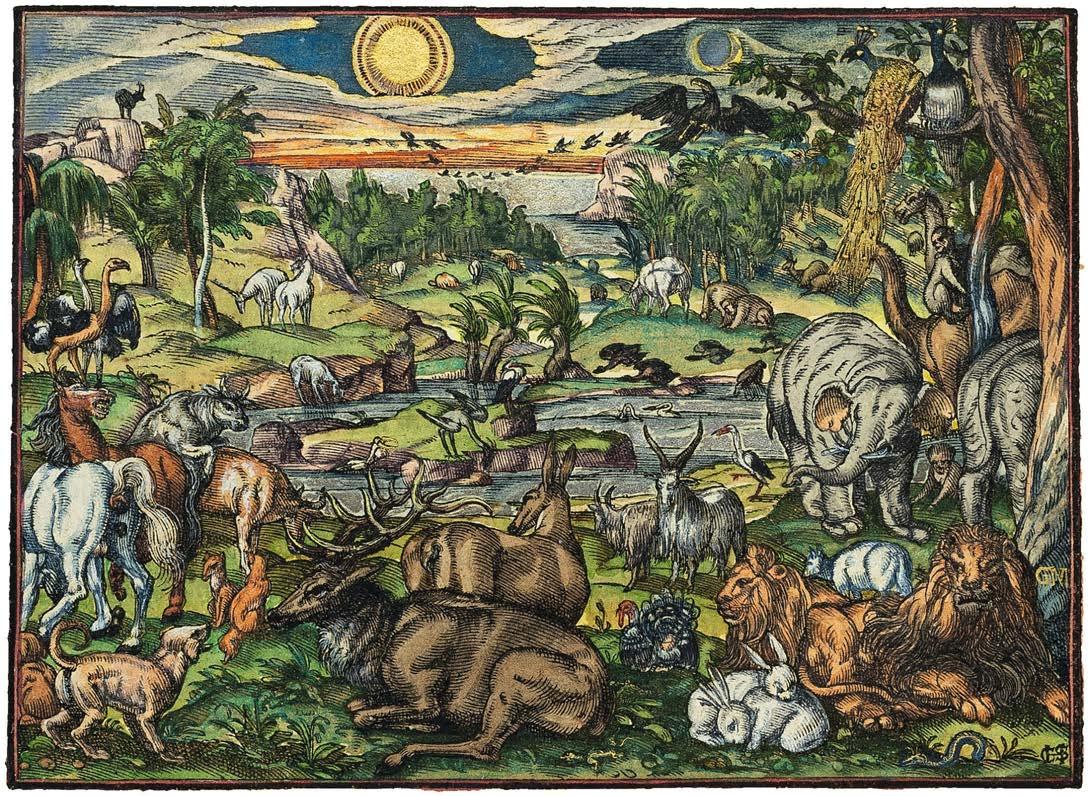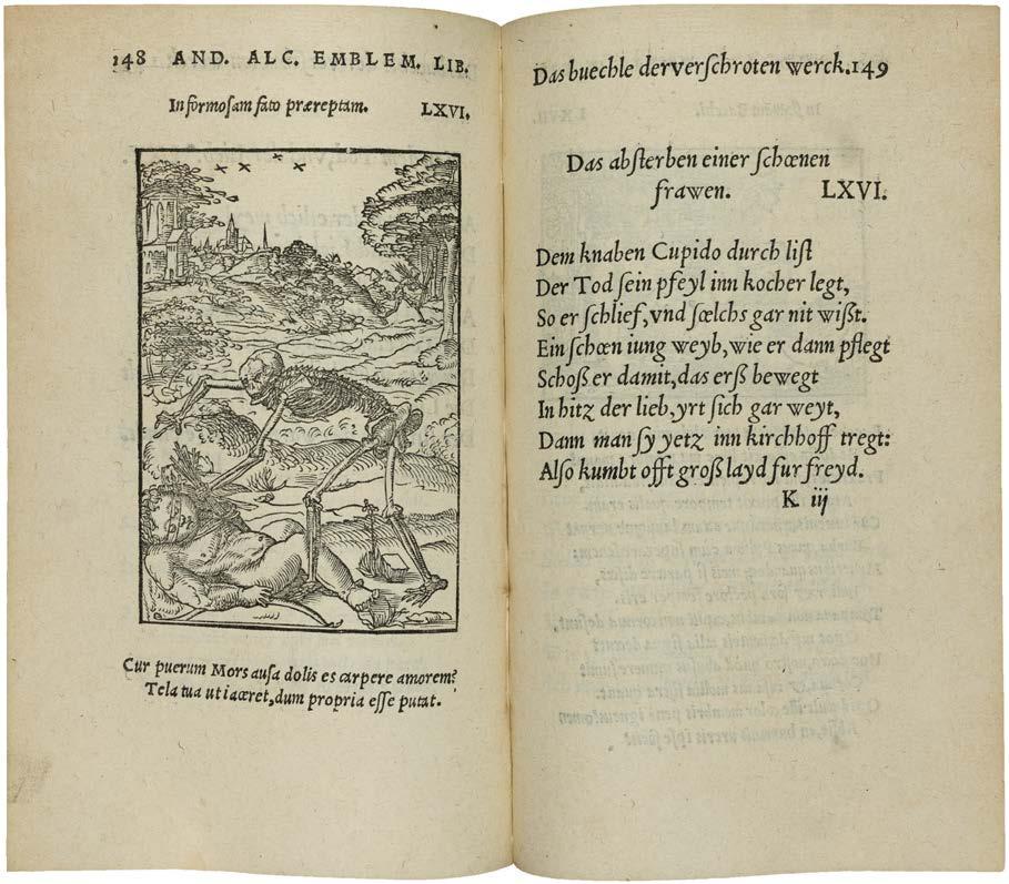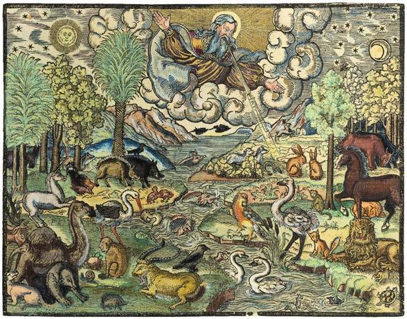 Mit Druckermarke auf der ersten und letzten Seite, 106 oft ganzseitigen Abbildungen sowie zahlreichen Initialen auf Cribléegrund, alles in Holzschnitt und meisterlich altkoloriert.